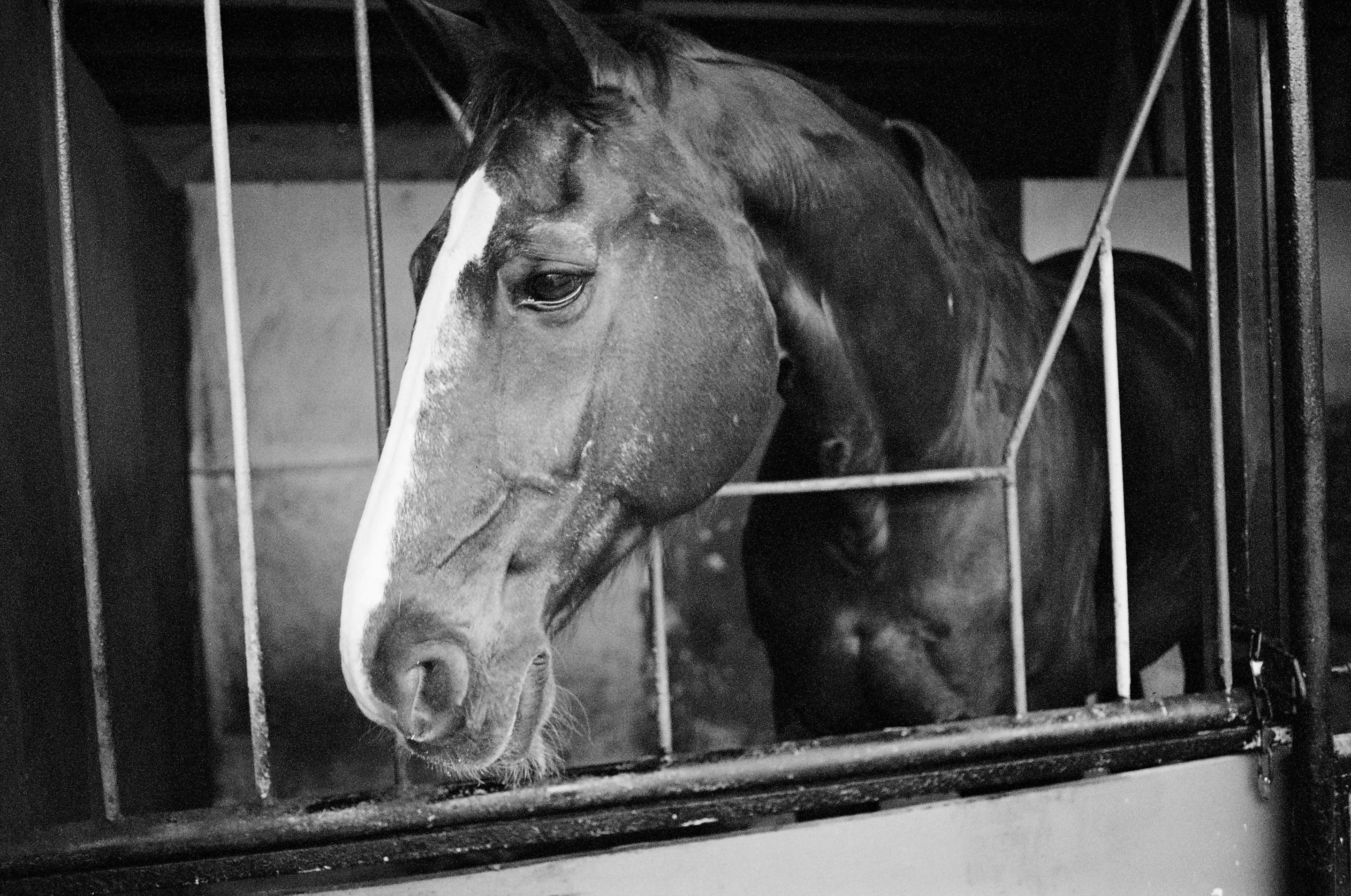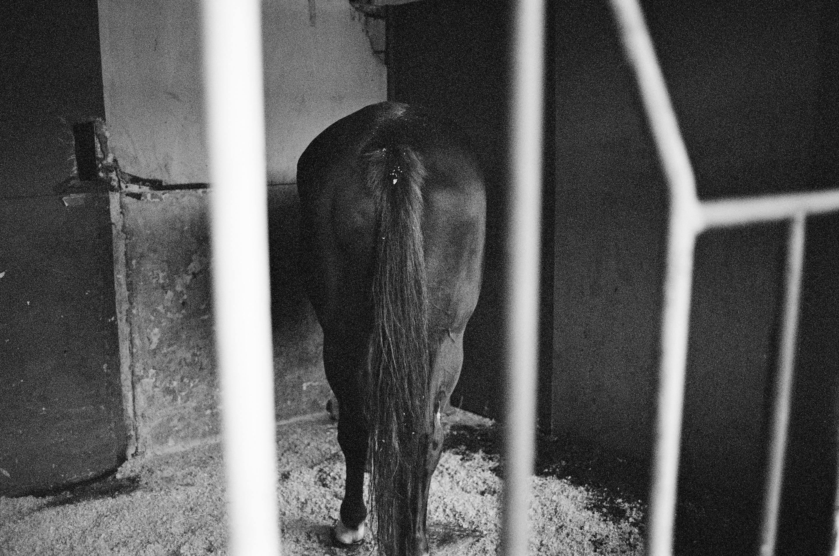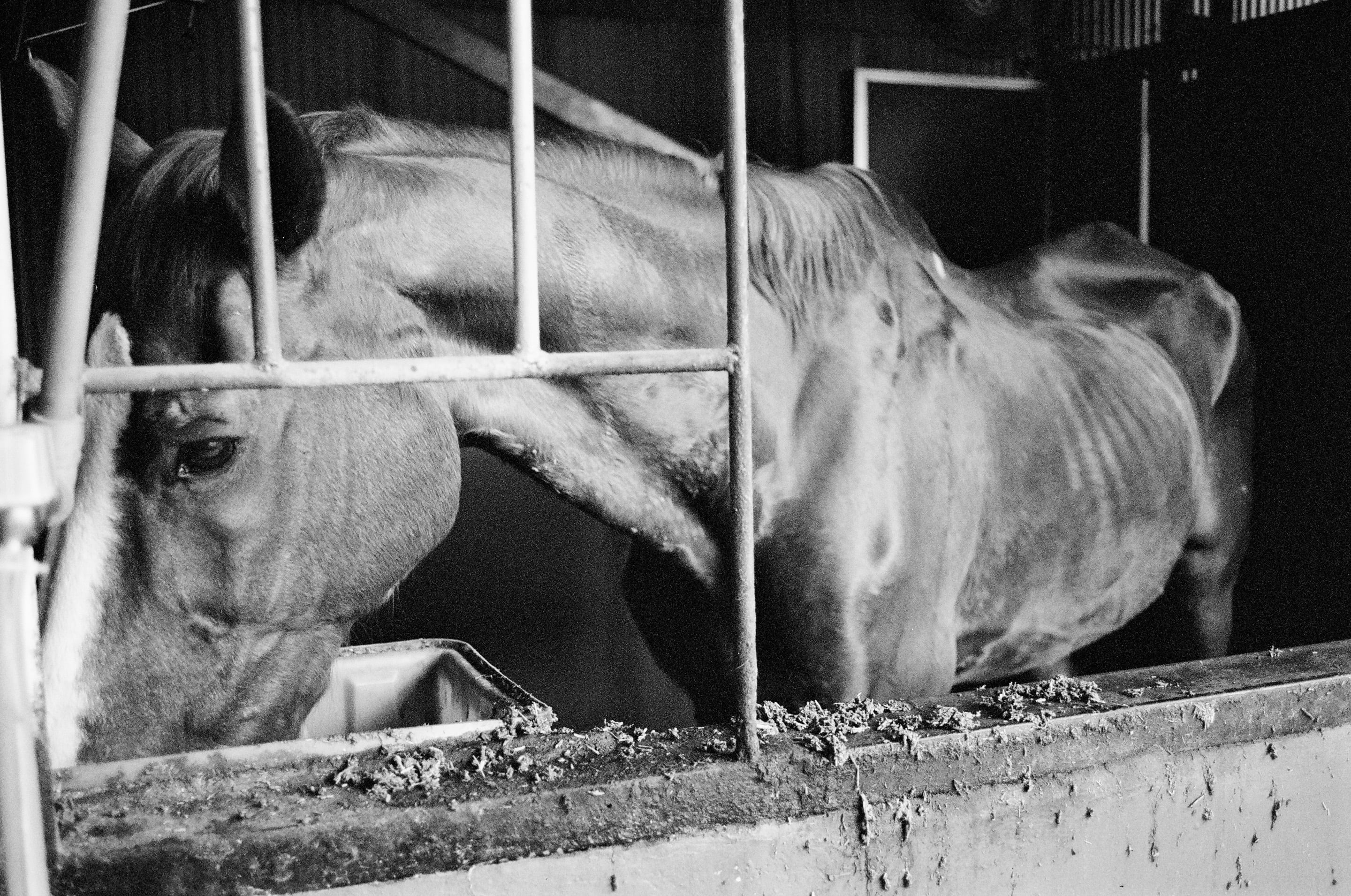 老馬了。馬場主人說一般馬老了之後,很容易被安樂死,因為牠們喪失了生產力,但飼主又必須負擔牠們的伙食。不過馬場主人說他們並不會這樣對待老馬,他們將照顧老馬視為一種責任,以感念他們在年輕時對馬場的貢獻。Olympus OM 35mm f2.8(1/60,f2.8)