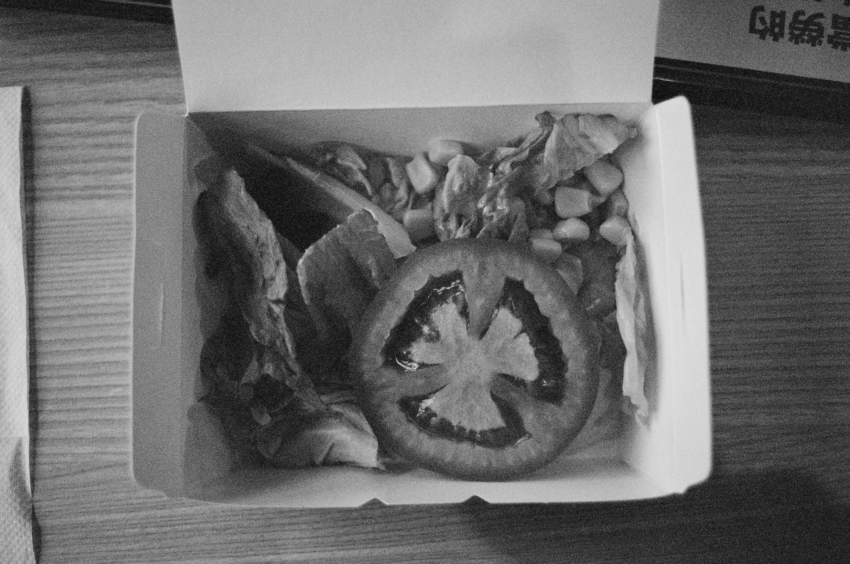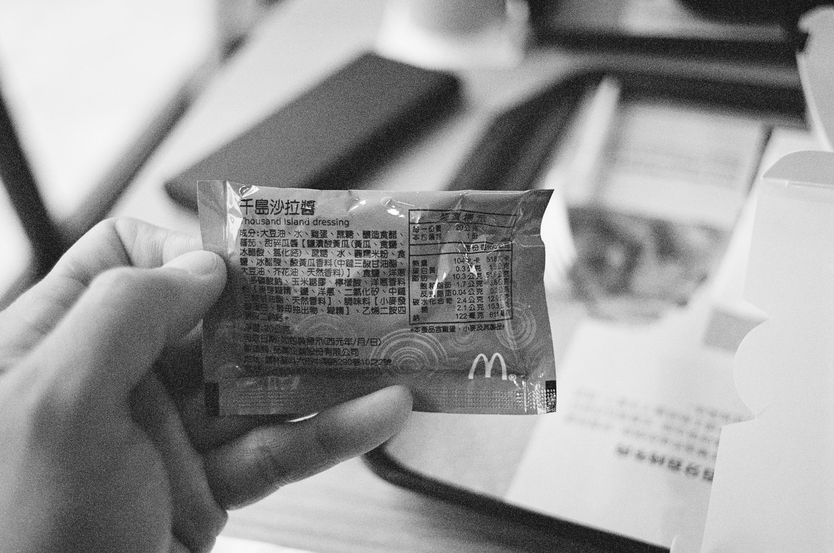 原本就非常不 OK 的麥當勞沙拉,用黑白拍起來更是慘不忍睹。Olympus OM 35mm f2.8(1/1000,f2.8)