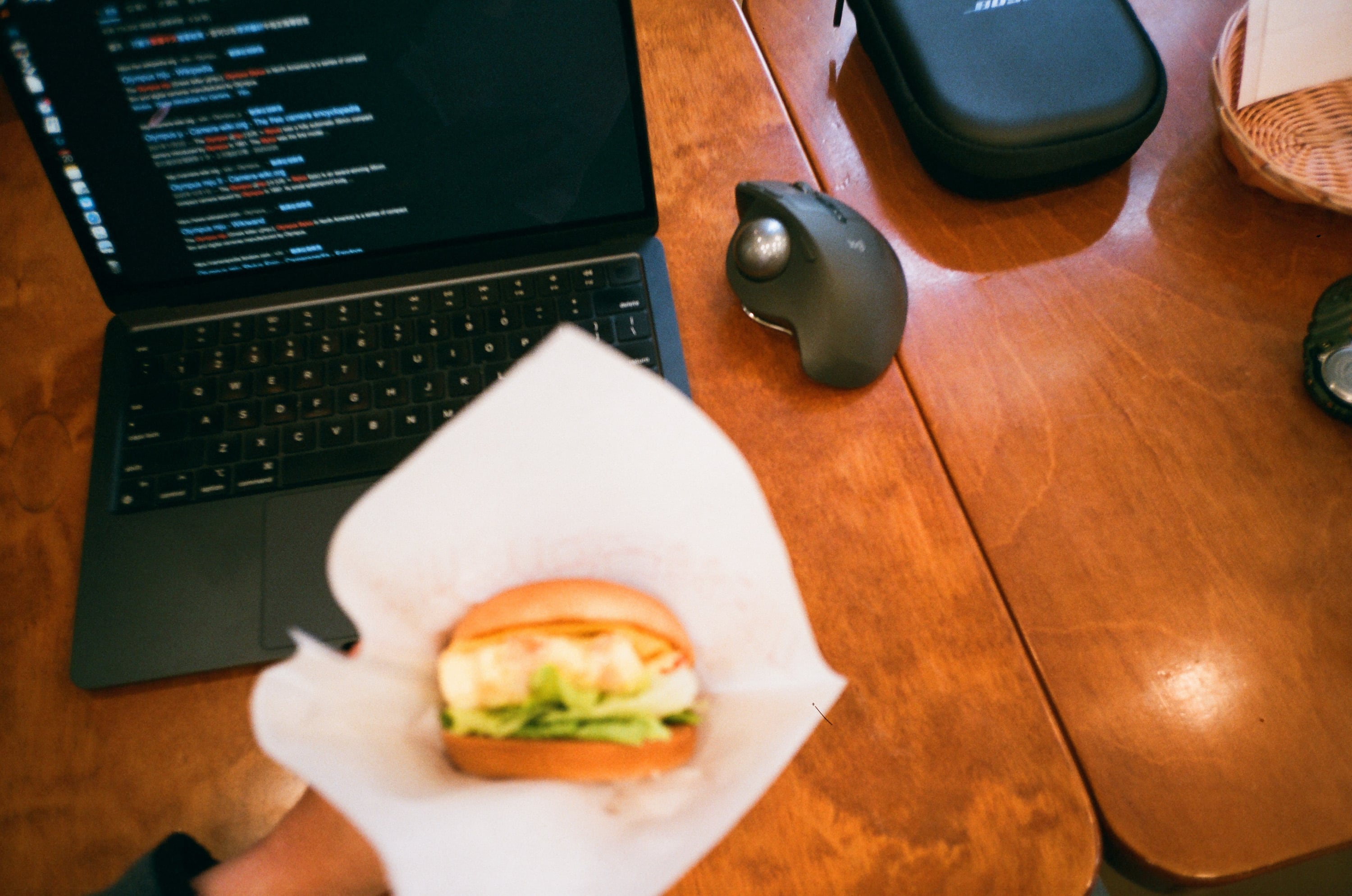 自從疫情趨緩,再加上我媽可以幫忙接送小孩上下課,我就開始去外面工作了,之前都是把家裡當辦公室,其實滿痛苦的。圖為我這陣子剛從麥當勞轉移陣地到摩斯漢堡,對於摩斯在早餐漢堡慷慨提供的生菜份量,感到不可置信的開心,茲以底片記錄之。