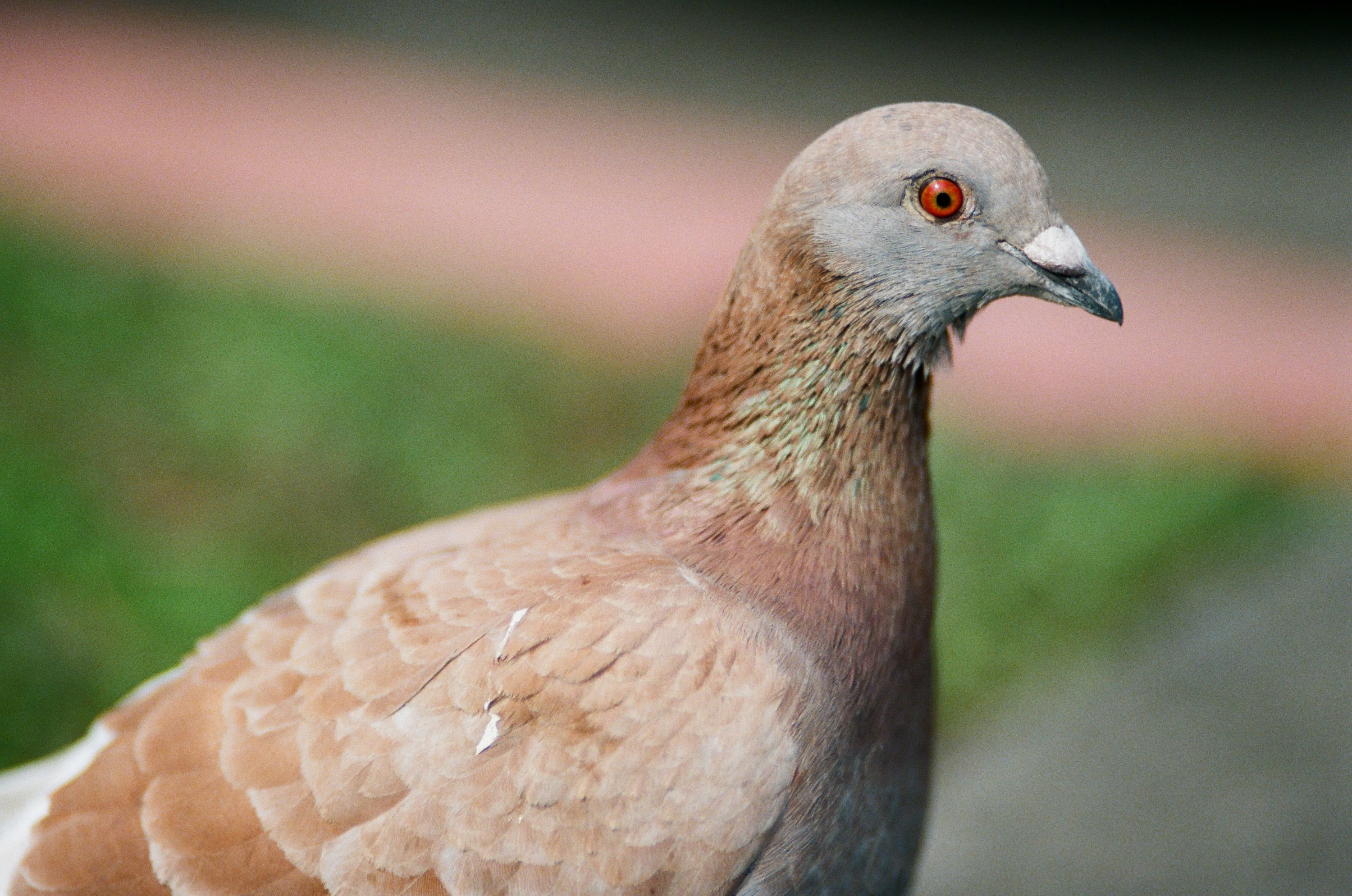手拿 180mm 鏡頭,受惠於 1.2m 的超近對焦距離還不夠,你還必須要碰到一隻不怕人的鴿子才行(也許牠應該是斑鳩)。