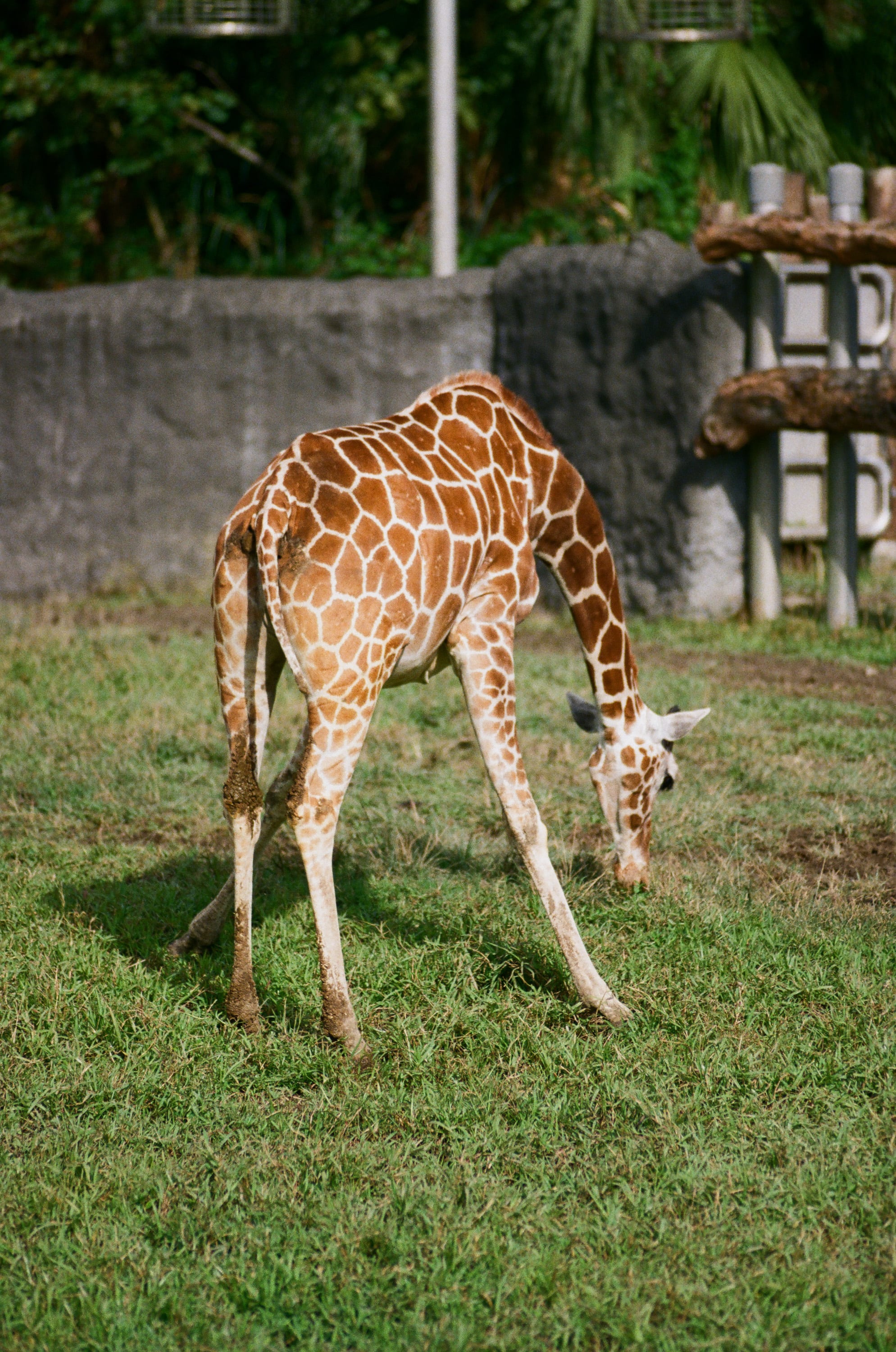 長頸鹿開腿吃草很可愛。