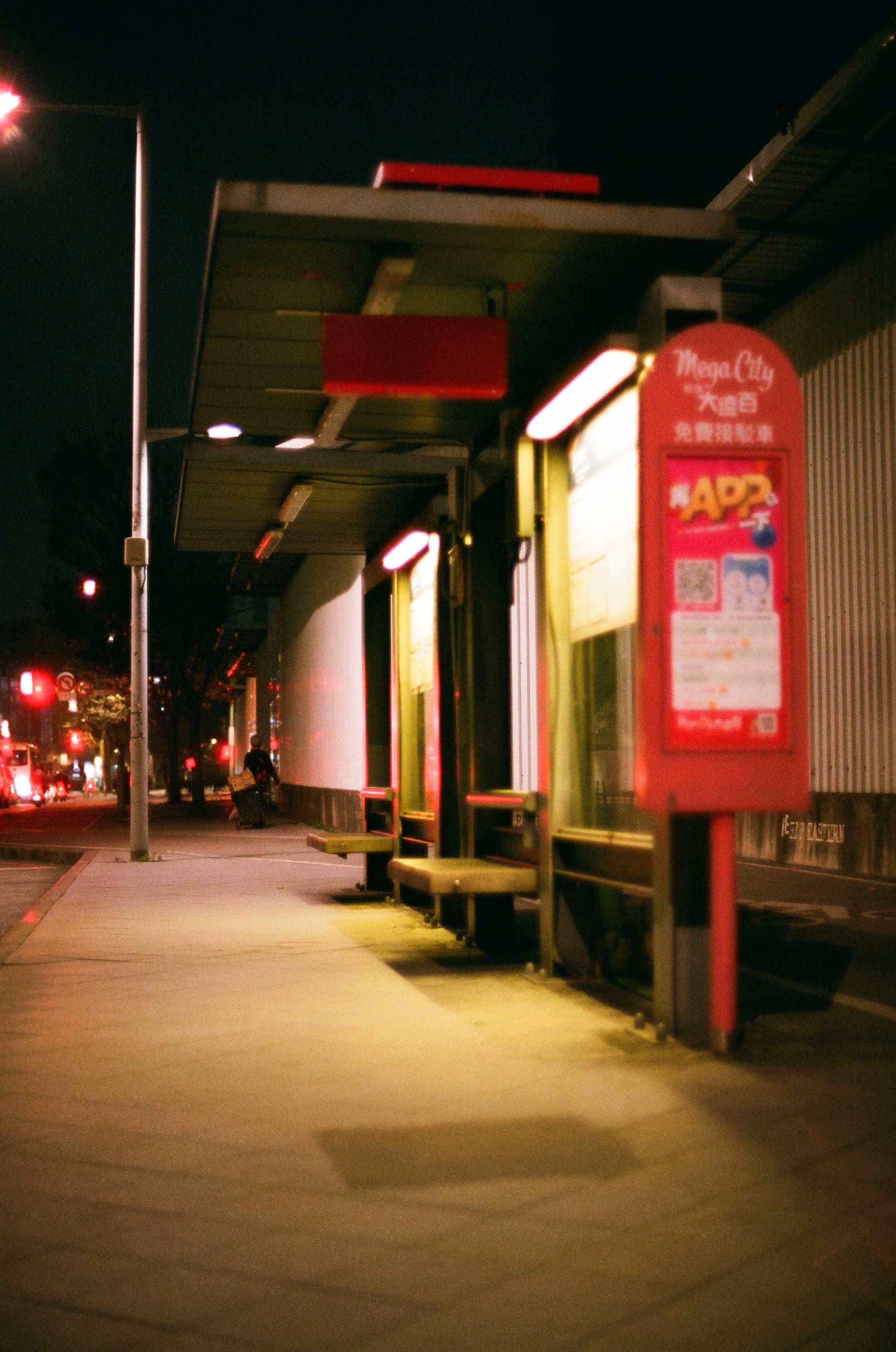 有天晨跑起了個太早,出門時看天都黑的,於是抓了顆 50mm f1.2 鏡頭出門,這是晨跑時經過的公車站,人煙稀少,但已經有人開始走在路上了。