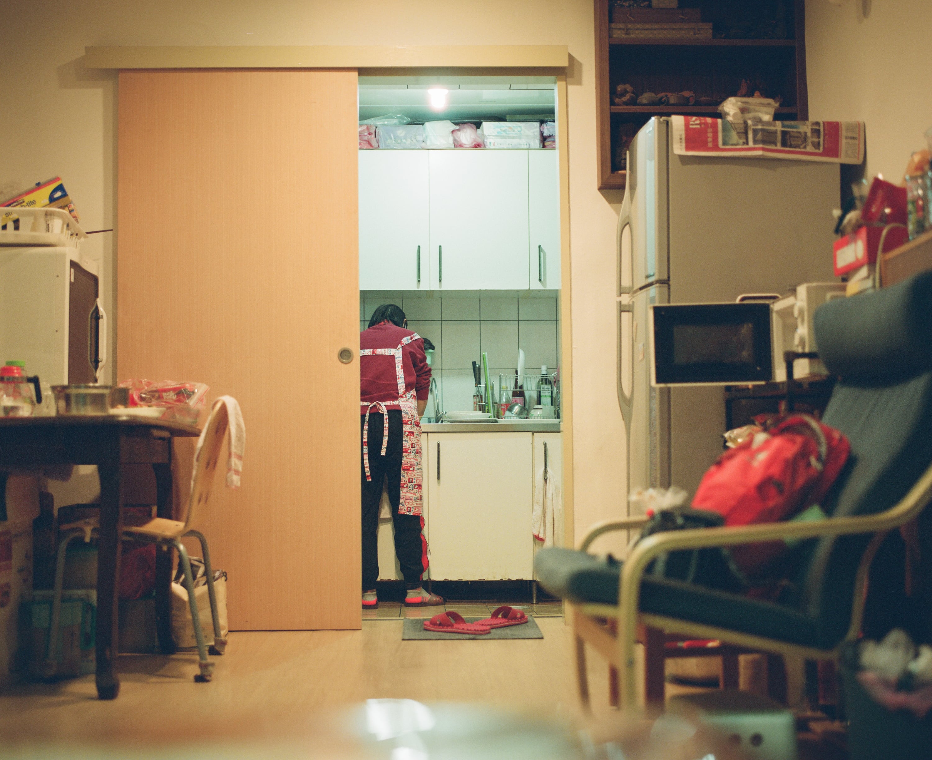正在廚房準備晚飯的我媽,也就是我兒子的阿嬤。以前不覺得這種日常生活的場景有什麼,但自從拍了底片之後,反而很容易被這種日常生活的場景照片觸動。