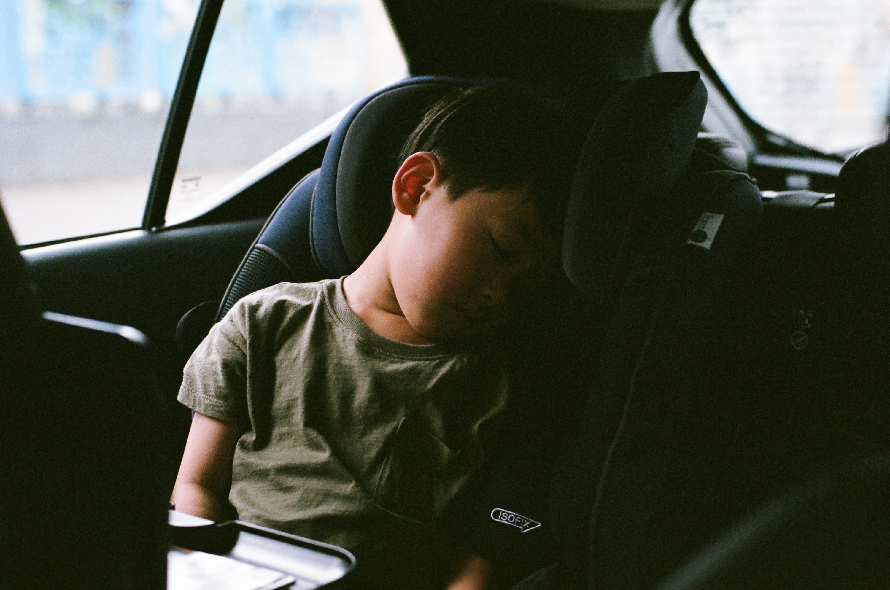 我們常會假借一些名義要拐兒子進行午睡,這天是跟他說要開車去逛玩具店,然後上車不久他就睡著了。