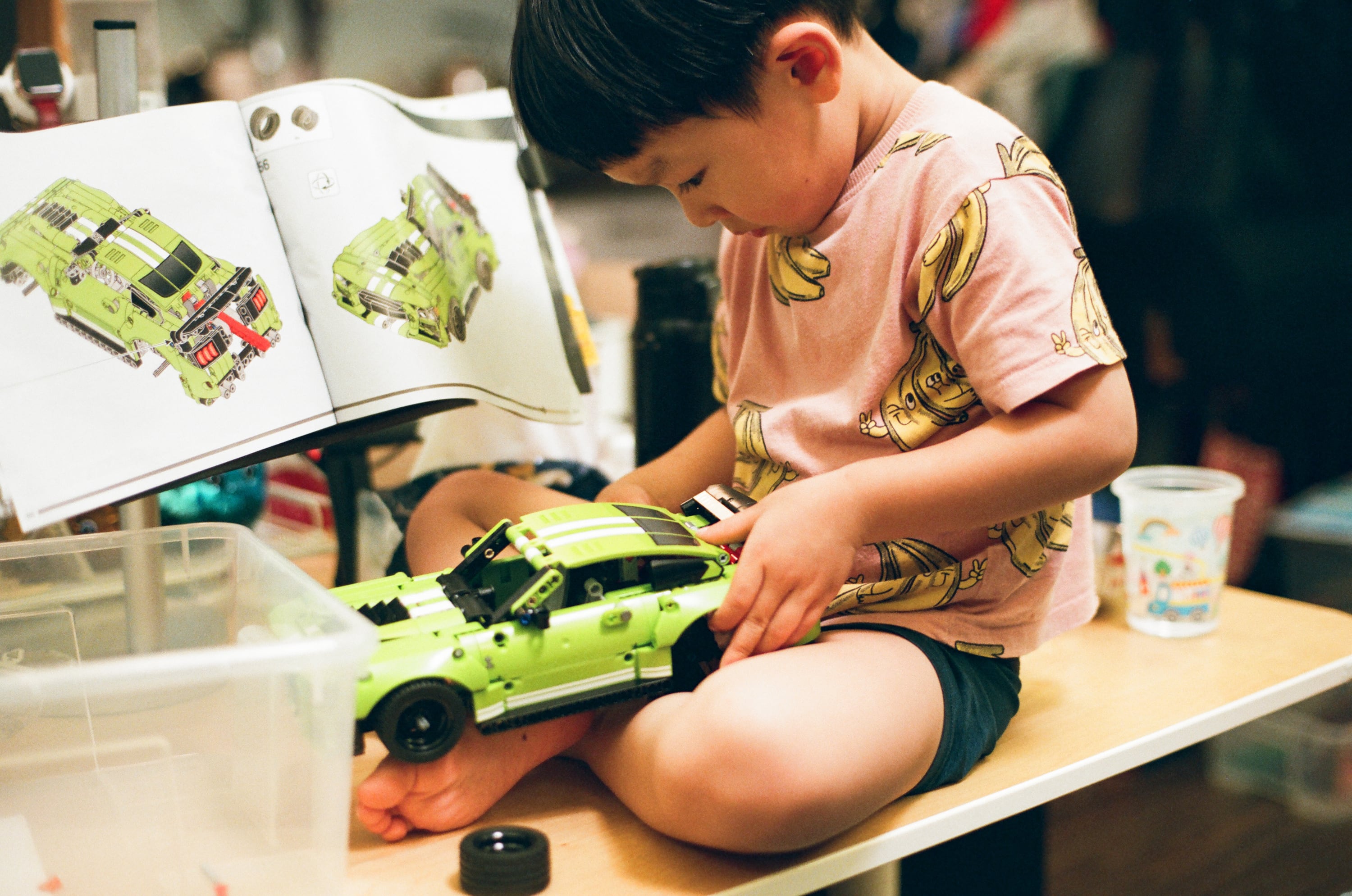正在學習自己組裝飛機的兒子(Lego 42117 競技飛機)