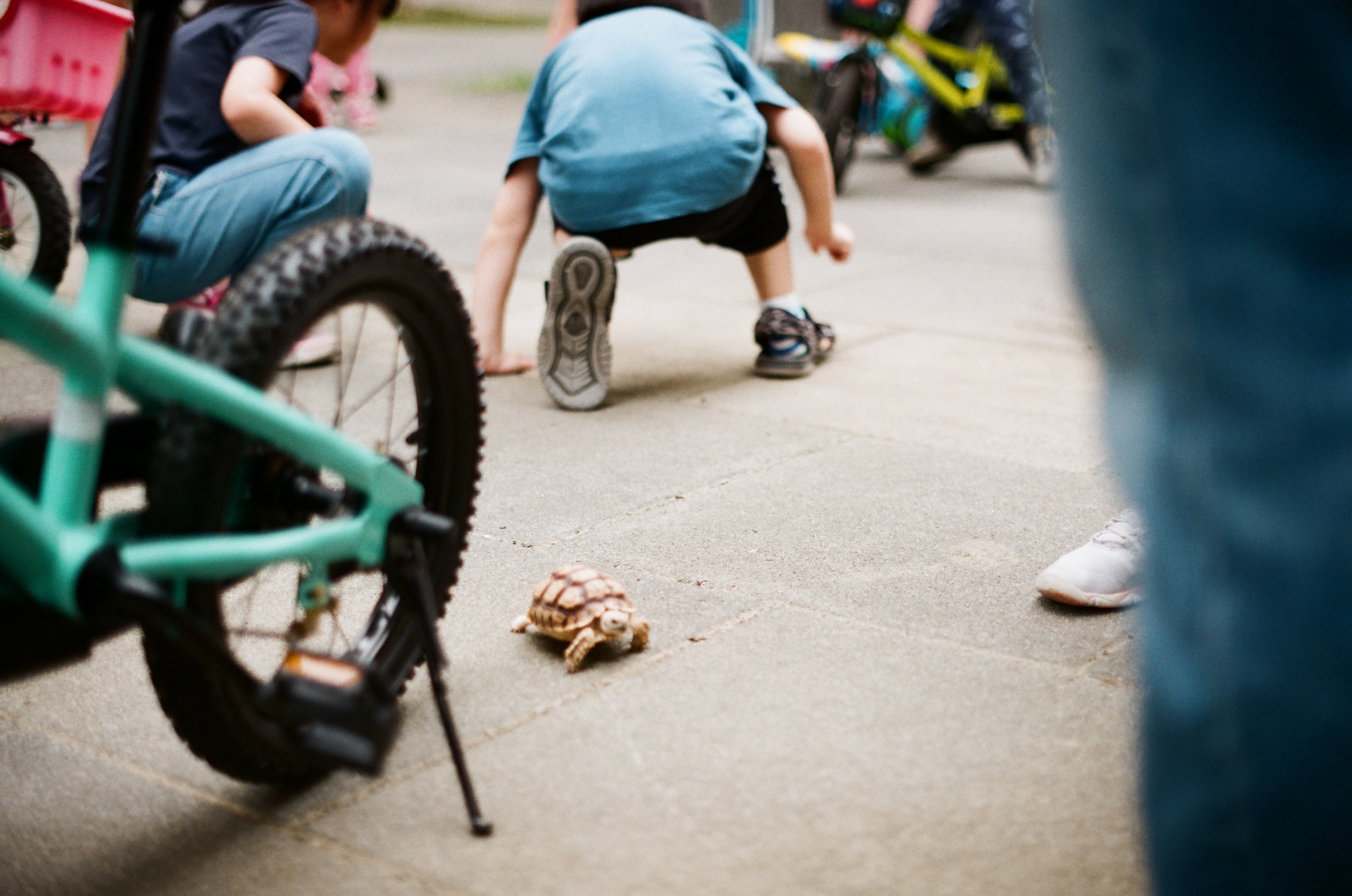 我覺得使用腰平的方式構圖,是一種對被攝者來說,相當沒有侵略性的姿態,更重要的是可以用與被攝者相同的水平高度進行取景,雖然現在這個功能,使用現代相機的翻轉螢幕早已可以達到,但是使用底片相機那種「不可重來」的拍攝方式,還是深深吸引我,讓我更珍惜體驗生活中的每個片刻。