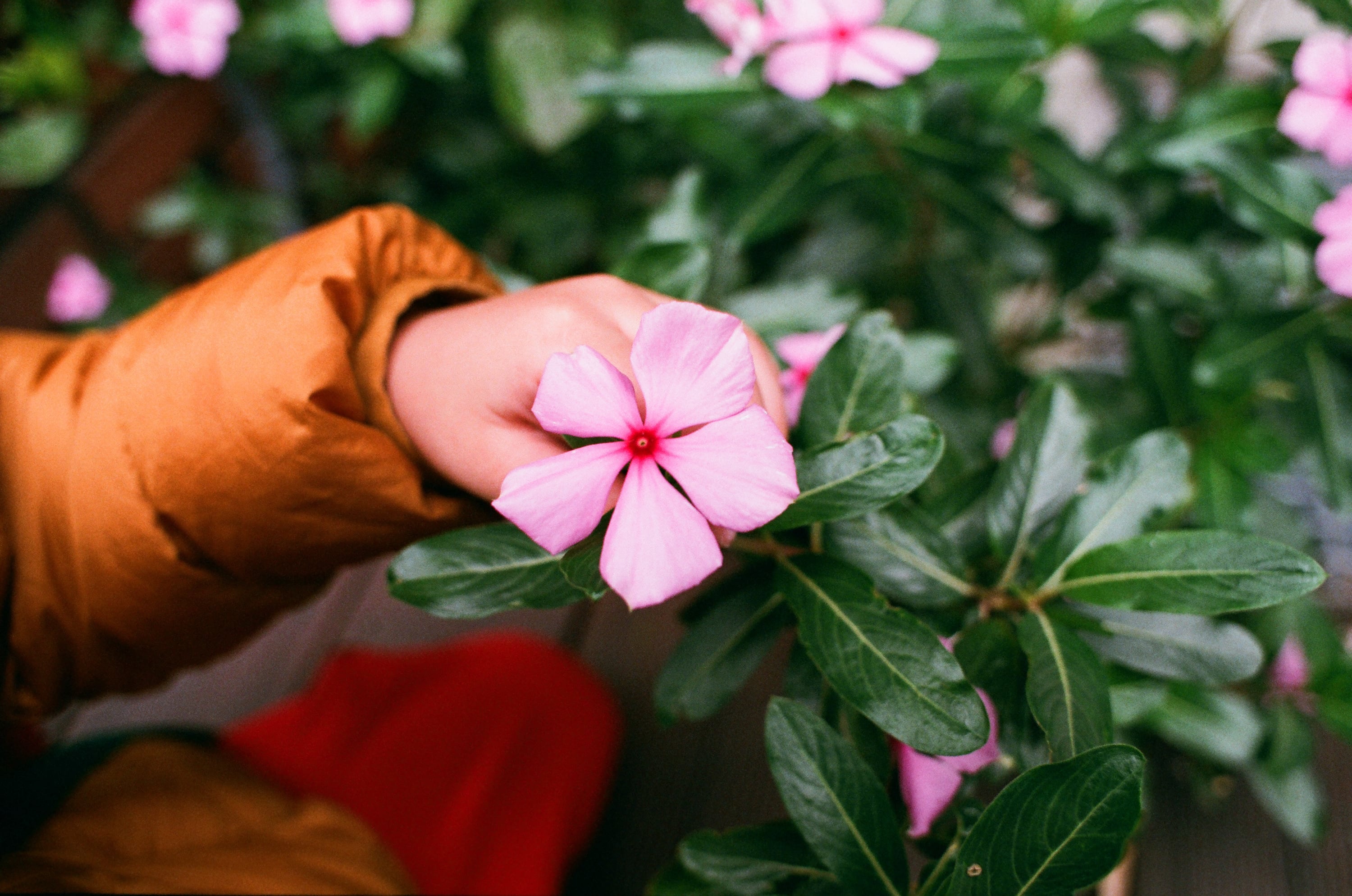 某次去接兒子下課時,兒子在跟我介紹他們學校栽種的植物們,這植物我用手機查是長春花。