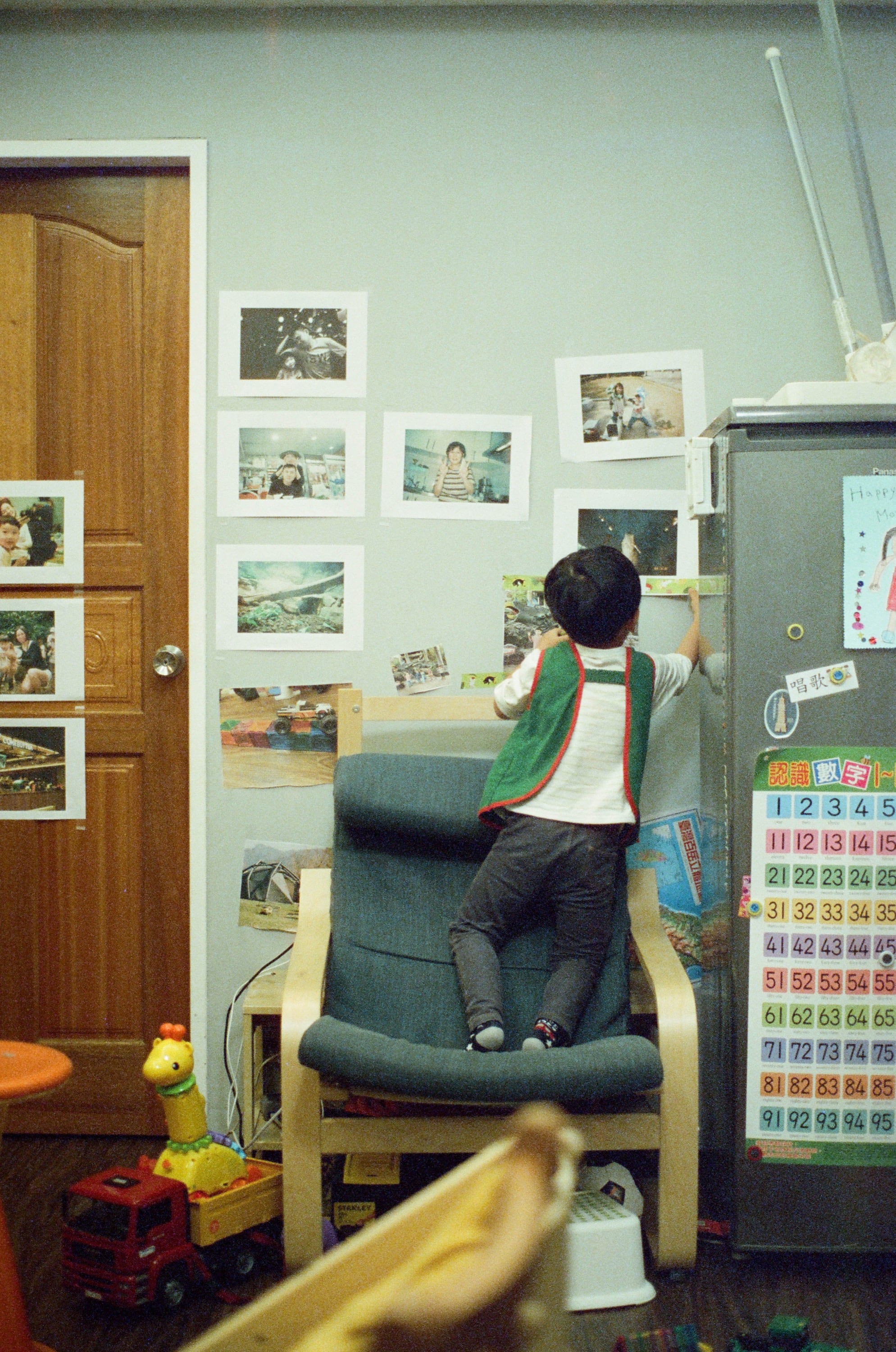 兒子看我在貼照片,自告奮勇地說要幫我貼,我就雙手一攤讓他發揮了,4歲小孩的美學總是非常獨特的。