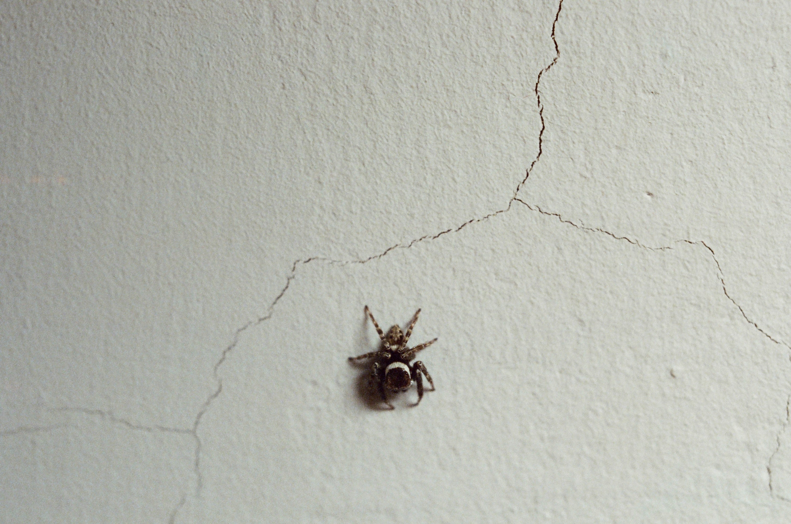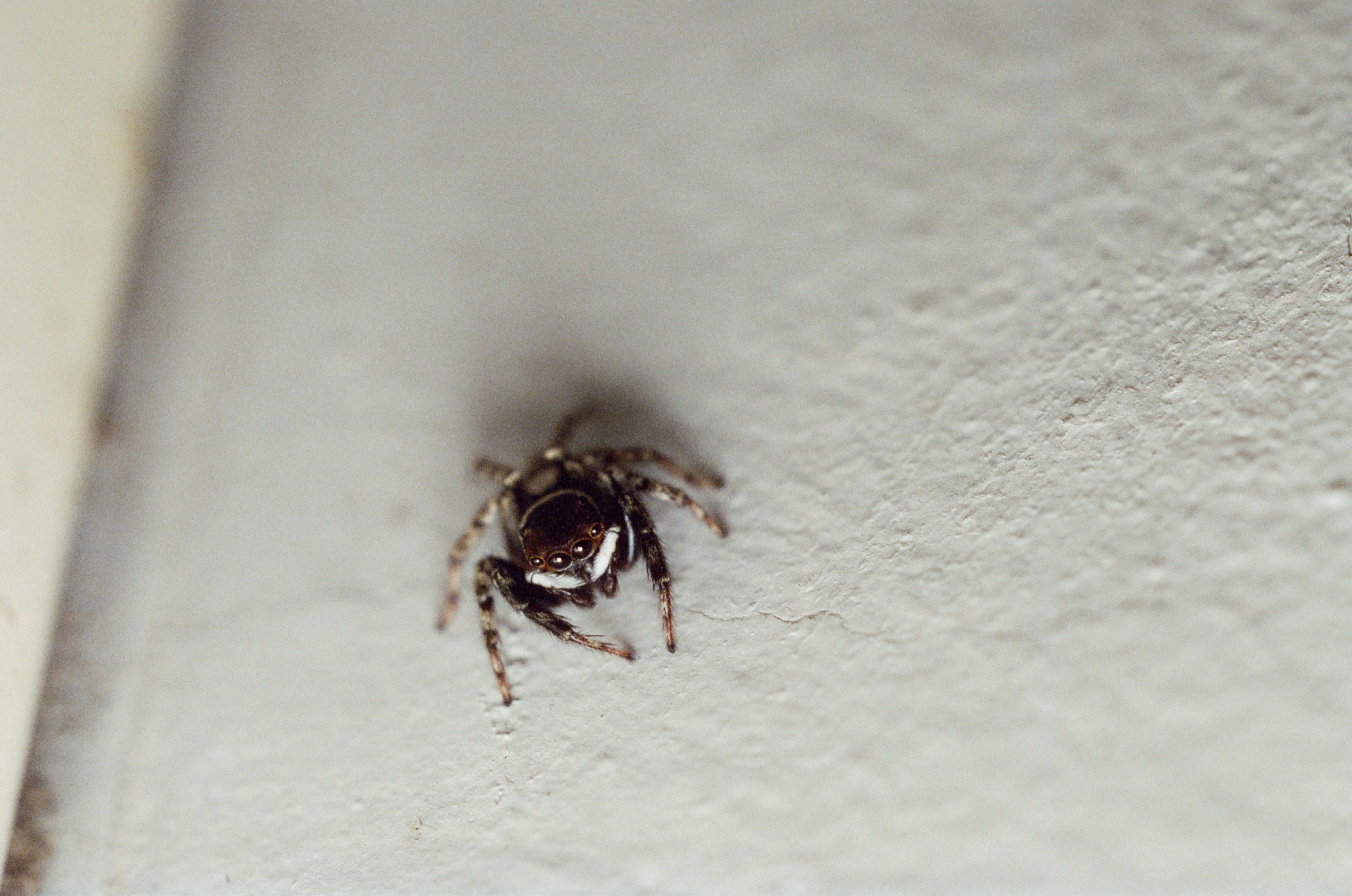 有天我在客廳,兒子在房間發現了一隻蜘蛛,叫我進去看,身長不到一公分,很可愛。