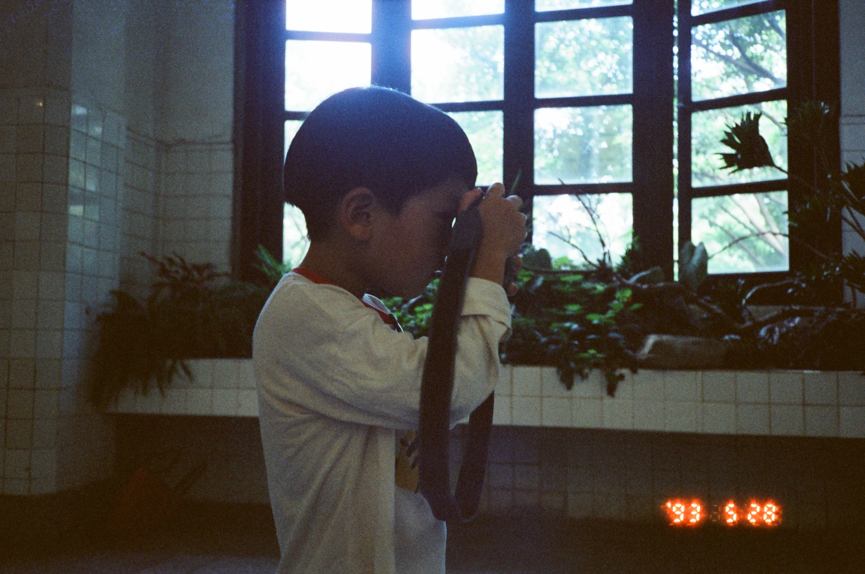 測試一下微逆光場景,圖為正在用 Konica 現場監督 28HG 拍照的兒子。