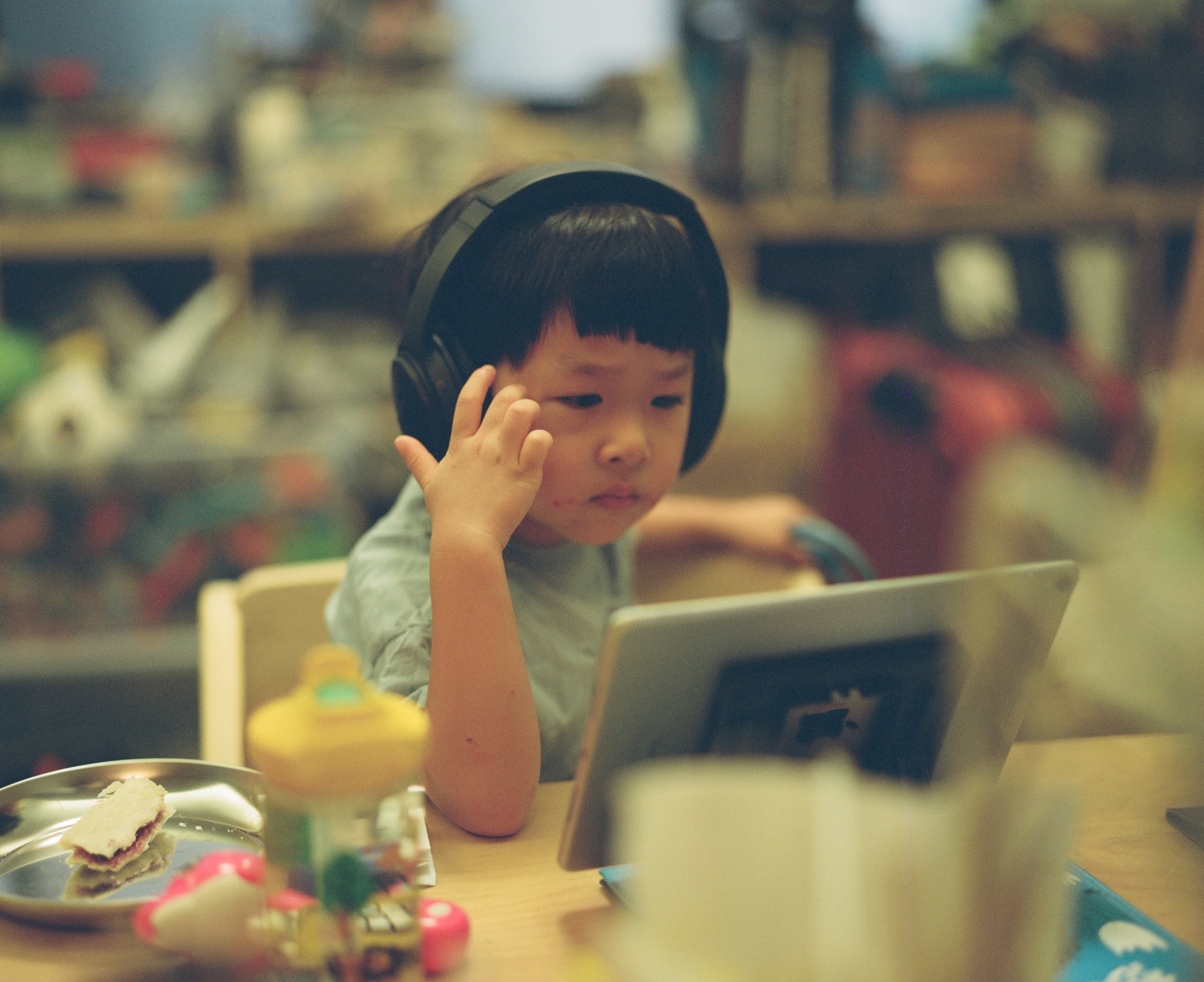 我跟兒子說,借我測試一下用眼睛對焦,看起來是有對到喔!但兒子嘴角上的早餐果醬還沒擦乾淨,身為爸爸果然比較容易忽略這種細節。