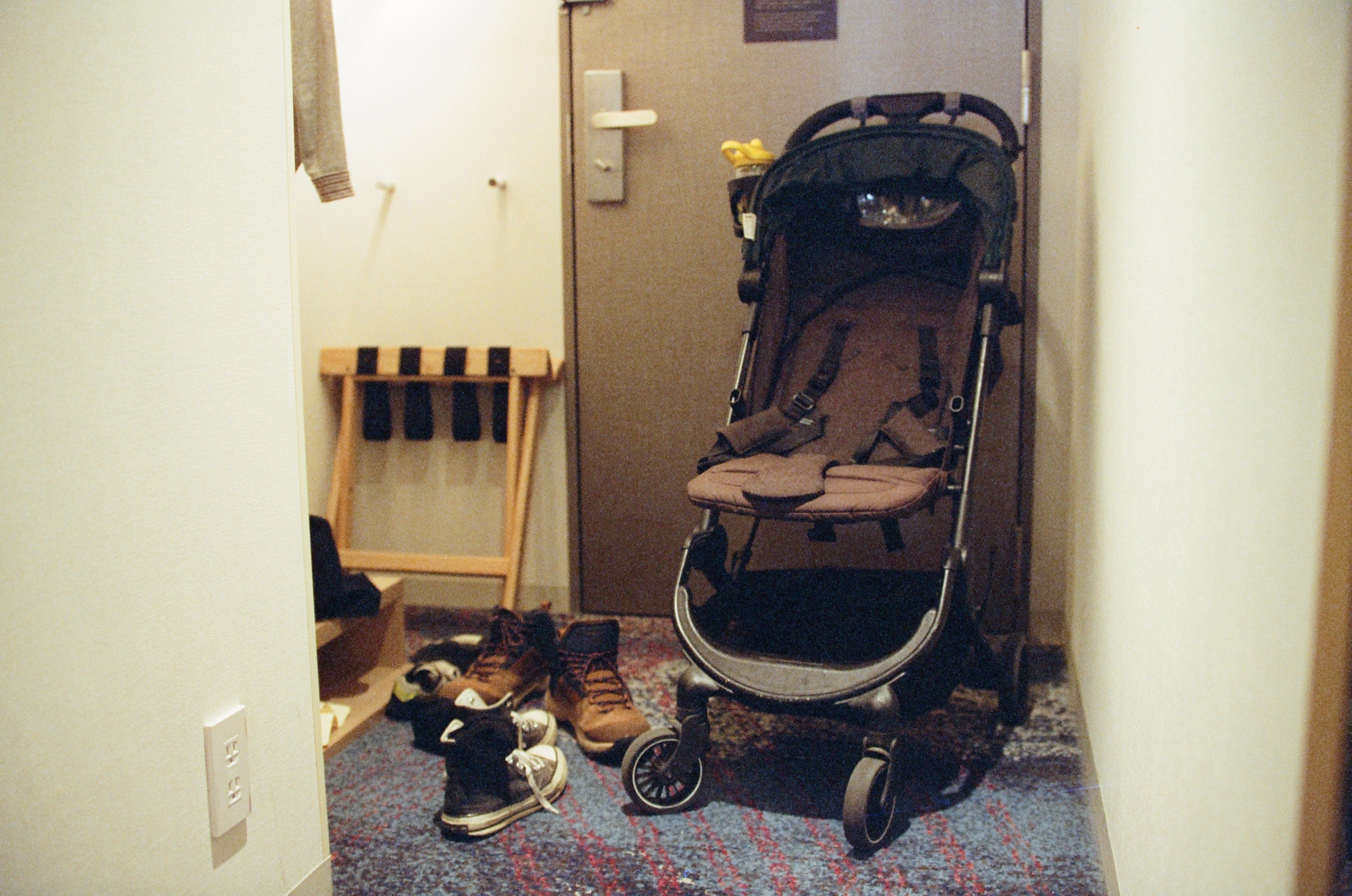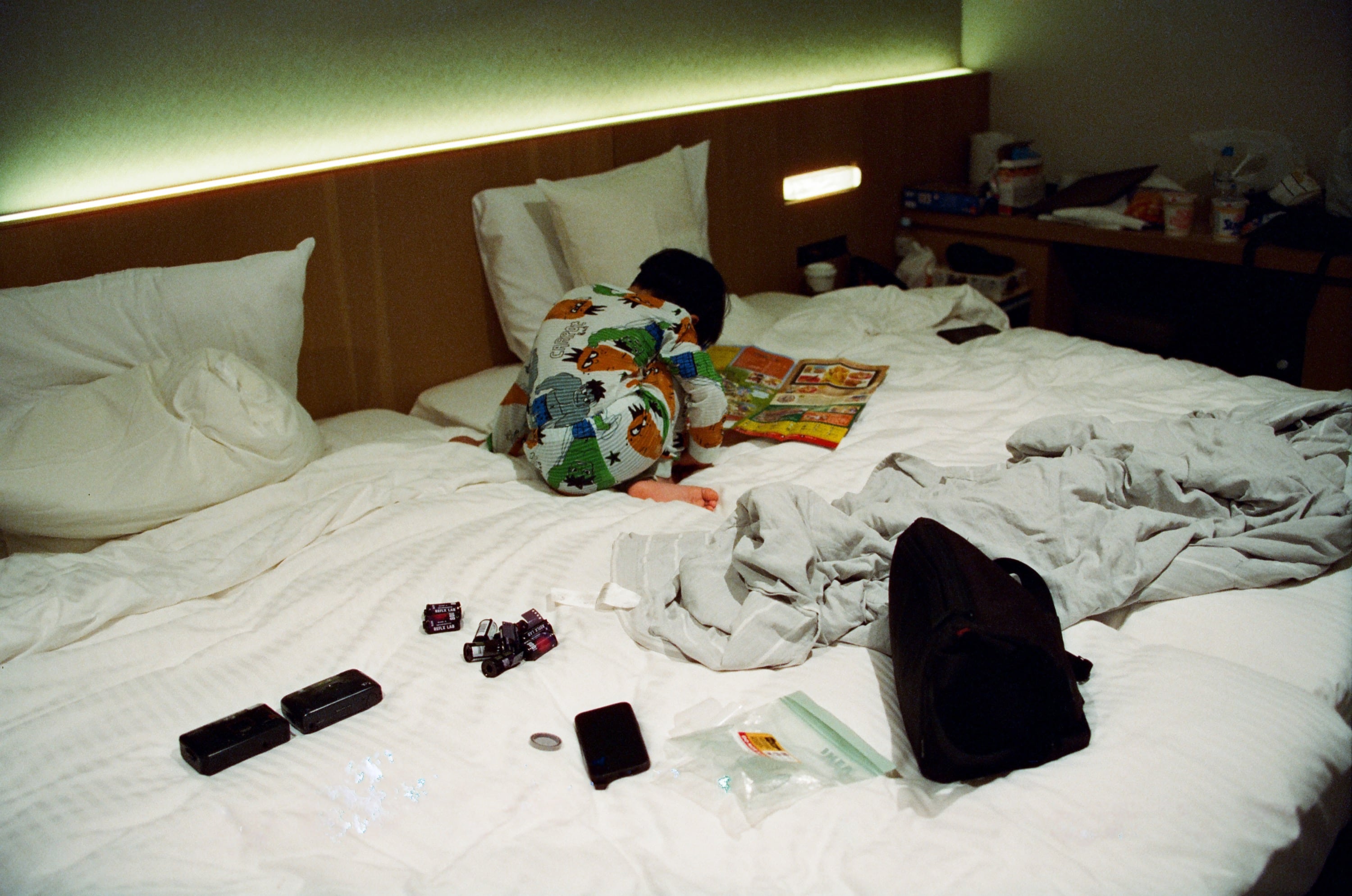 這一天是我們抵達名古屋的第三天早晨,這一天,沒有行程。由於前一天我們睡得比較晚,再加上前一天去樂高樂園玩得比較累,因此這一天起床時就錯過了飯店早餐的供應時間了,我覺得這種旅途中間穿插空白的方式還不錯,因為我們是自由行,所以想要睡到幾點就睡到幾點,由於沒有跟別人約,因此也不需要配合別人的時間。我很喜歡這張飯店早晨的照片,刺眼的陽光從窗戶外透進來,和舒服的飯店房間軟裝形成了強烈的對比。真的多虧了 Reflx Lab 800T 這卷底片,還有 Olympus OM 35-80mm f2.8 這顆鏡頭,還有我最信賴的麗來攝影沖掃,才可以留下這麼剛好的畫面。