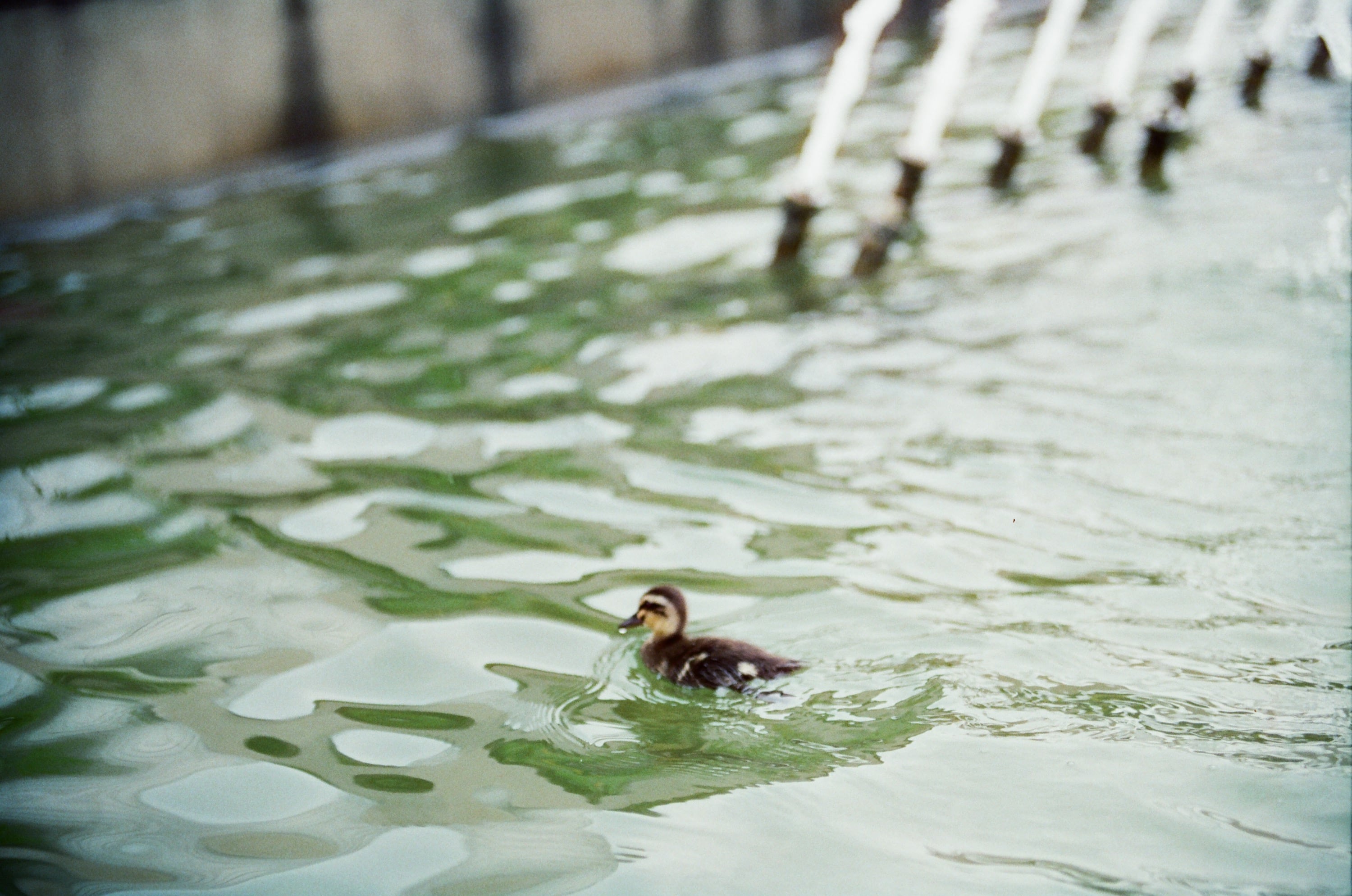 名古屋科學館旁的噴水池,裡頭竟然有鴨子,也太可愛了。你看我的追焦功力,連一隻時速 3 公里的小鴨子都無法駕馭。