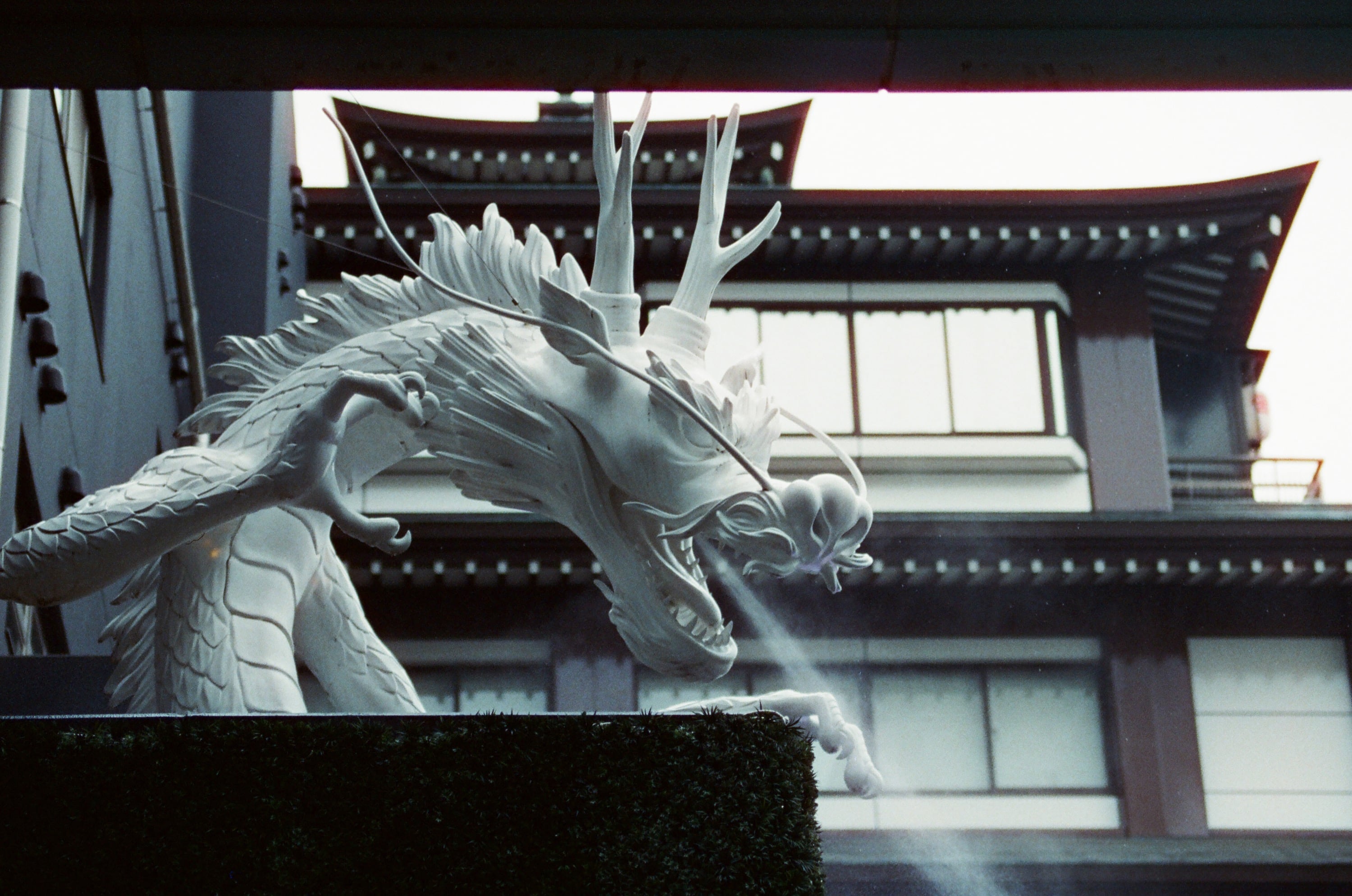 為了找中古相機店,我們有走到大須商店街,但這個商圈我自己是不太推,賣的東西不太像是日本當地會有的東西,感覺很奇怪。圖為大須商店街中「龜嶽林萬松寺」的白龍裝置藝術。