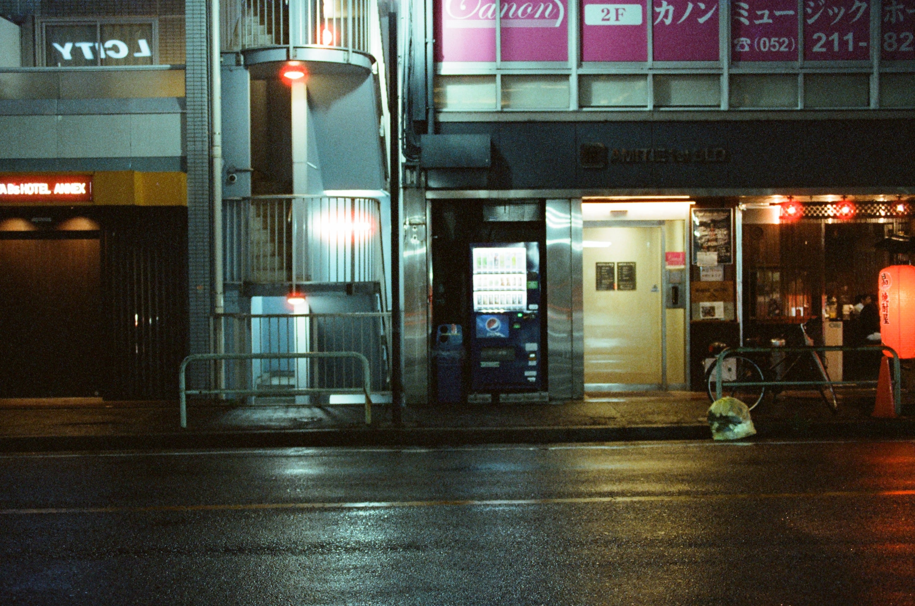 本次名古屋之旅我一共帶了三台功能不同的相機,分別是用於主要紀錄的 Olympus OM-3 Ti,還有這張照片中的兩台傻瓜相機。照片左邊的是 Konica Big Mini A4(35mm f3.5),主要用於可以和家人自拍,之後我有一天在名古屋晨跑時也有帶著它,完全派上用場。照片右邊的是 Minolta P's(24mm f4.5)純寬景相機,裡頭裝的是 Ilford HP5 Plus 400,用這種黑白寬景的方式紀錄名古屋,我個人也是超愛,下次出國還會繼續帶。