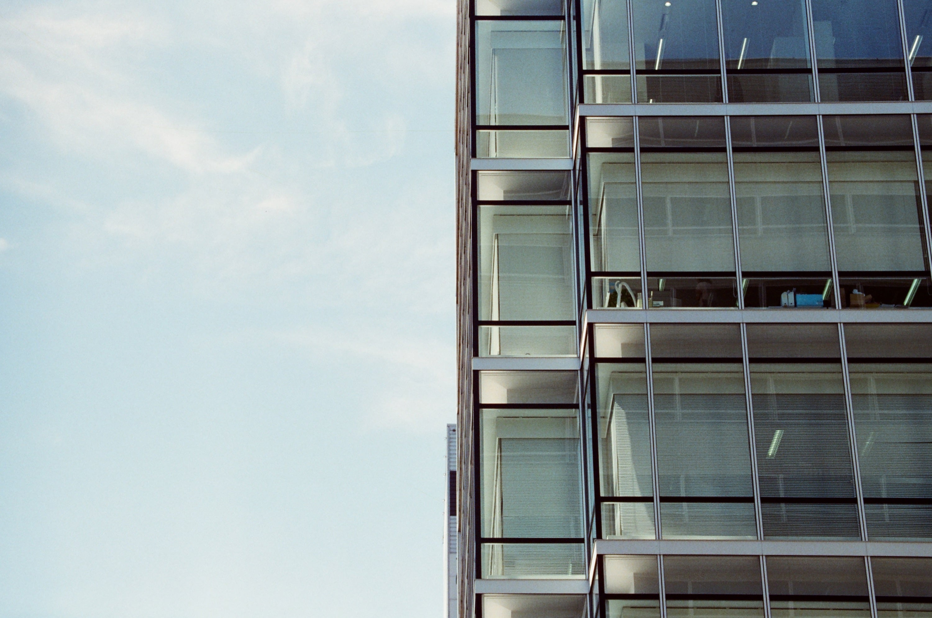 正在等紅綠燈的我,好奇遠方辦公大樓的人開始上班了沒?