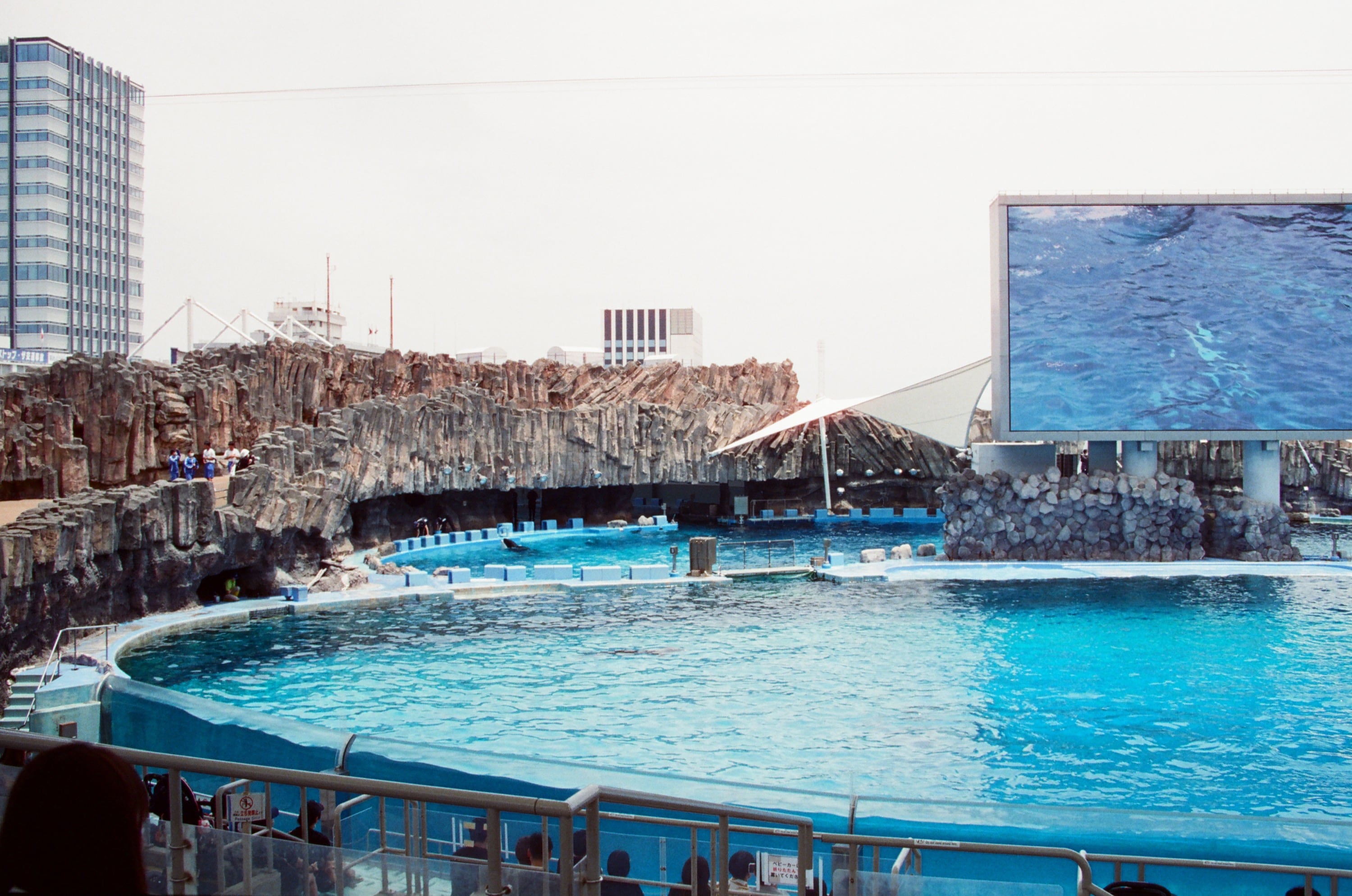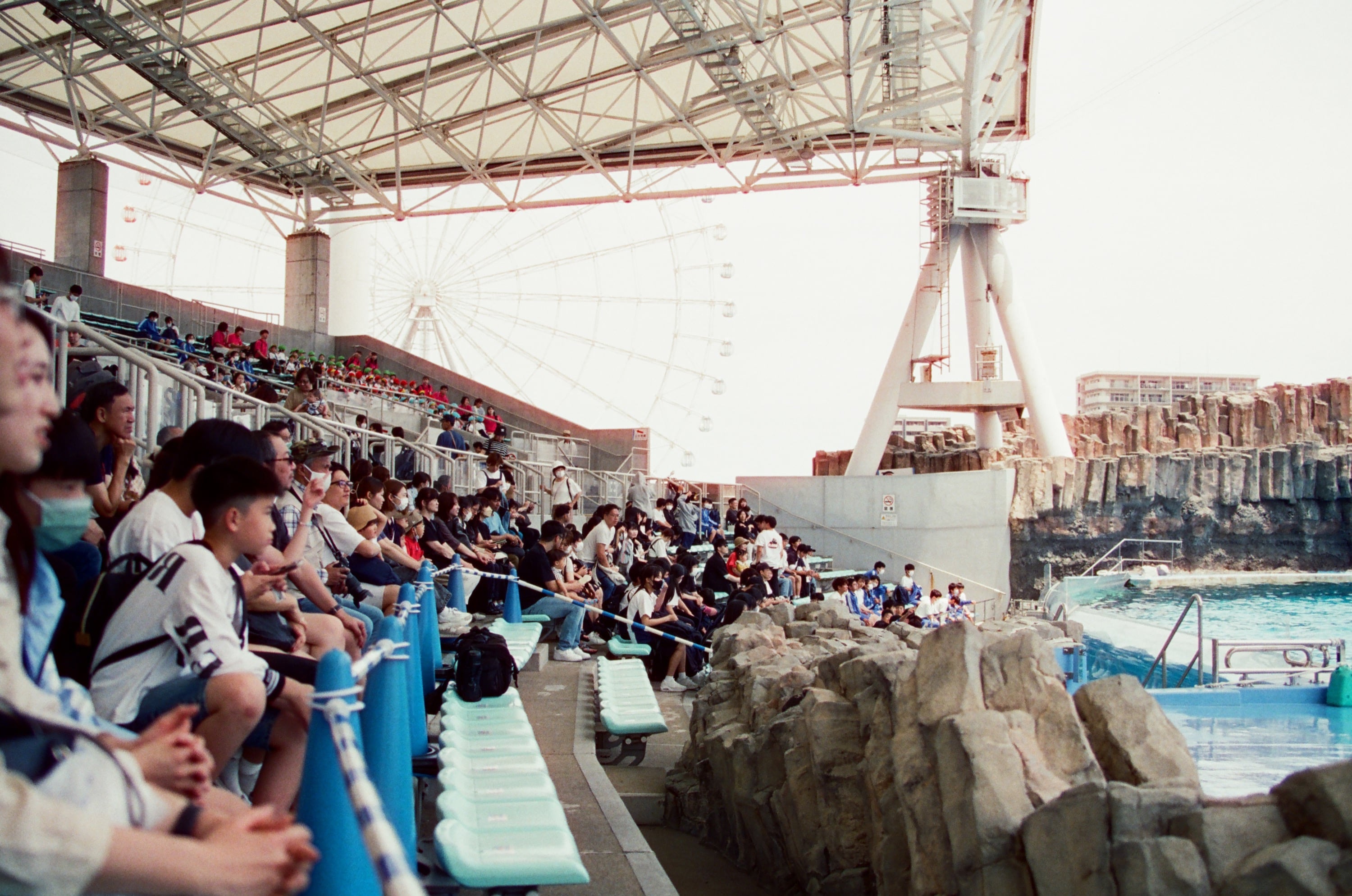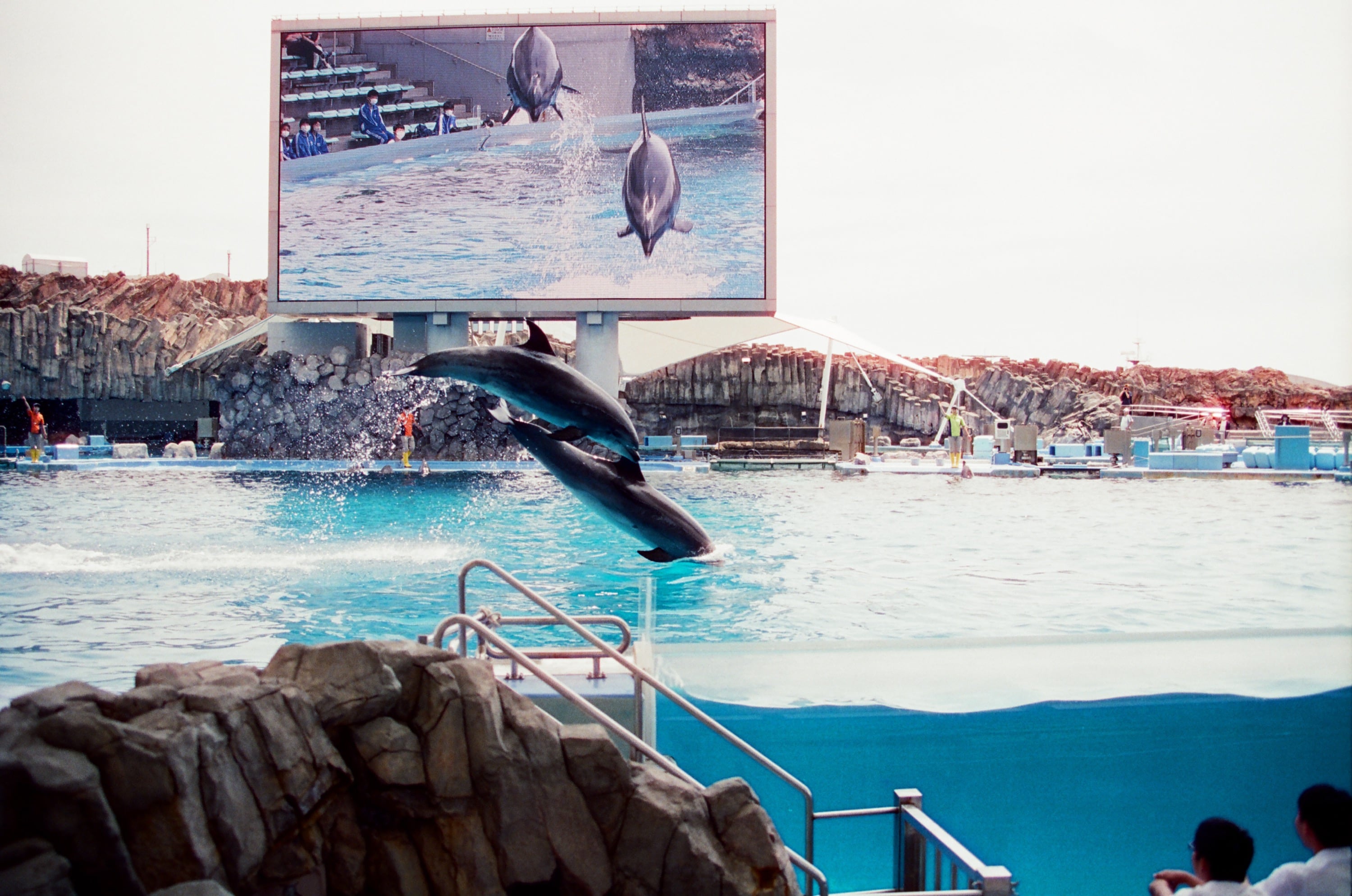 因此,這次去名古屋,某個程度也算是衝著水族館表演而去的吧!因此相機拍了許多「海豚追焦照」,當然,有成功,也有失敗,一切都是拍照的樂趣。這卷底片算是我們去名古屋水族館的上卷,因為看完一場海豚表演之後,底片也差不多拍完了,下一卷有另一些關於名古屋水族館的照片。