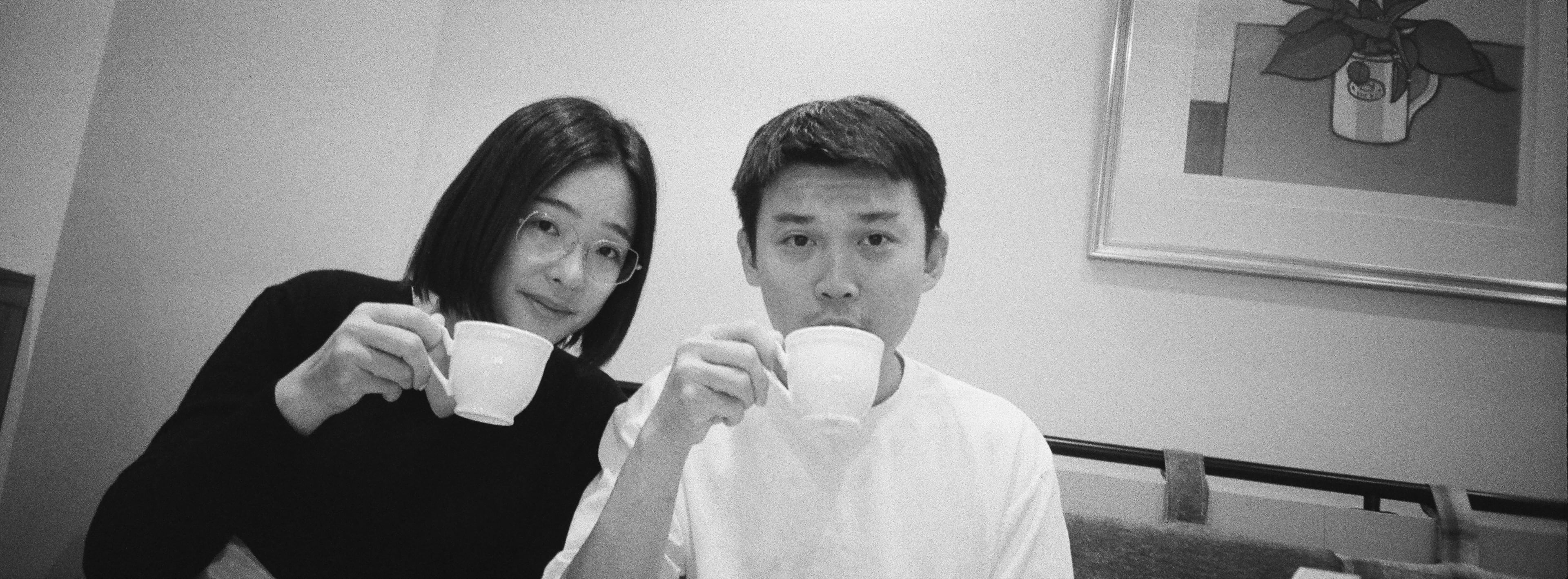 在名古屋的某天,我們在一家路上隨遇的咖啡廳吃早餐,這是兒子幫我和太太拍的照片。