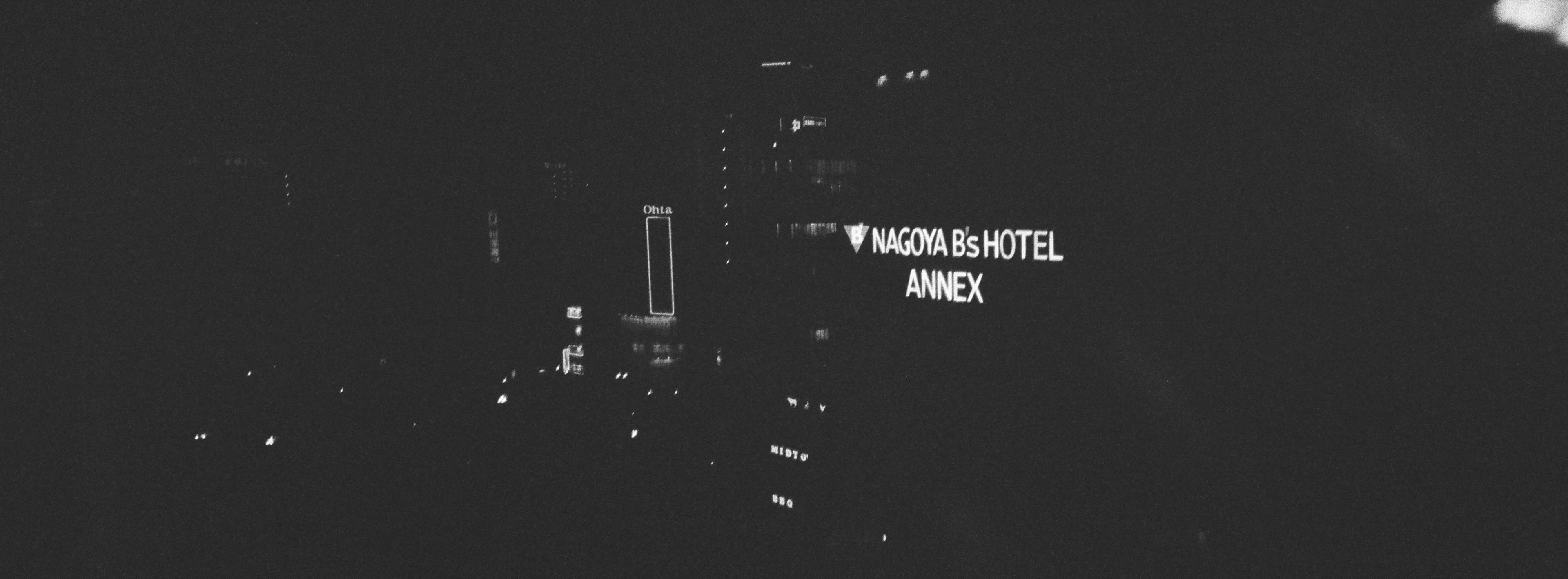 某天回到名古屋飯店的晚上,我隔著玻璃窗往樓下拍,果然拍不到什麼東西。