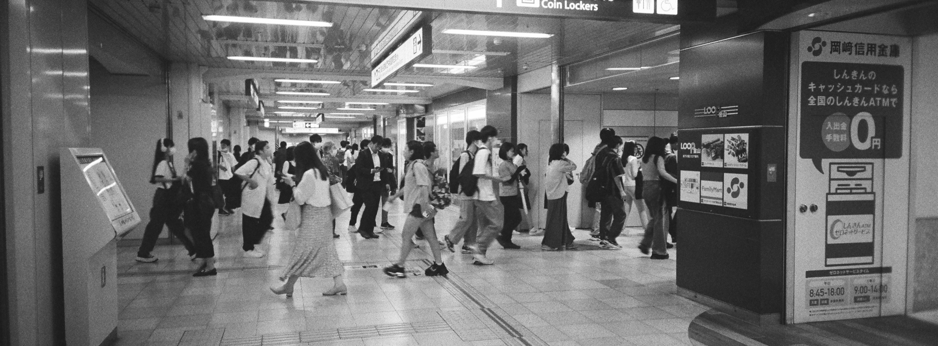 這張照片,應該可以當作我愛上寬景相機的濫觴。場景是名古屋的伏見車站,不知道為什麼,我竟然可以順利等到當對面月台沒有半個人的時候再按下快門。