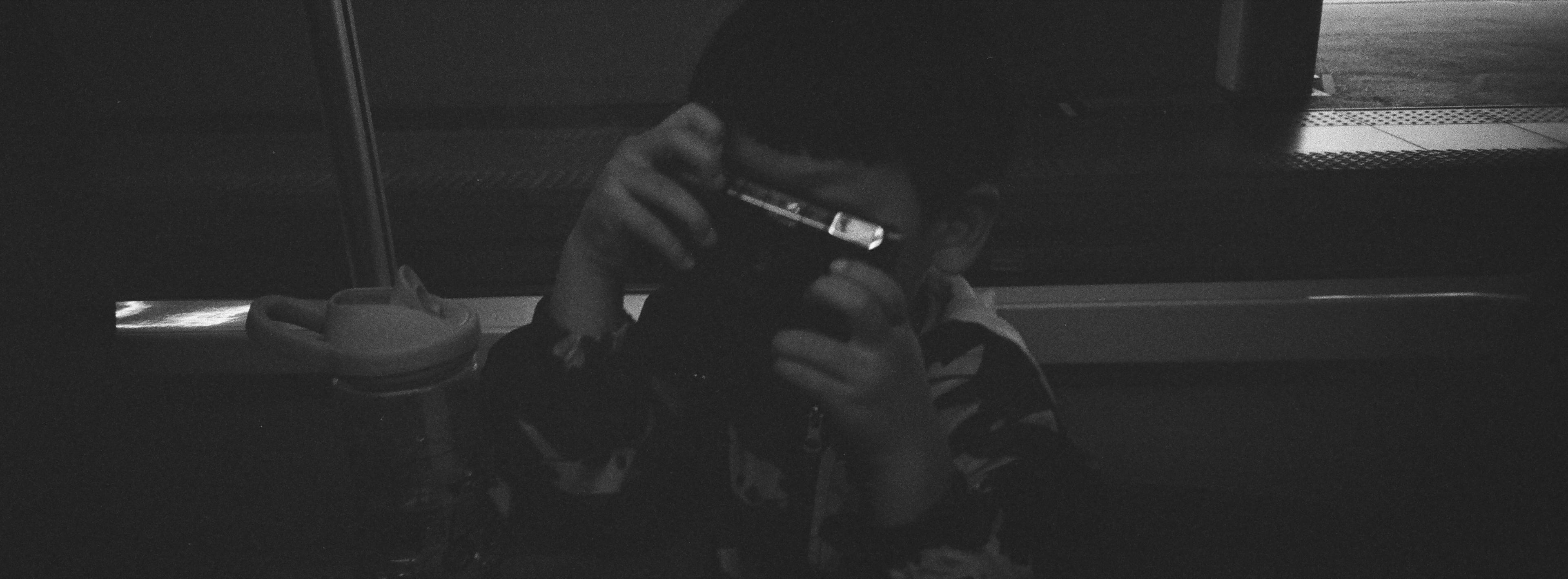 正在用 Konica Big Mini A4 的兒子,話說我們家真的很多 Konica 的相機,我應該也算是 Konica 相機的愛用者了?目前來說,在單眼相機我喜歡 Olympus,在傻瓜相機我喜歡 Konica,在中片幅我喜歡 Pentax。