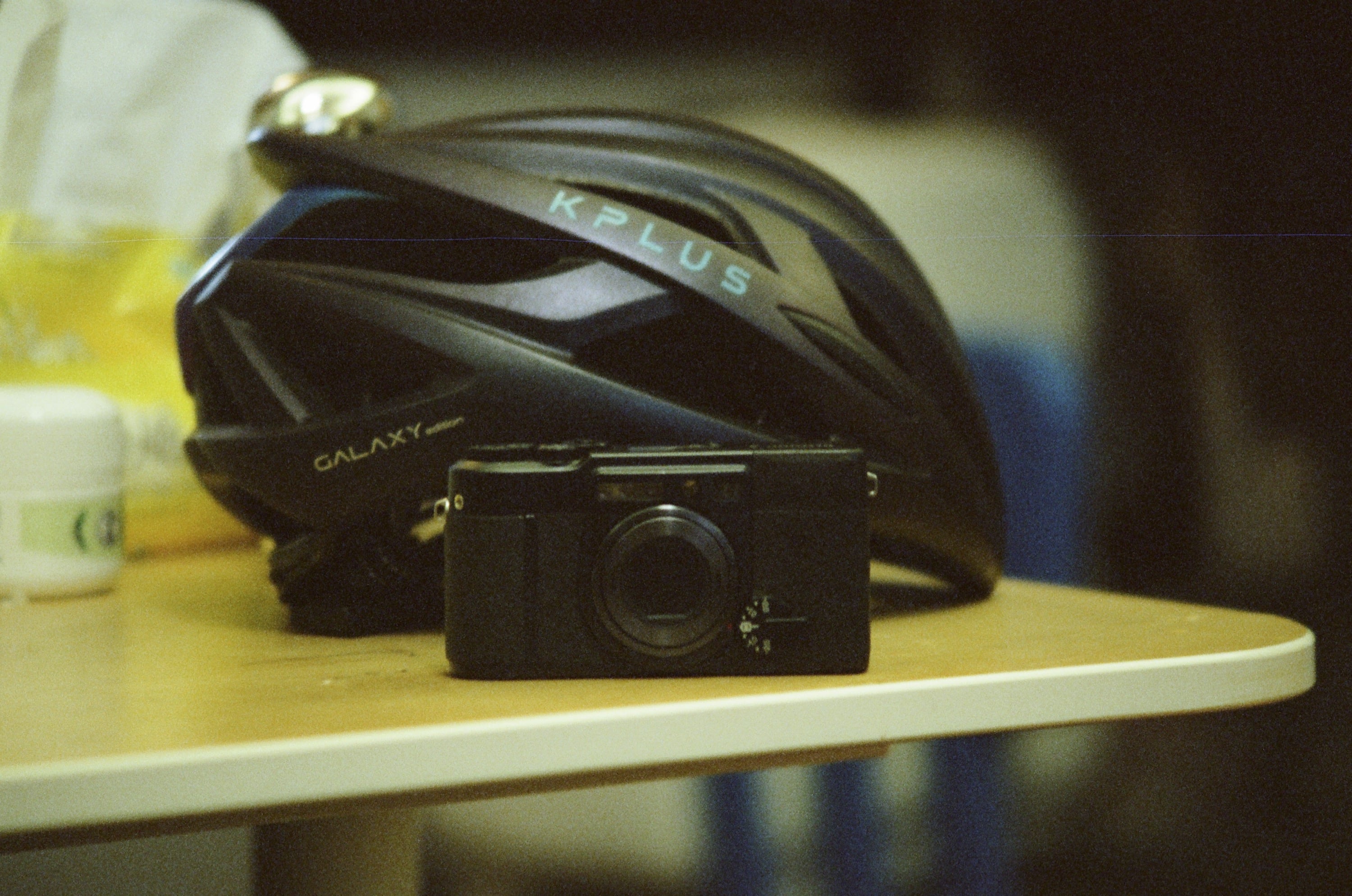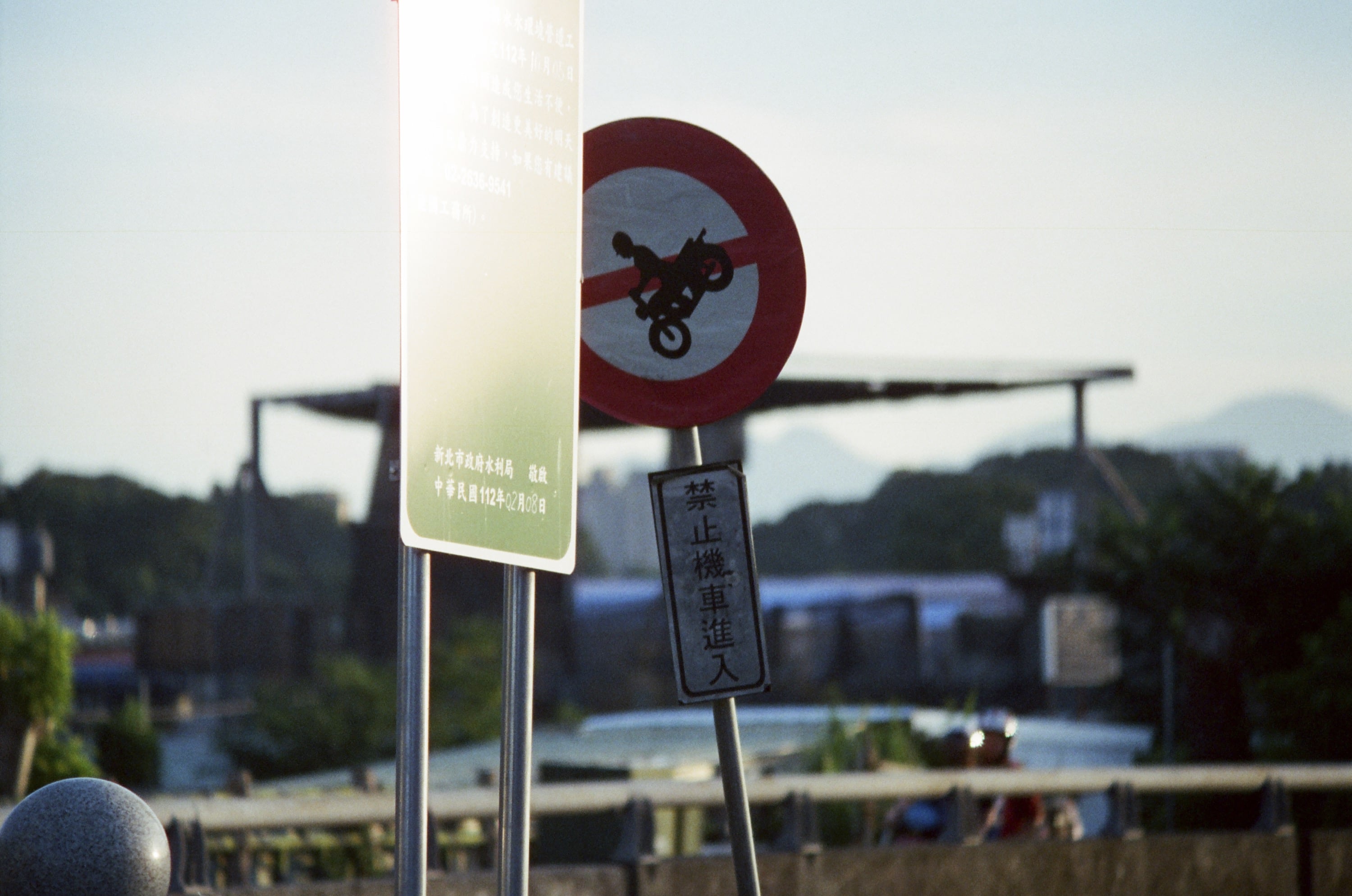 我一直覺得鏡頭愈長,測光的進光量愈低,這種時候寧可相信相機的測光量,也不要相信手機的測光量。這張照片我用相機測光是 -2.5EV,用手機測是 -1EV,就拍攝結果來說,相機的測光結果比較可信,你看,中間相機的細節都看不到了。這是今天帶出門騎車的副機 Fujifilm Klasse S 38mm f2.8,負責廣角的部分。