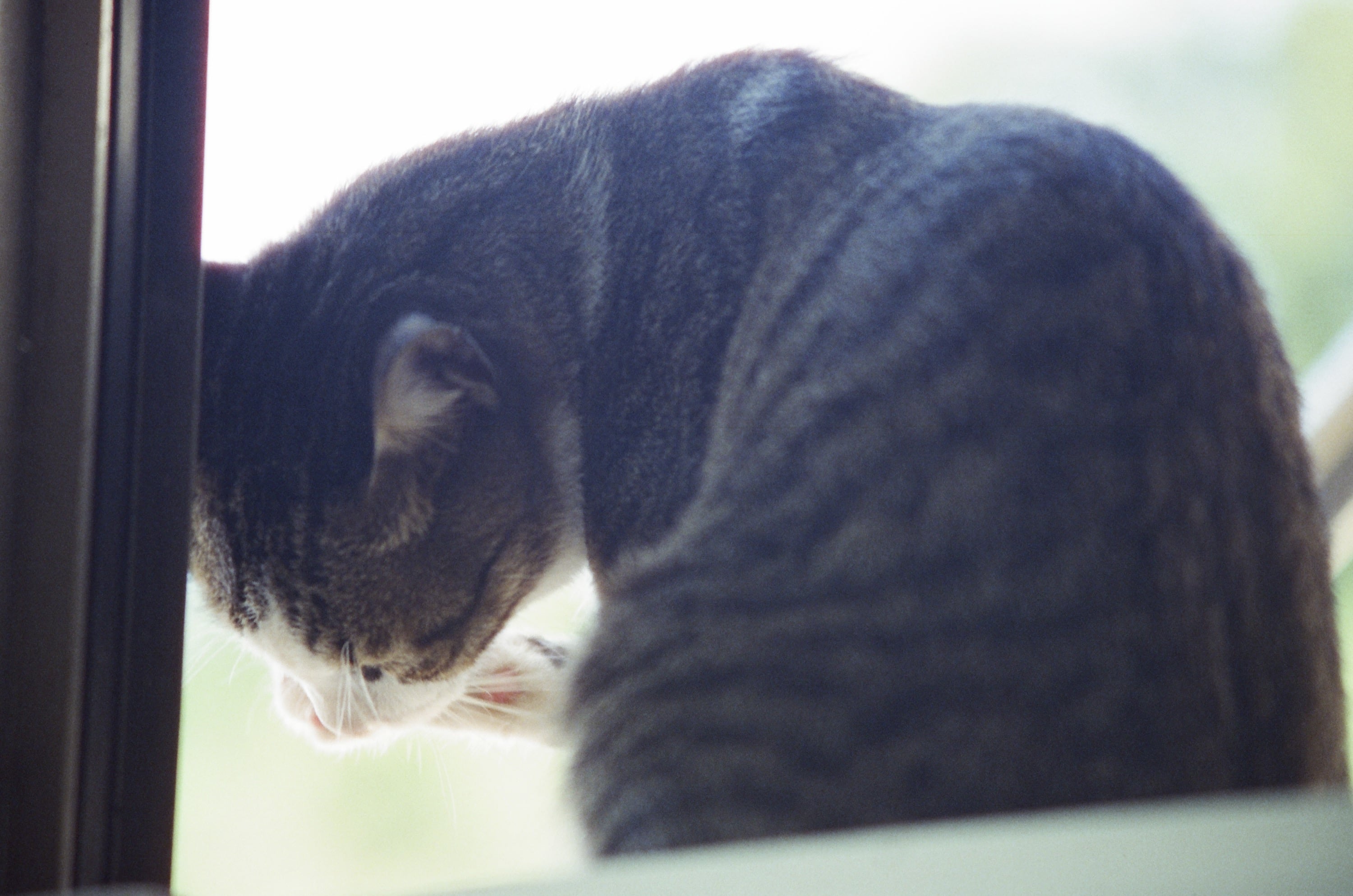 烘爐地攻頂後,我發現了一隻小貓咪,正在梳理自己。
