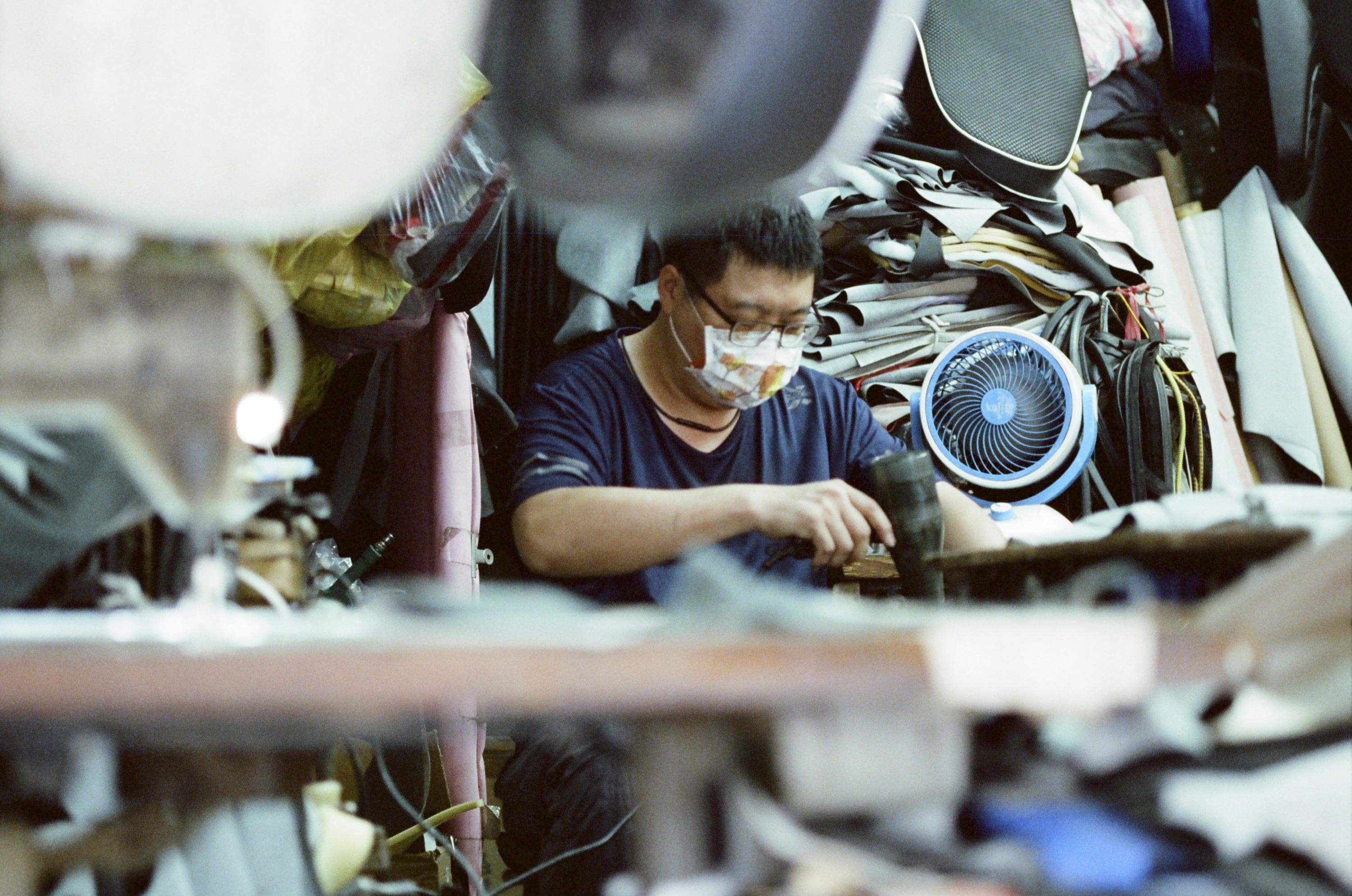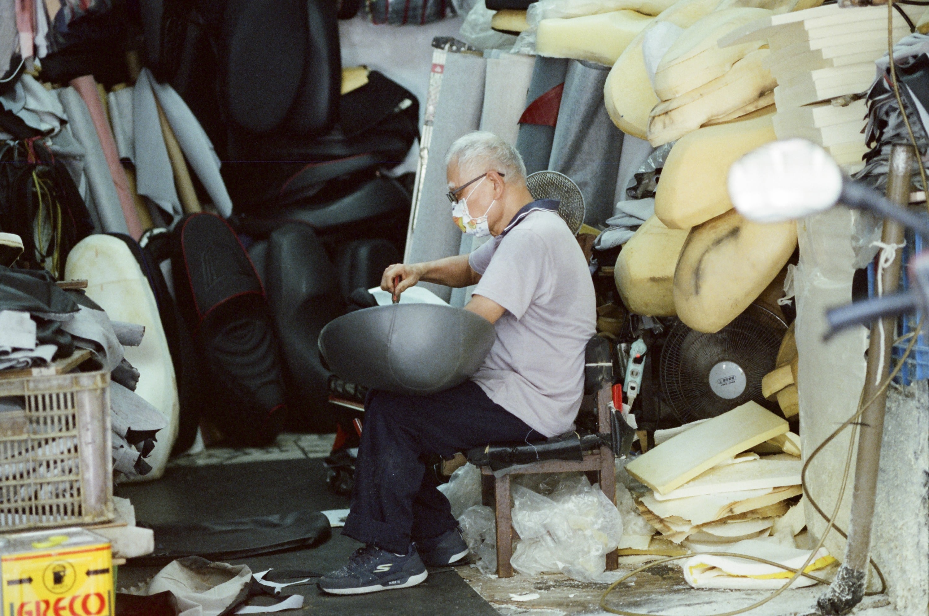 正在幫我換 Gogoro 機車座墊皮的老闆。