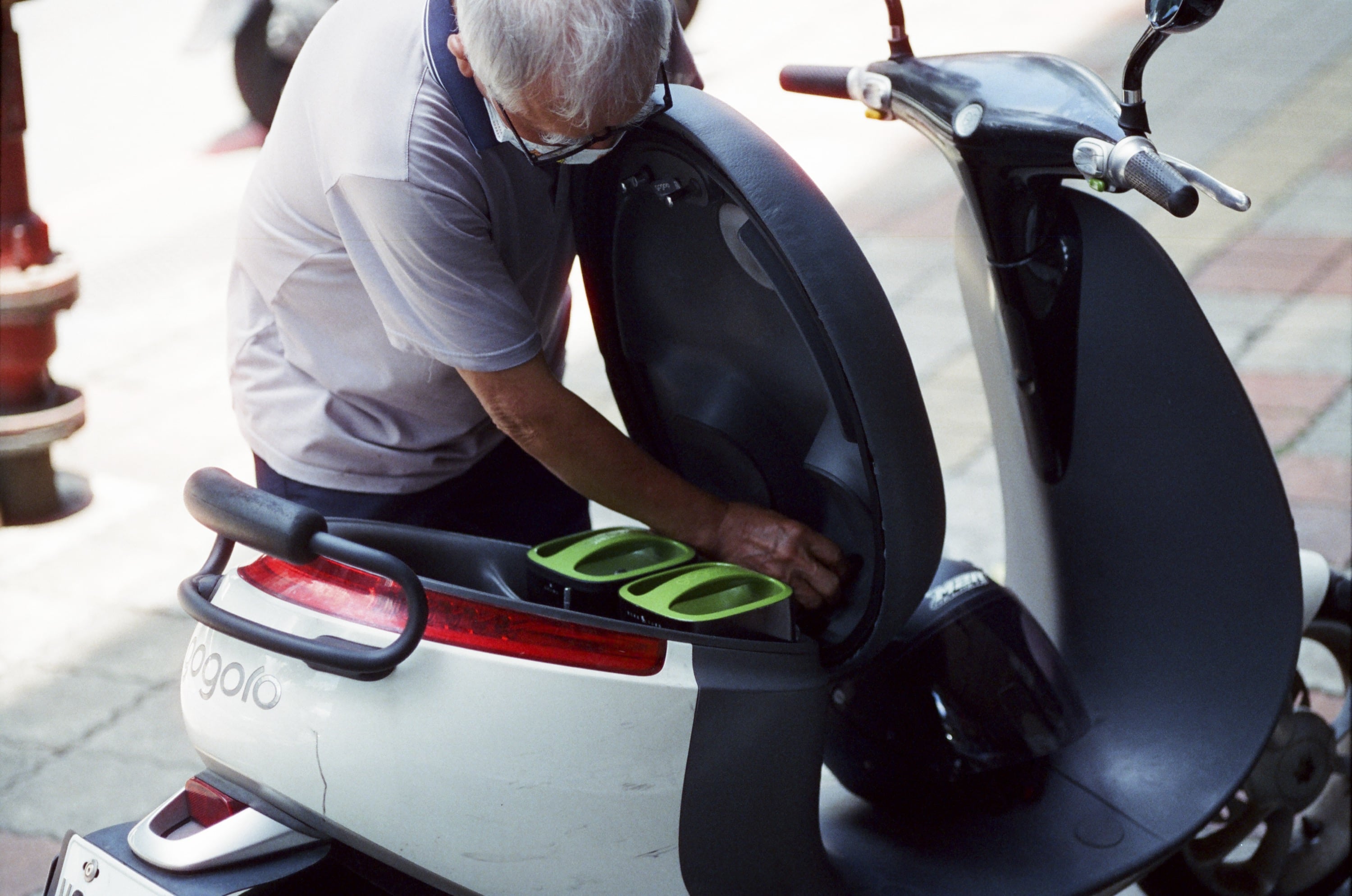這卷底片的內容,主要是有一天我去烘爐地騎腳車車,還有我去板橋的新洽興機車座墊行換 Gogoro 一代座墊皮的一些照片。