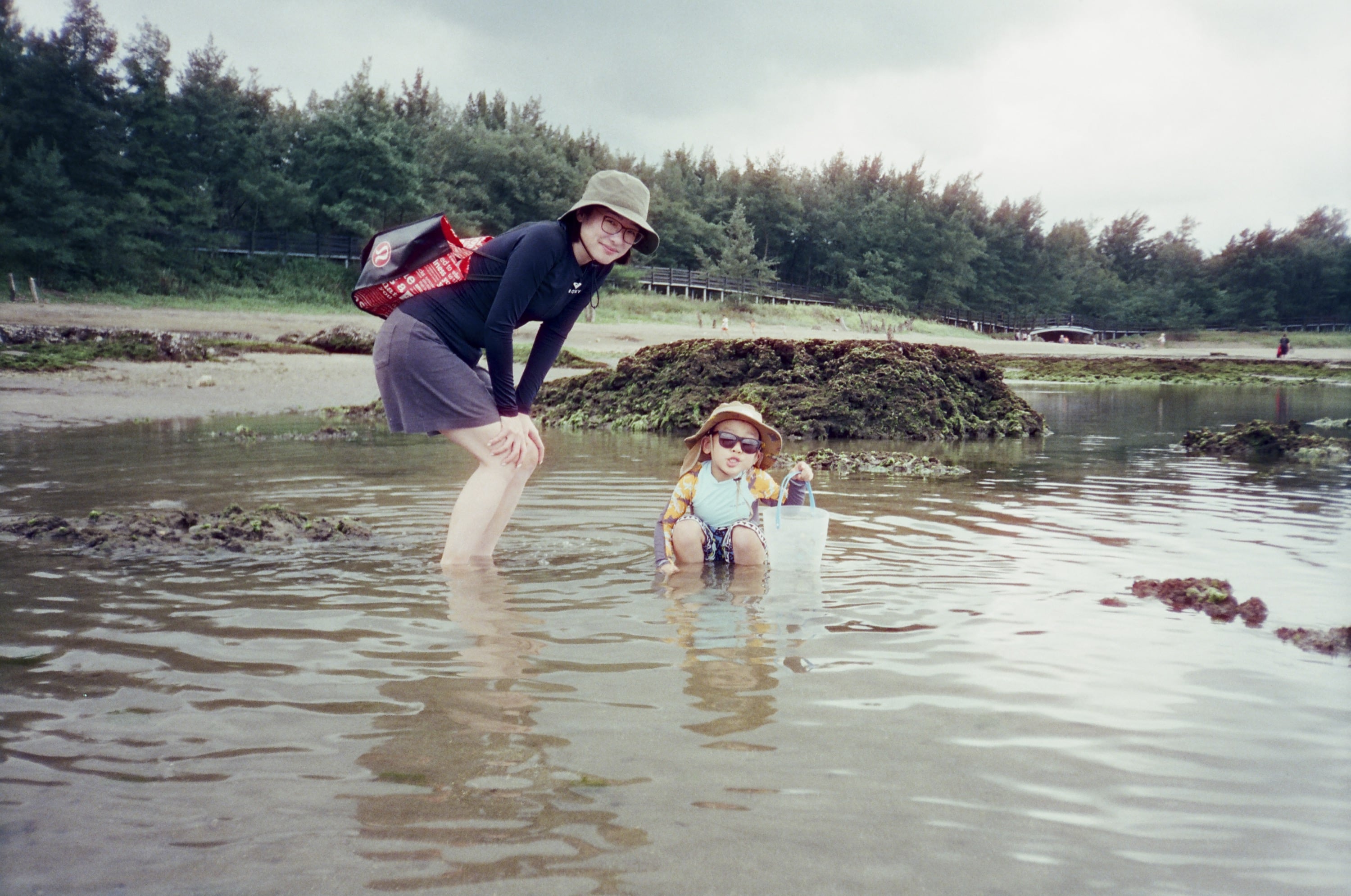 這卷底片的內容,主要是記錄我們從端午三天兩夜露營回來後,隔天又跑去北海岸的麟山鼻潮間帶抓螃蟹的照片(提醒,抓完螃蟹不要帶走,請原地放回,維持生態環境)。我原本想測試一下 Weathermatic DL35 的水下攝影性能,不過因為潮間帶的水太淺,前後距離較窄,又不太清澈,因此我還是只有拍到水上的照片。