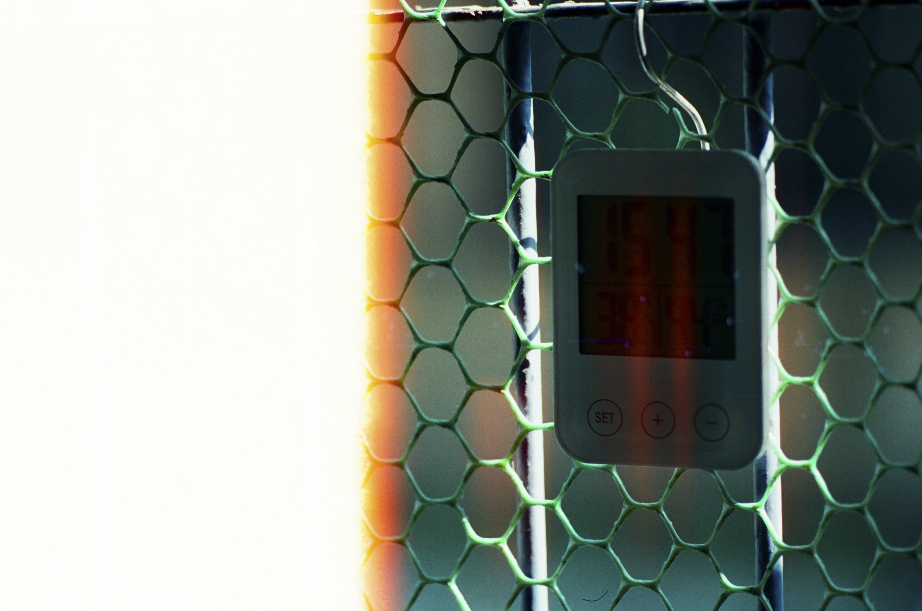 有天出門前看到的溫度。因為這卷底片品質有問題,所以拍不太出來,但我用 Lightroom 偷看,當時上面顯示的溫度是攝氏 38.7 度。