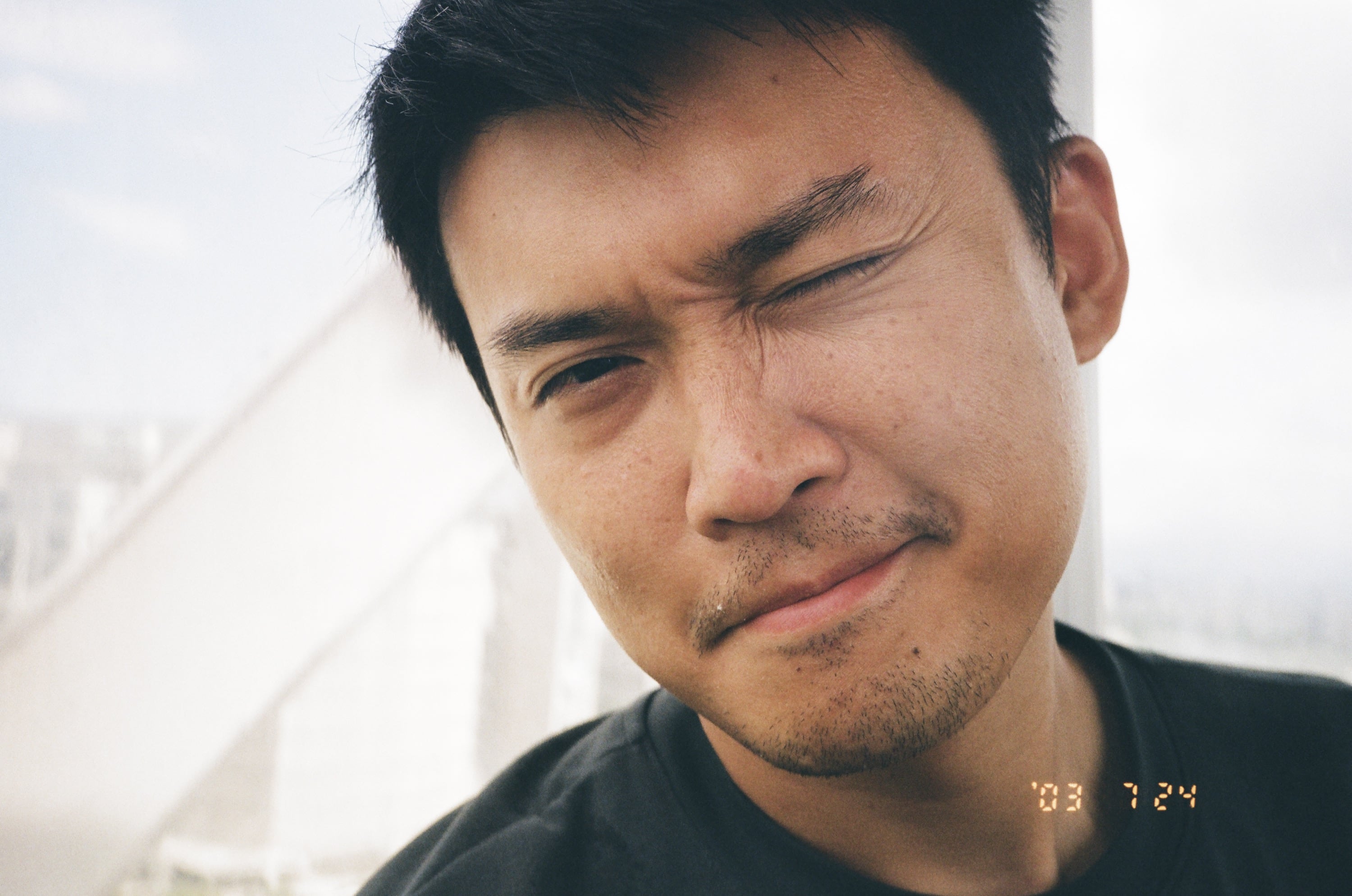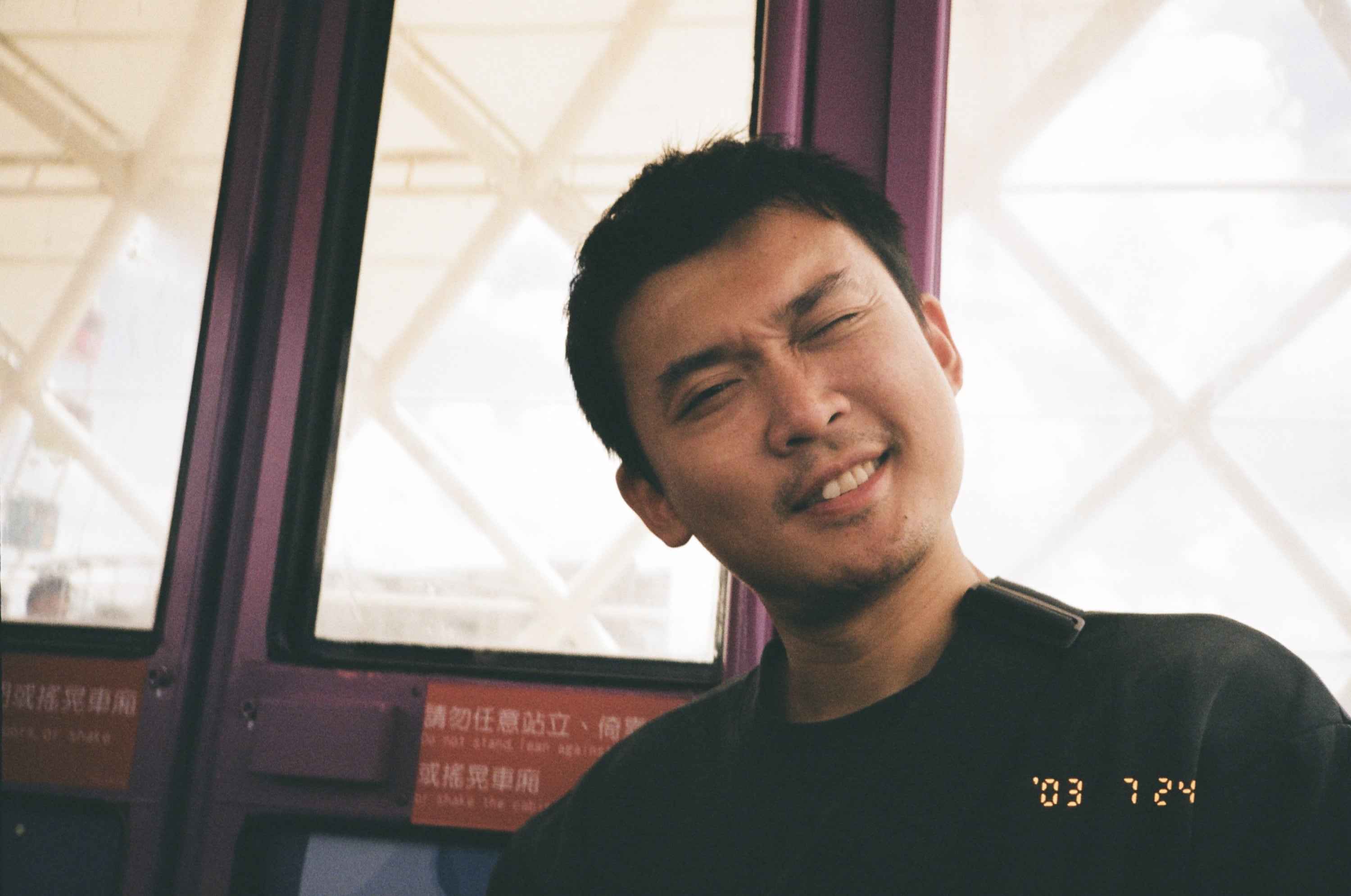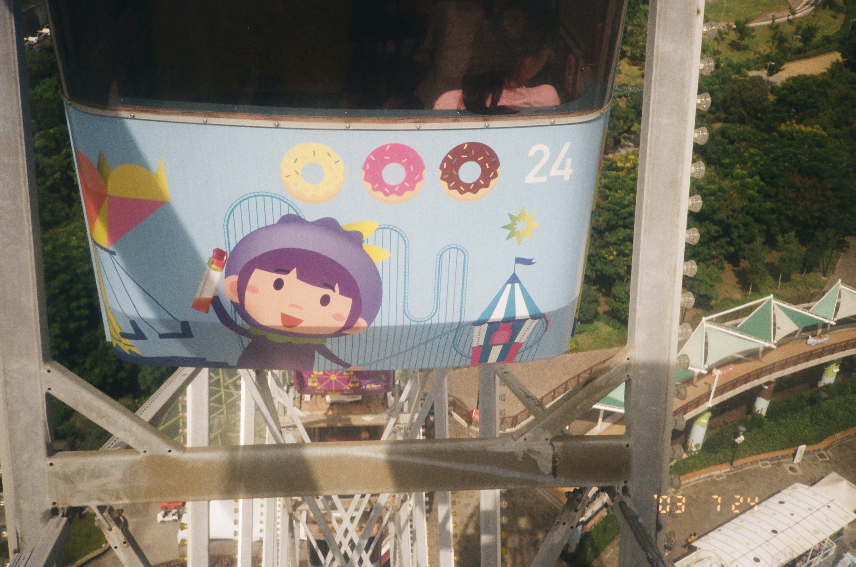 在摩天輪上進行超近距離自拍對焦測試,完全準焦,臉部肌膚毛孔與鬍渣一切清晰,整體成像平順協調,這就是 Konica Big Mini F。