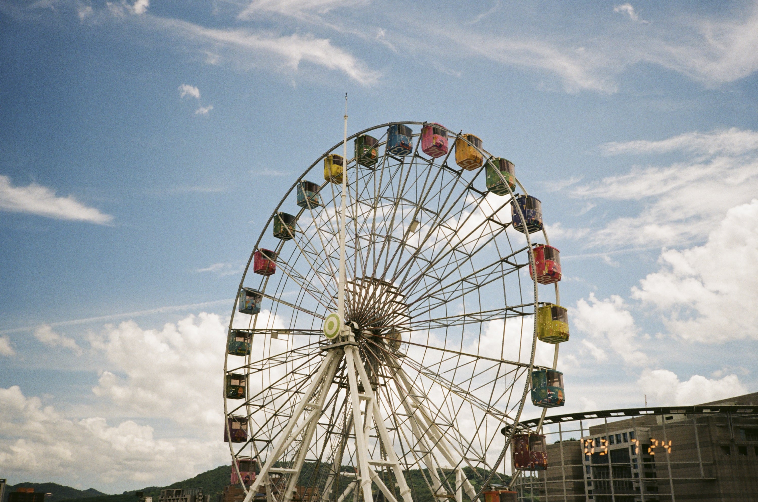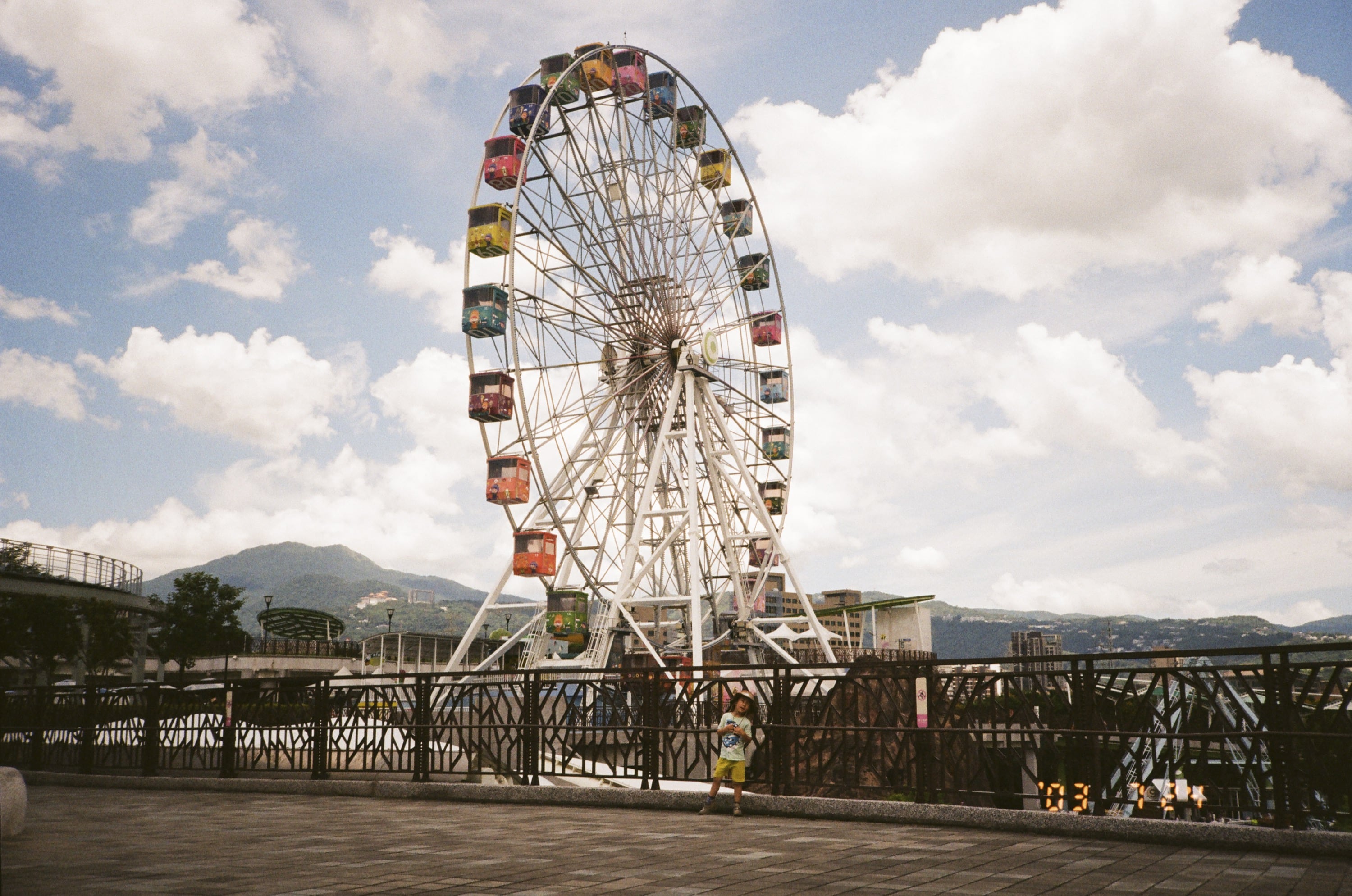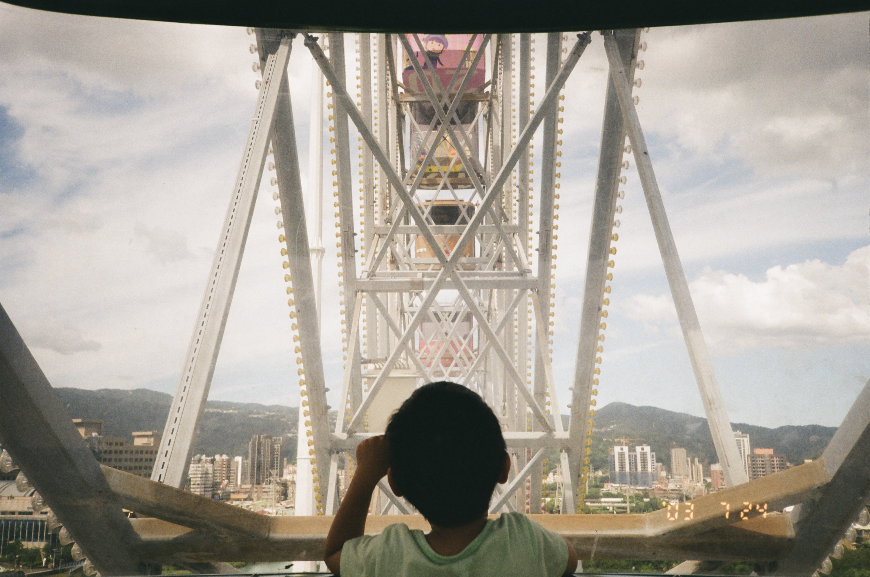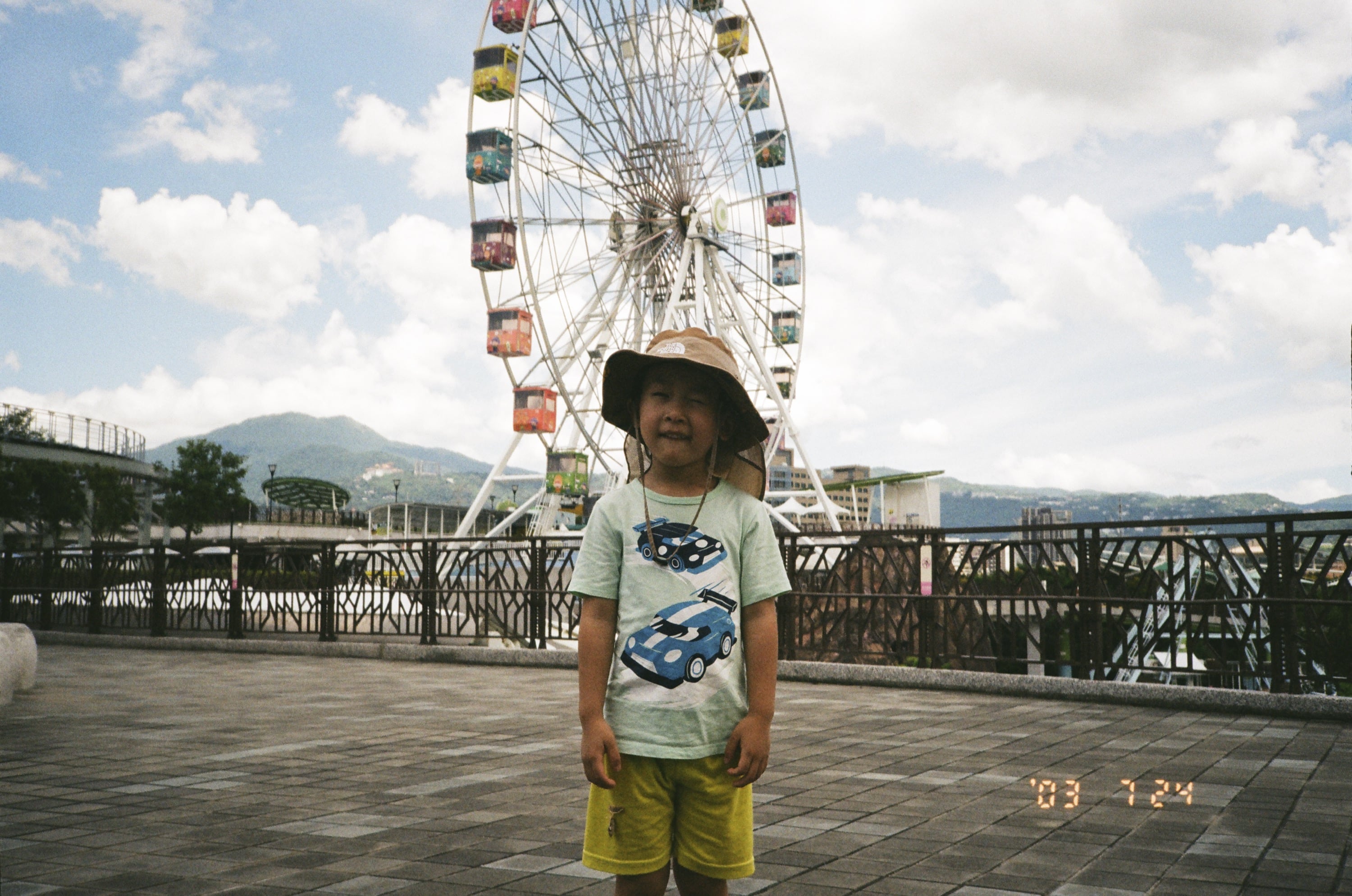 我請兒子跟摩天輪拍一張,他馬上跑過去,但我覺得他這樣人太小了,會拍不清楚。