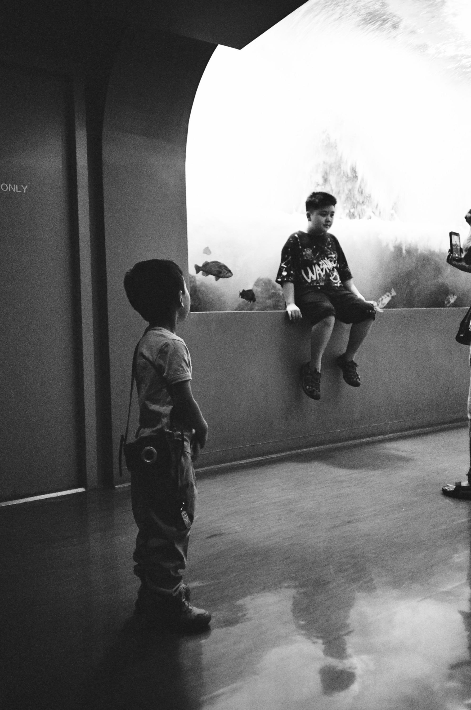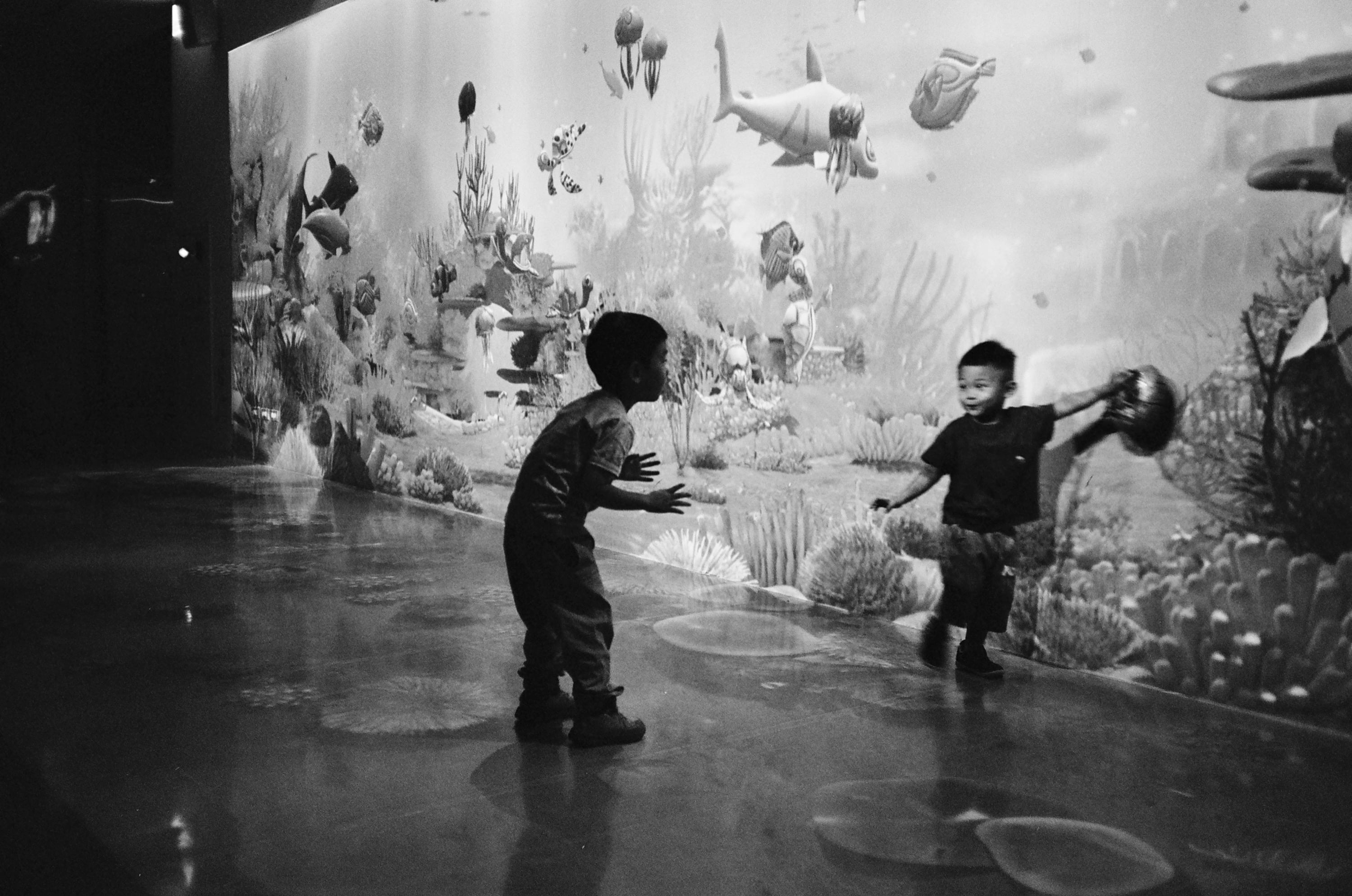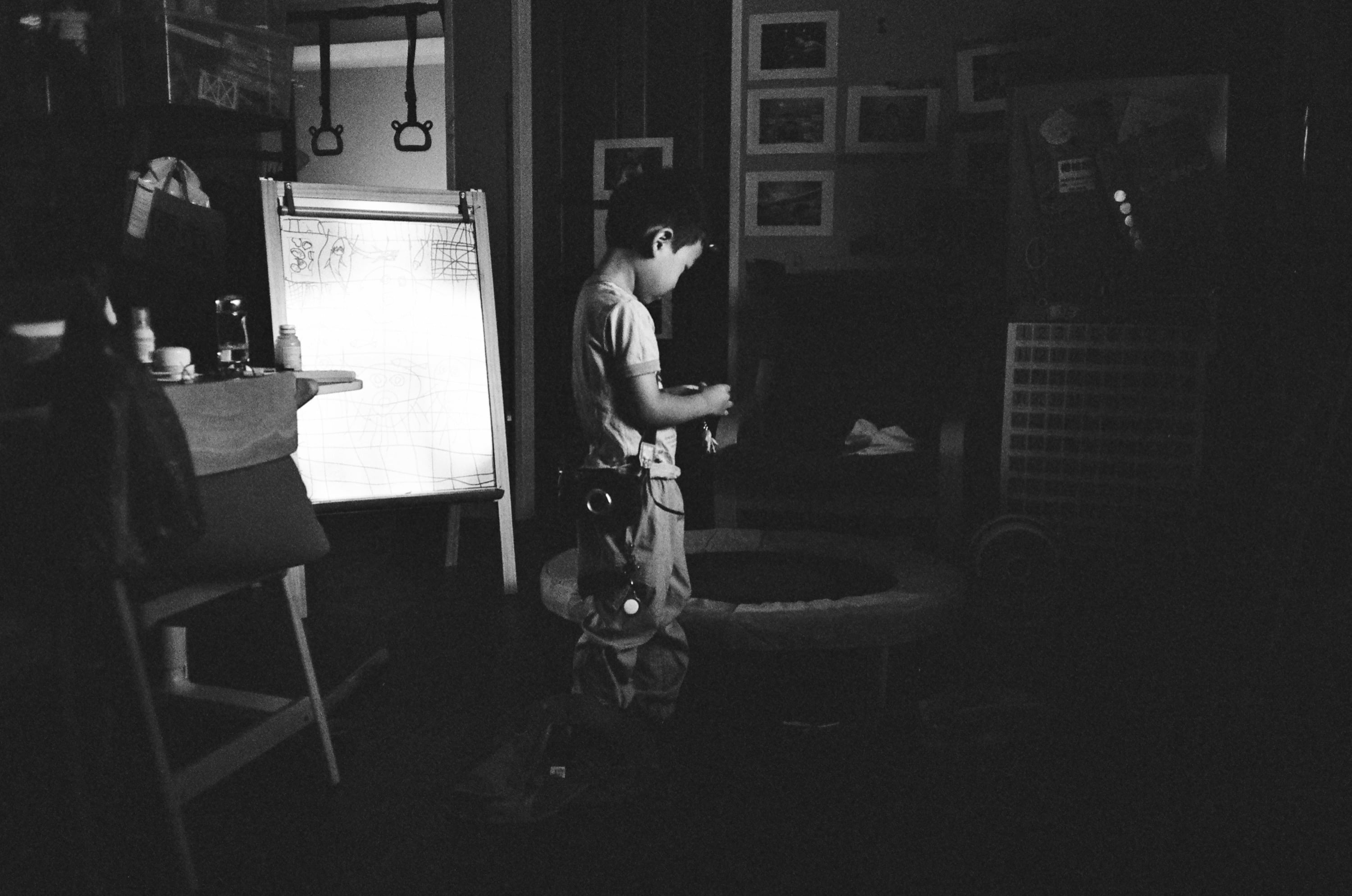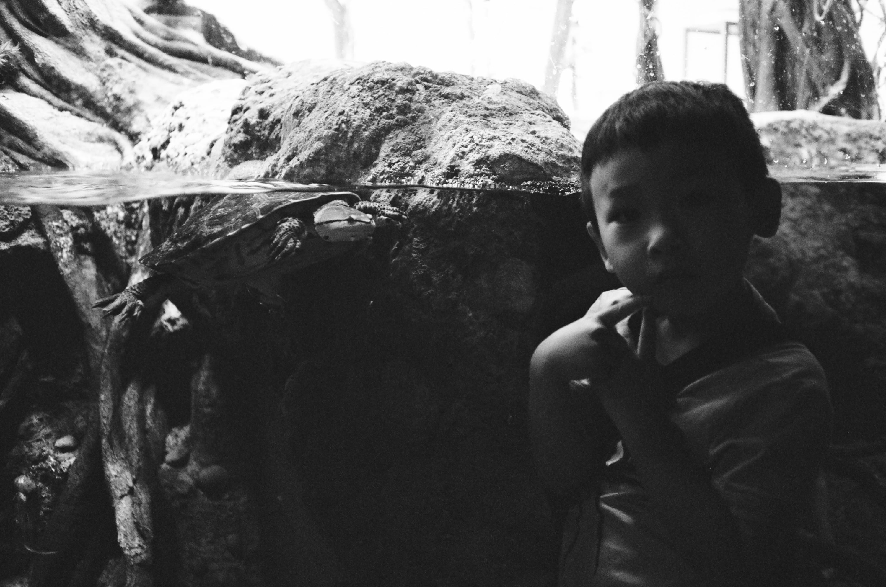 正準備和我出發前往桃園 Xpark 的兒子,出門前我幫他的 Konica 現場監督 28HG 裝了卷 Lomography 800,我說到了水族館燈光昏暗,這卷比較好用。