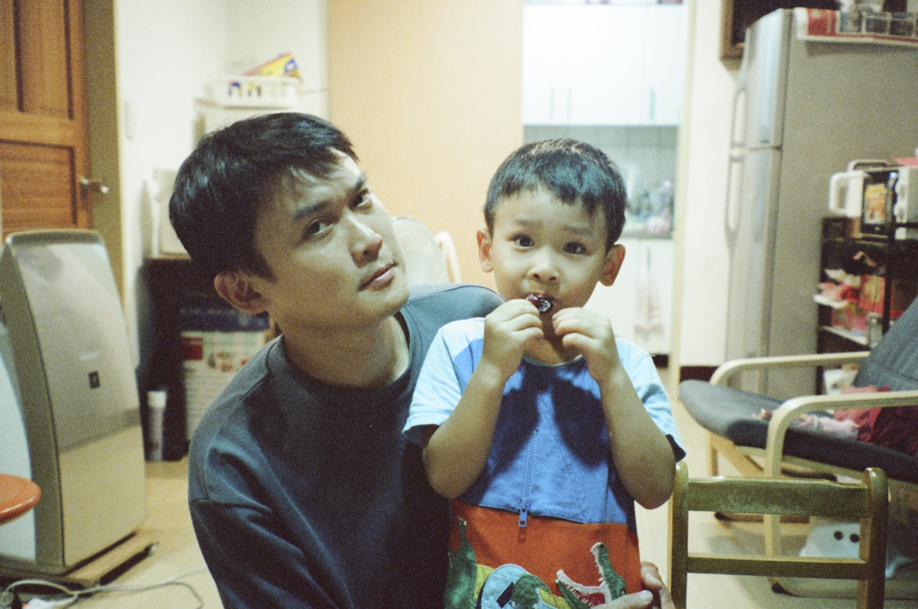 這卷底片主要紀錄了有個假日我和兒子去河堤運動的照片,那天星期六,兒子起得早,他看見我正要出門晨跑,於是他說他也要去。因為兒子跑步的速度和我完全不一樣,因此我建議兒子用騎腳踏車的方式,而我則是用跑的,我們就這樣出門跑了一小時,他也騎了將近一小時,我很訝異他竟然能夠跟我運動完全程,而沒有在半路哭鬧。