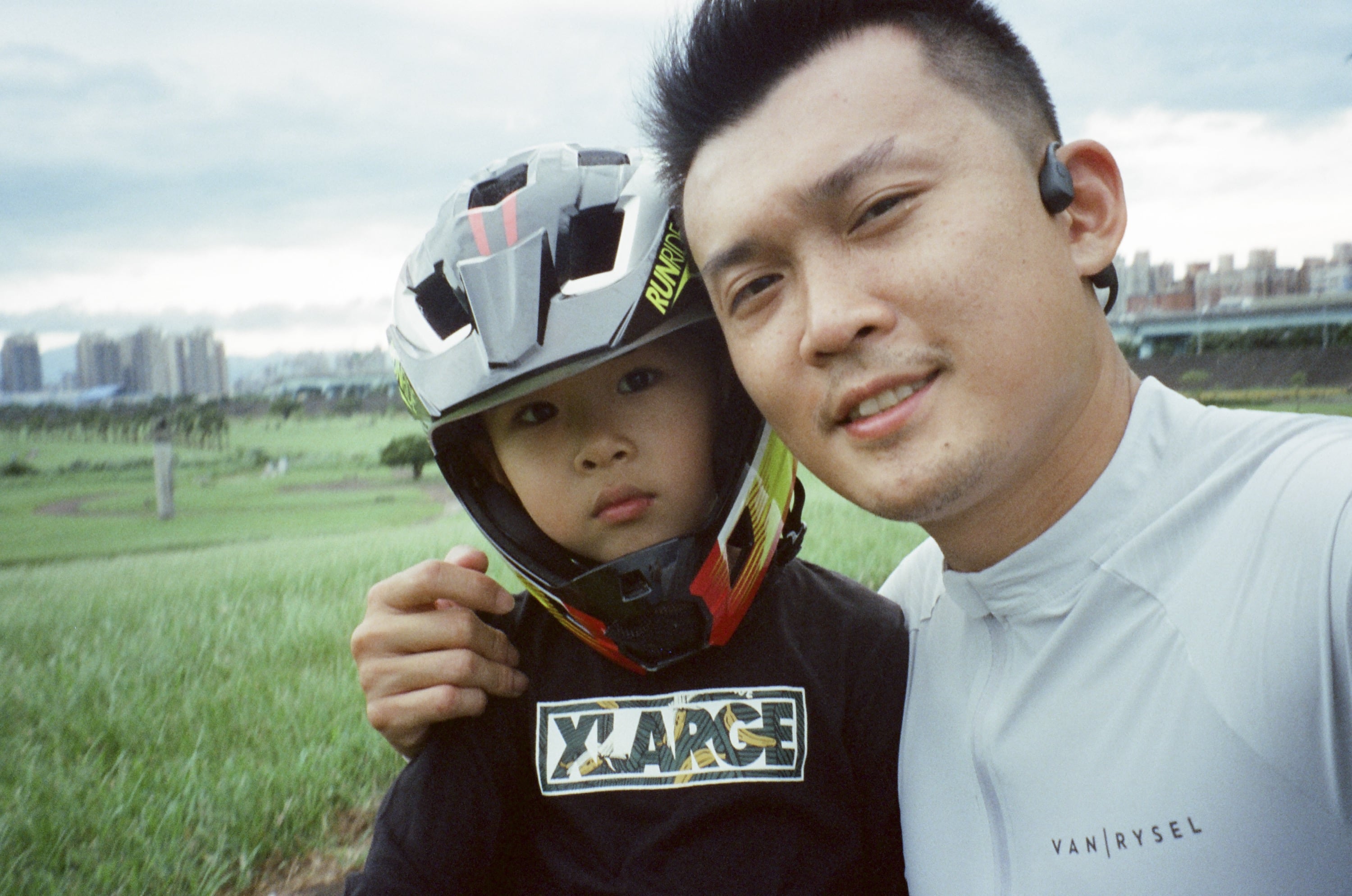 兒子騎在前面,我跑在後面,這張是使用 105mm f9.5 拍的,我竟然想用傻瓜相機來追焦,未免也太異想天開了。