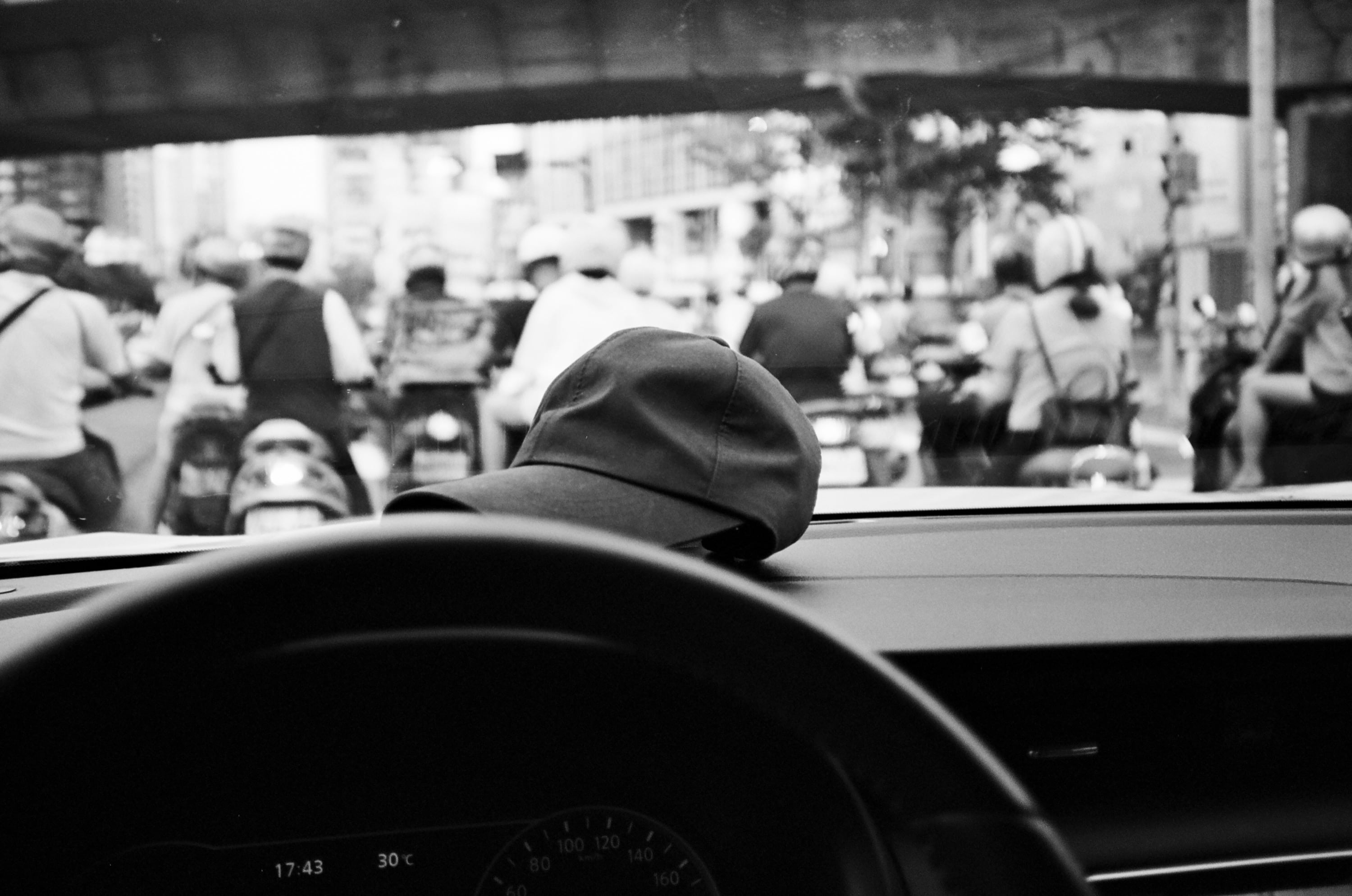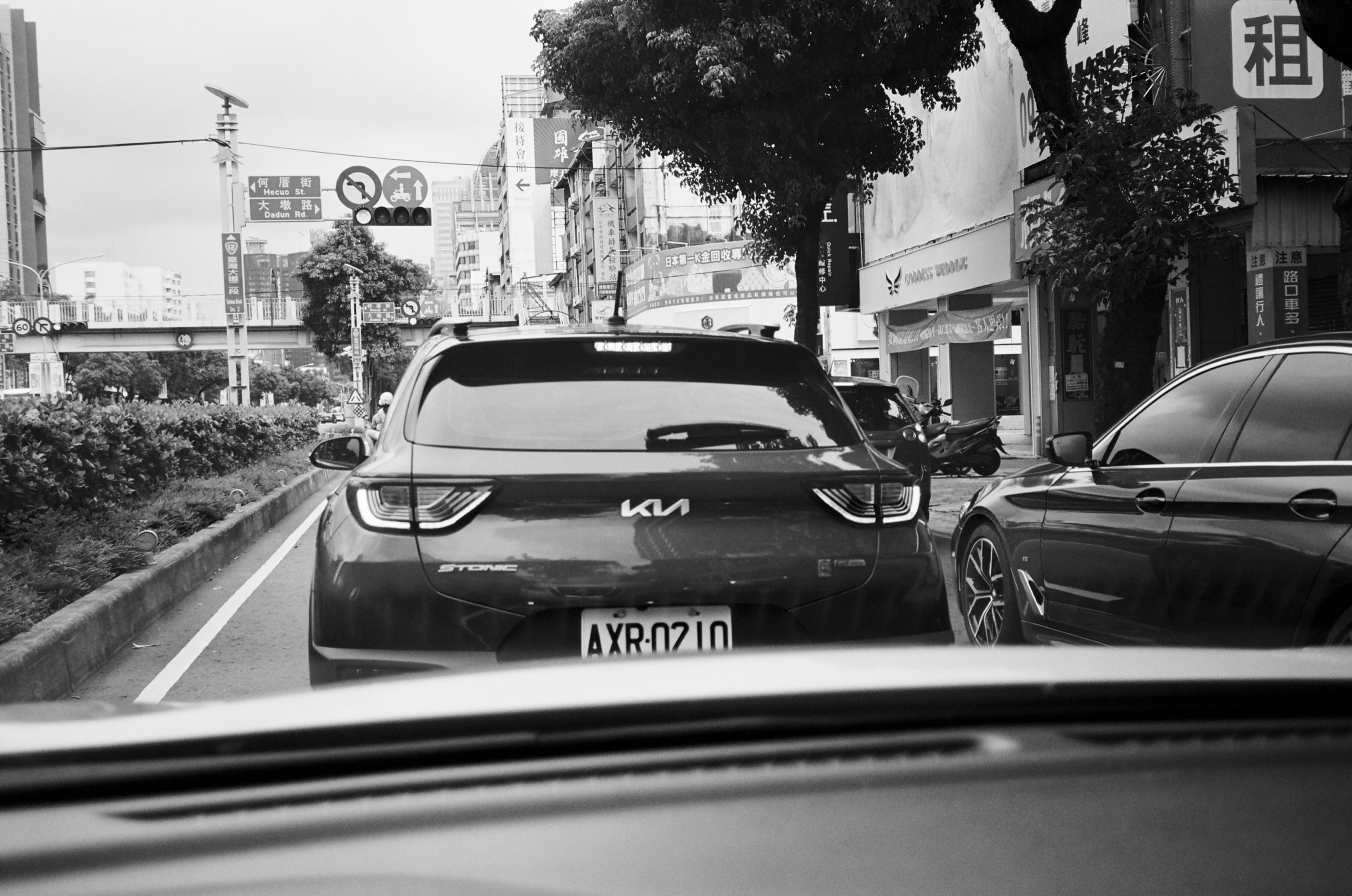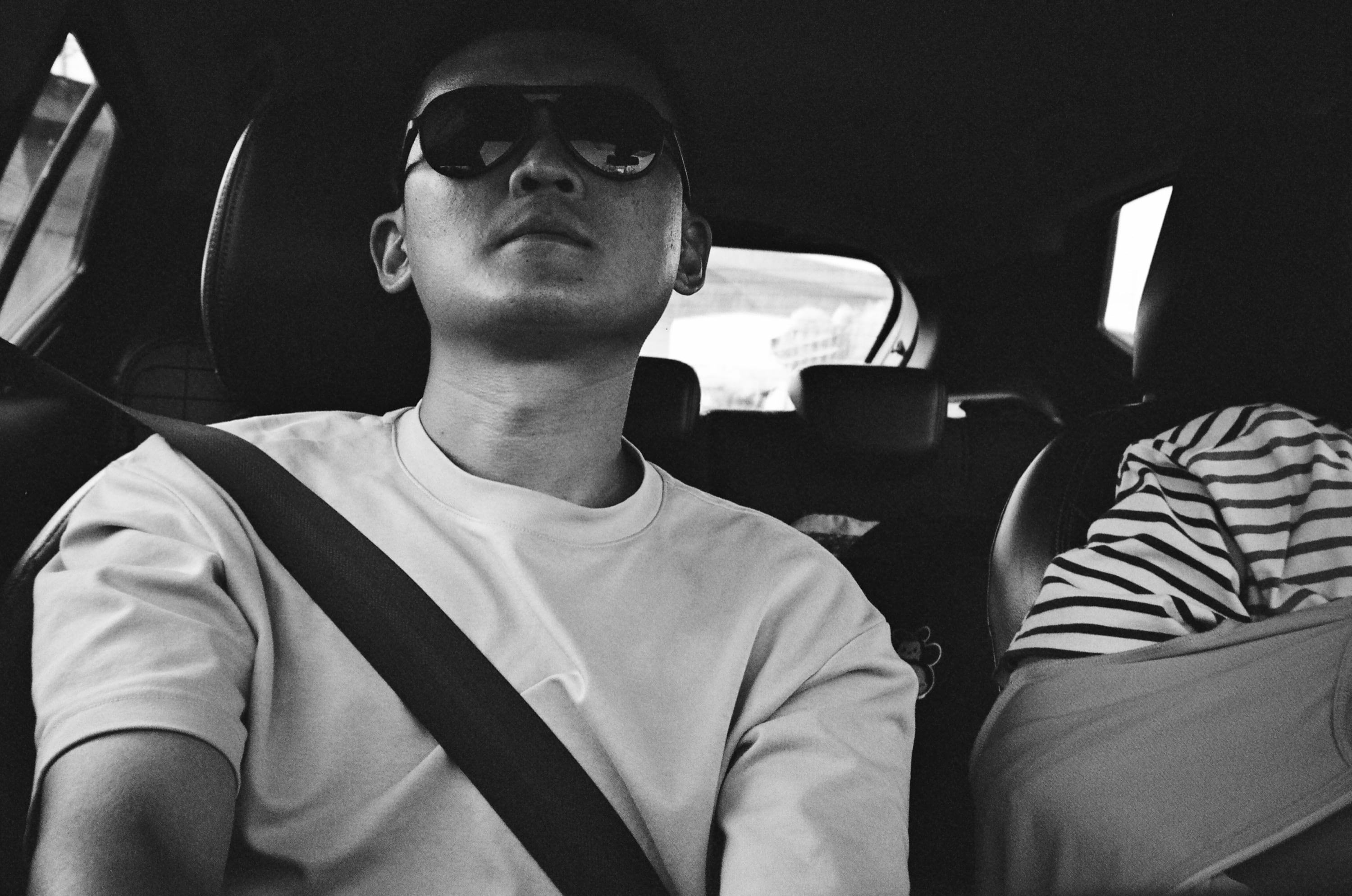 在車子裡頭這種狹窄空間,硬要用現場監督初代自拍,因為它的最近對焦距離長達 0.9m,我的手不得不伸到最長。