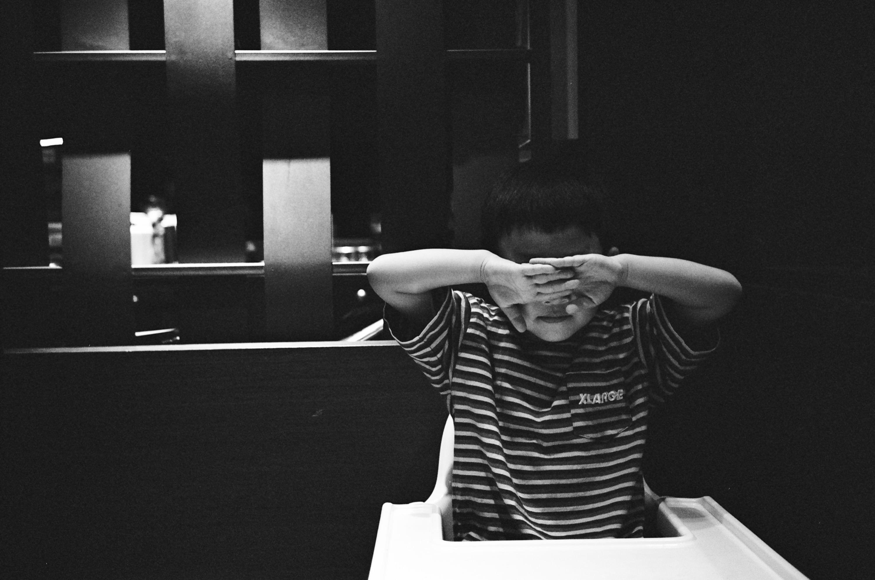兒子拍我。對了,我這台現場監督初代的閃光燈是貼起來的,因此沒有特別關閃光燈,讓相機用最快的快門速度進行拍攝,這樣可以將手震的機率降到最低。