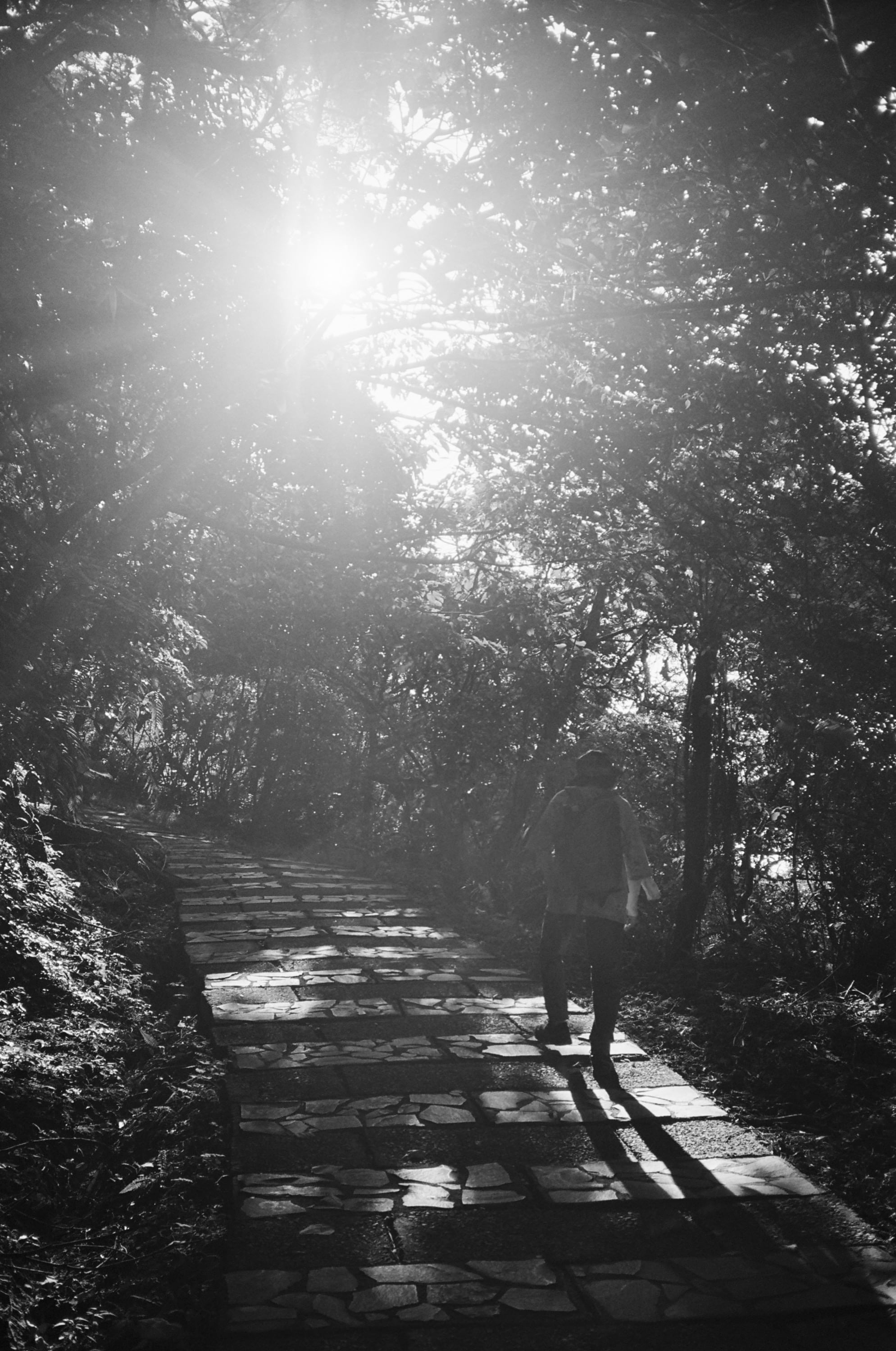 某天下課,我找我媽帶我和兒子去爬山。圖為我正在測試逆光直射的光源。