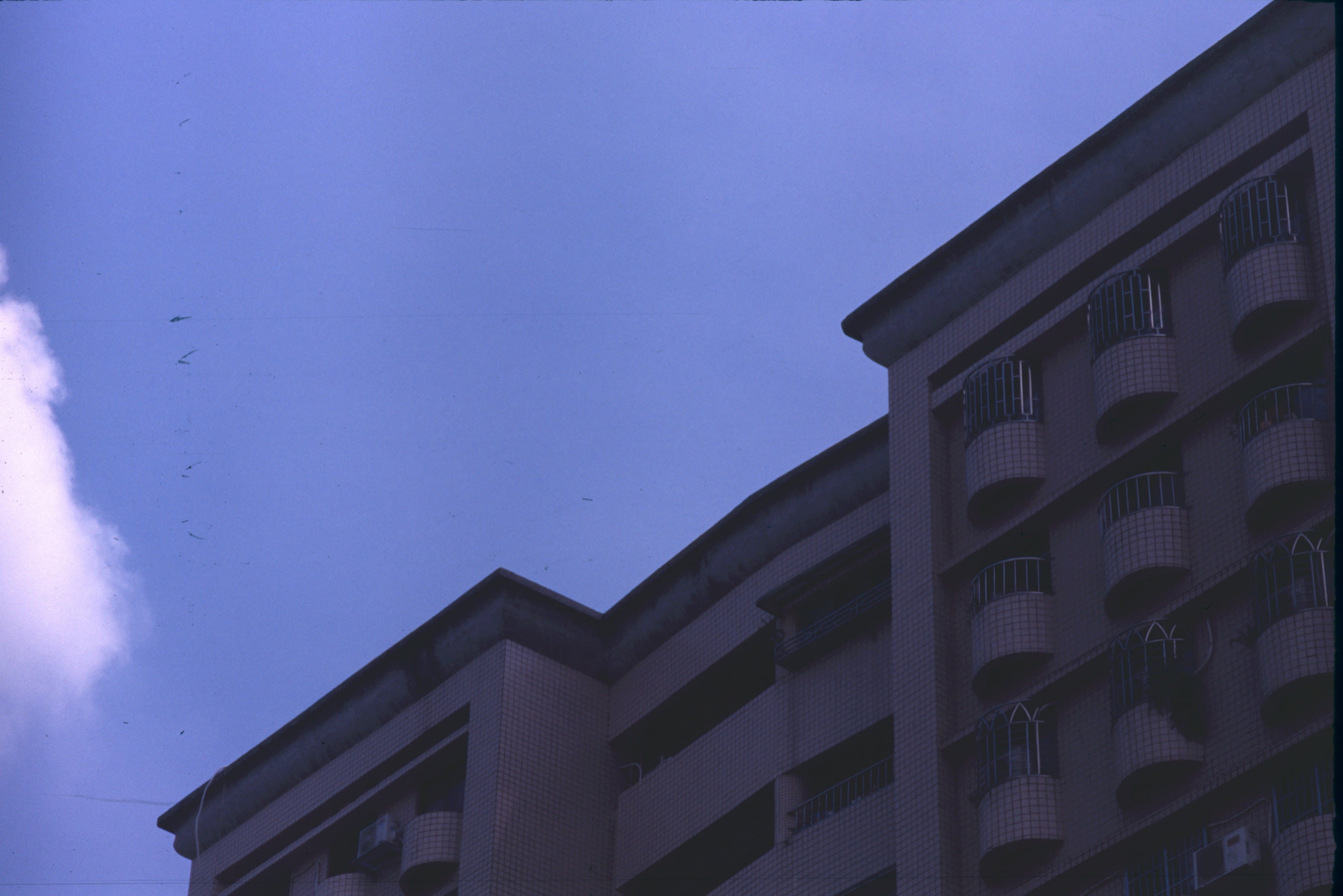 因為傳說正片的藍很特殊,於是我在這卷底片中拍了非常多天空的藍,這張照片我是對著白雲測光,在拍攝正片是要以亮部測光,與負片拍攝時要以暗部測光完全相反。不過我覺得正片的測光邏輯就等同於現在的數位攝影,因此我覺得沒有什麼問題,也沒有想像中那種很難拍,很容易失敗的感覺,反正只要測光沒問題,影像就不會有問題。