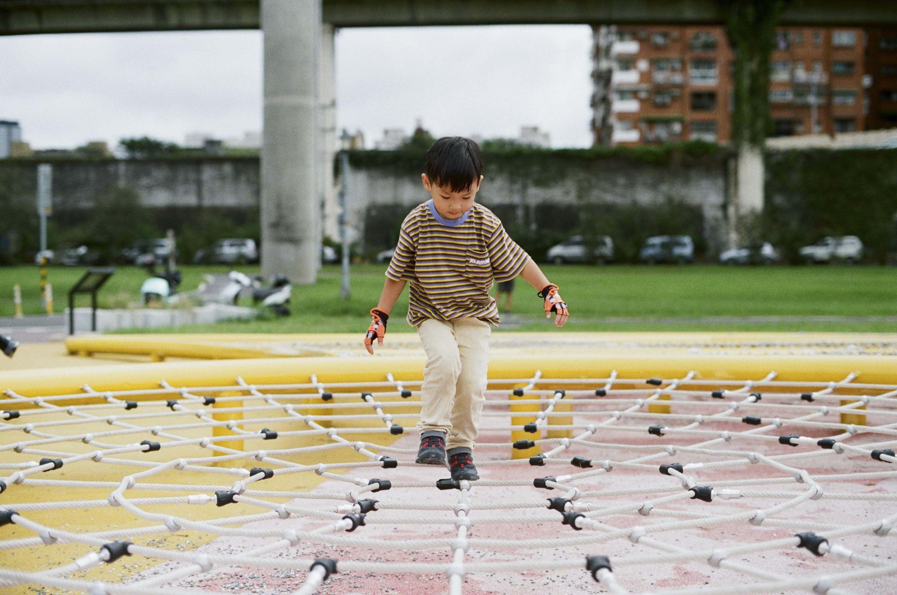 我爸媽那個年代對小孩的觀念都是過度保護,我媽到現在還是會餵她的四歲孫子吃飯,但我都一直跟她抗爭說根本不需要餵,讓他自己吃就好。所有事情,如果你不讓小孩自己做,那小孩就永遠不會獲得做那件事情的能力。這張照片是不顧兒子危險,只顧著取景拍照的父親視角。