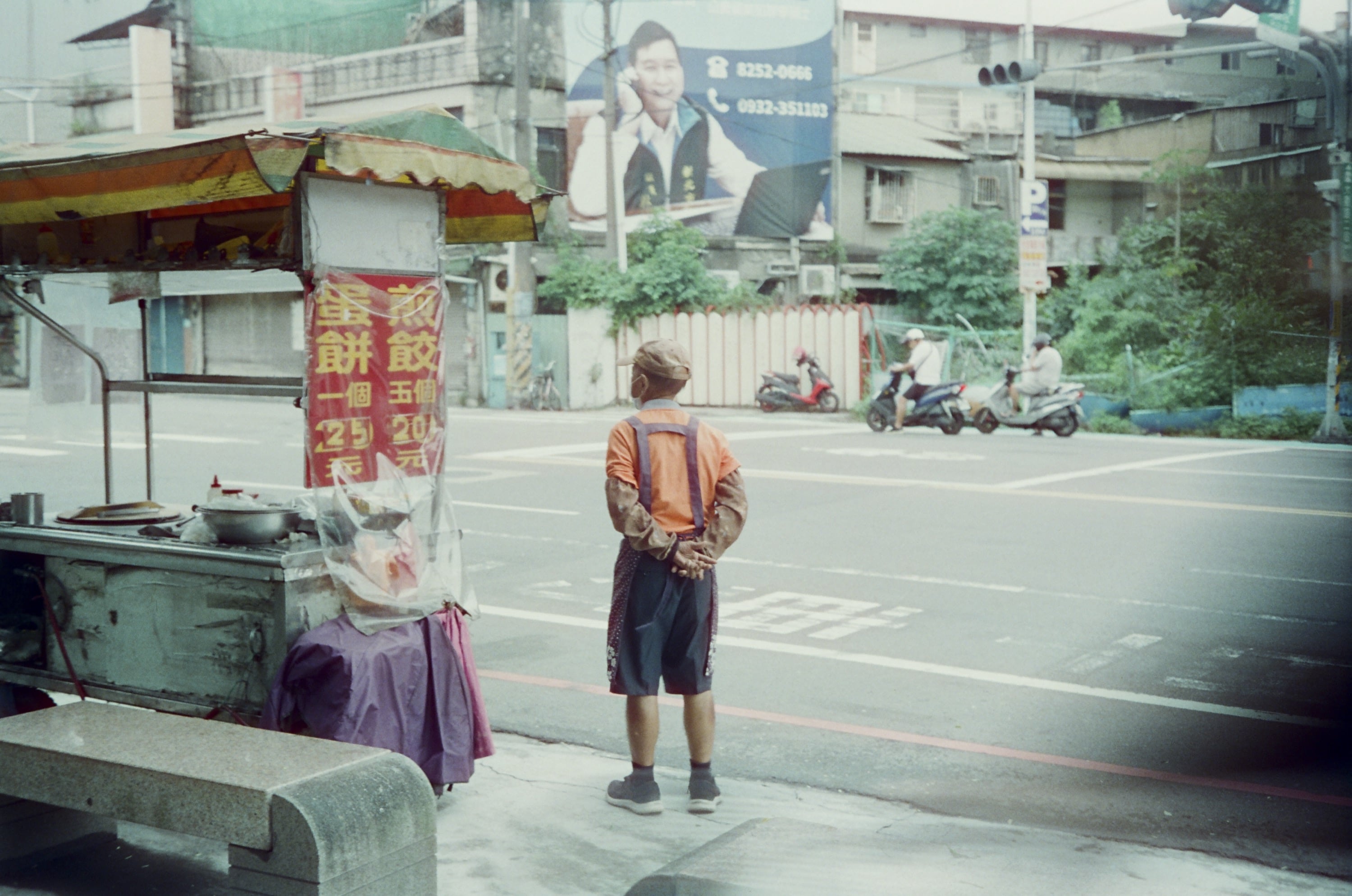 某天騎機車從板橋遠赴經樹林到新莊買蛋餅,只為了有個美好早晨的開始。圖為機車待轉中。這卷底片很多亂拍的照片,因為我真的很想趕快拍完,然後把這台相機賣掉!