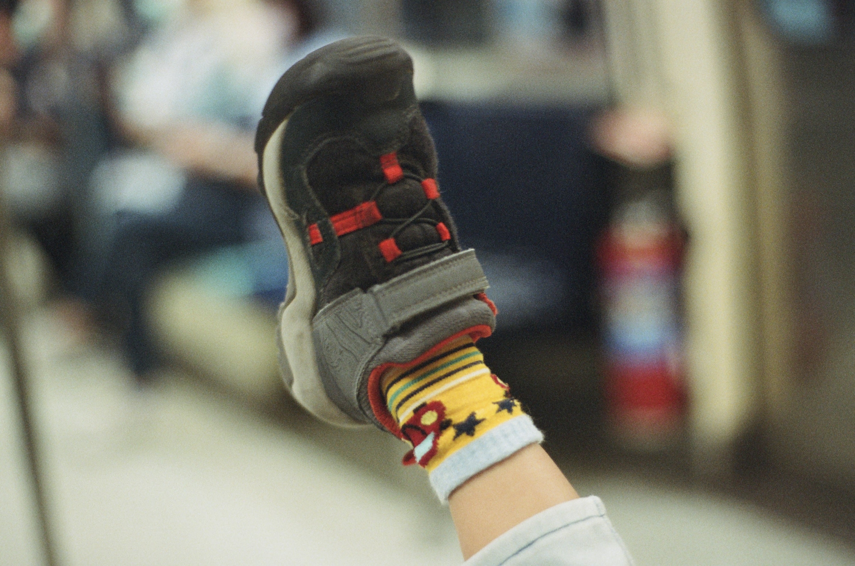 這張照片榮登我近期電腦桌面。這天和兒子搭捷運,要從海山站坐到市政府站,我沒帶任何排解無聊的東西,當然也不會看手機,於是就和兒子東玩西玩與用各種姿勢發呆。圖為兒子的腳有點軟 Q,竟然可以伸到這麼高讓我拍照。
