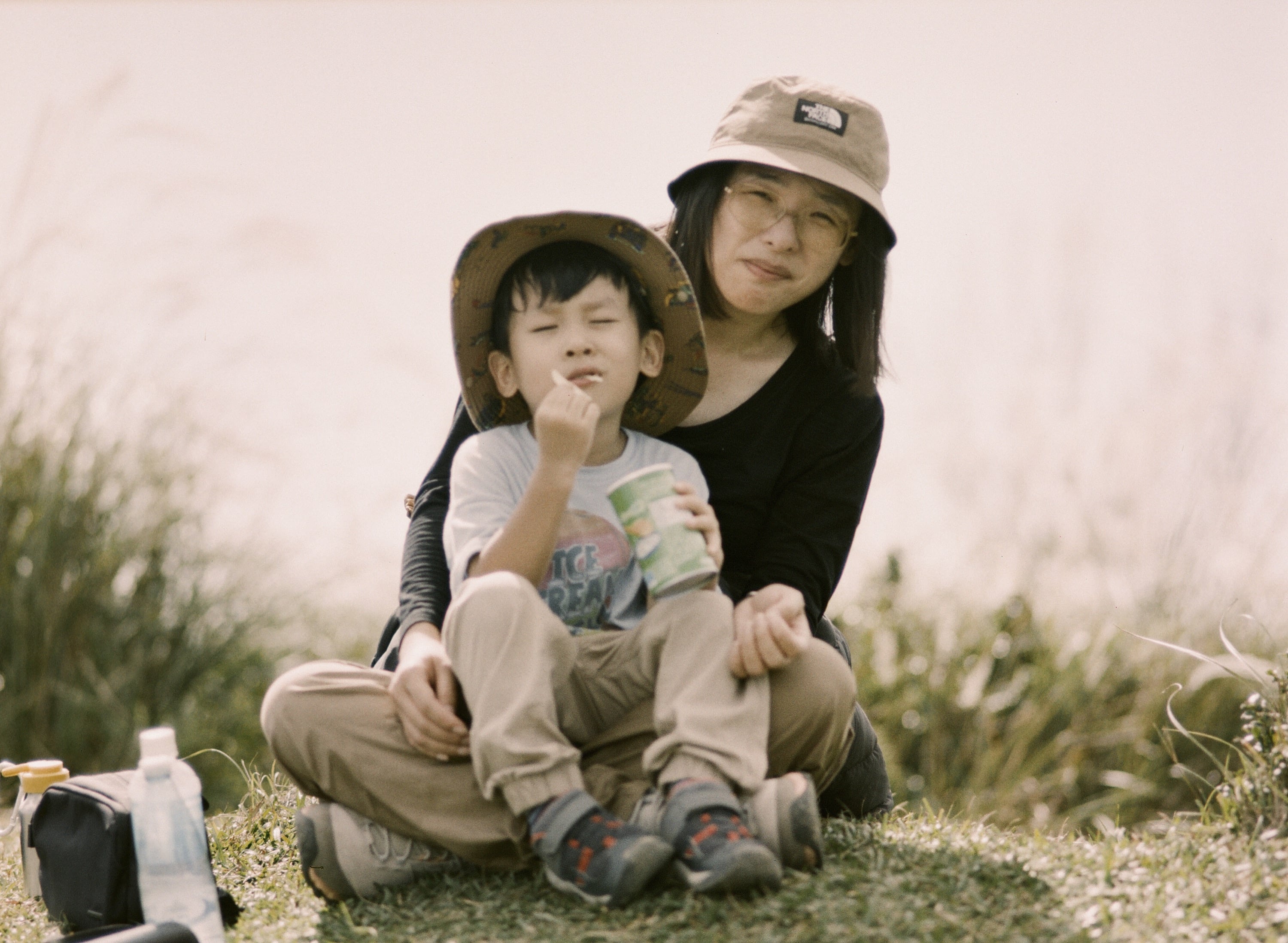 這卷底片的拍攝內容,除了和家人生活的日常之外,後半段也紀錄了某天我們去陽明山石梯嶺找牛的照片,我背著 Pentax 645 再加上 Pentax 67 300mm f4 的望遠鏡頭(透過轉接環),體積大到需要出動後背包,雖然很重,但也見識到所謂「空氣切割機」的厲害,算是很有趣的一場體驗。