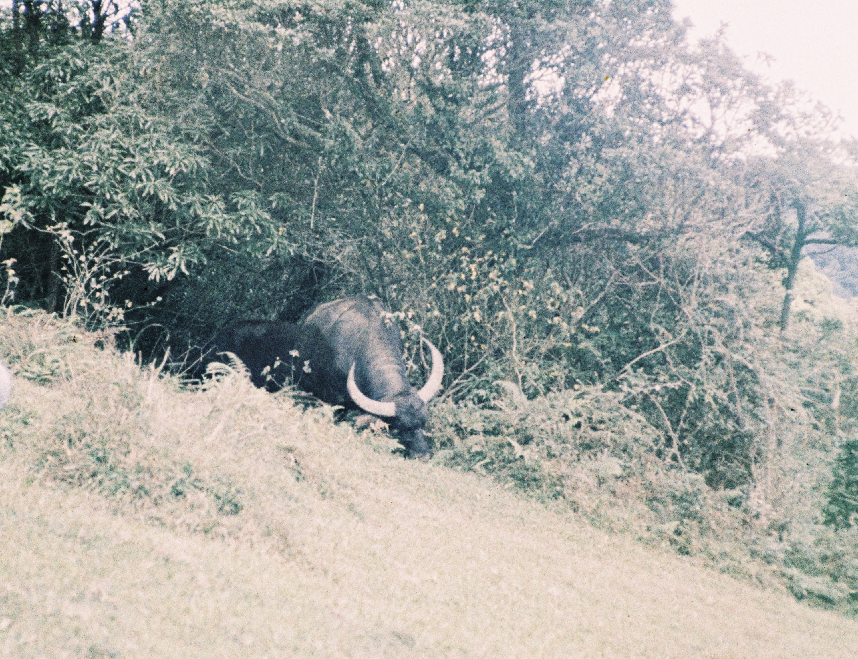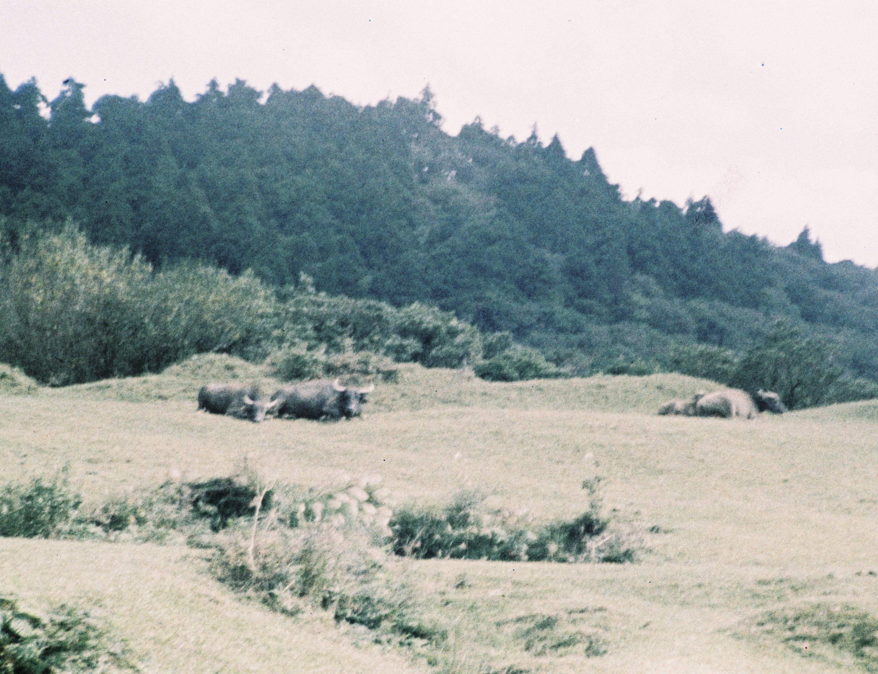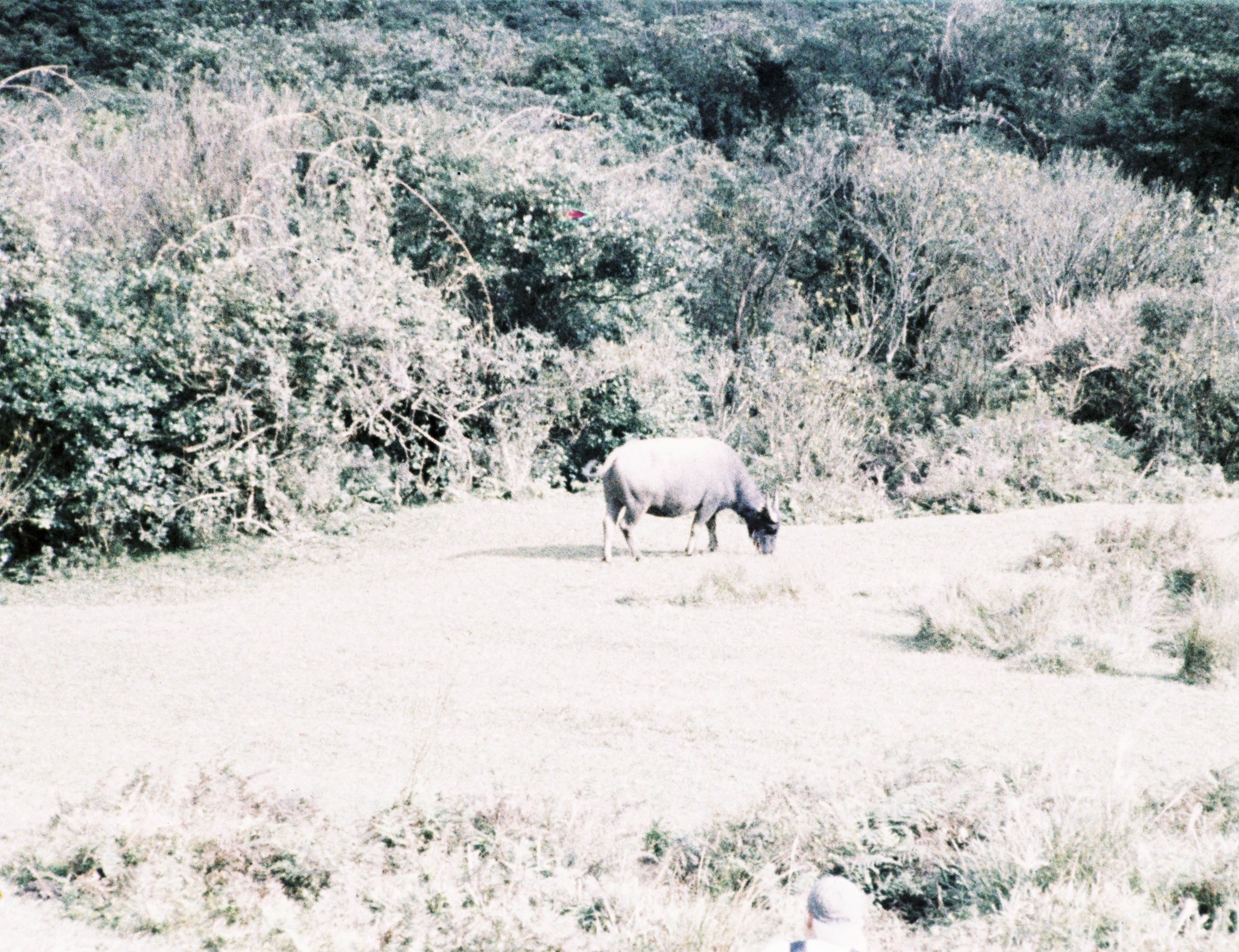 費了千辛萬苦,我們終於在陽明山石梯嶺附近找到牛了,近距離觀察中,我特地幫兒子從 24mm f2.8 換成 50mm f2.8 鏡頭,但還是不夠近。