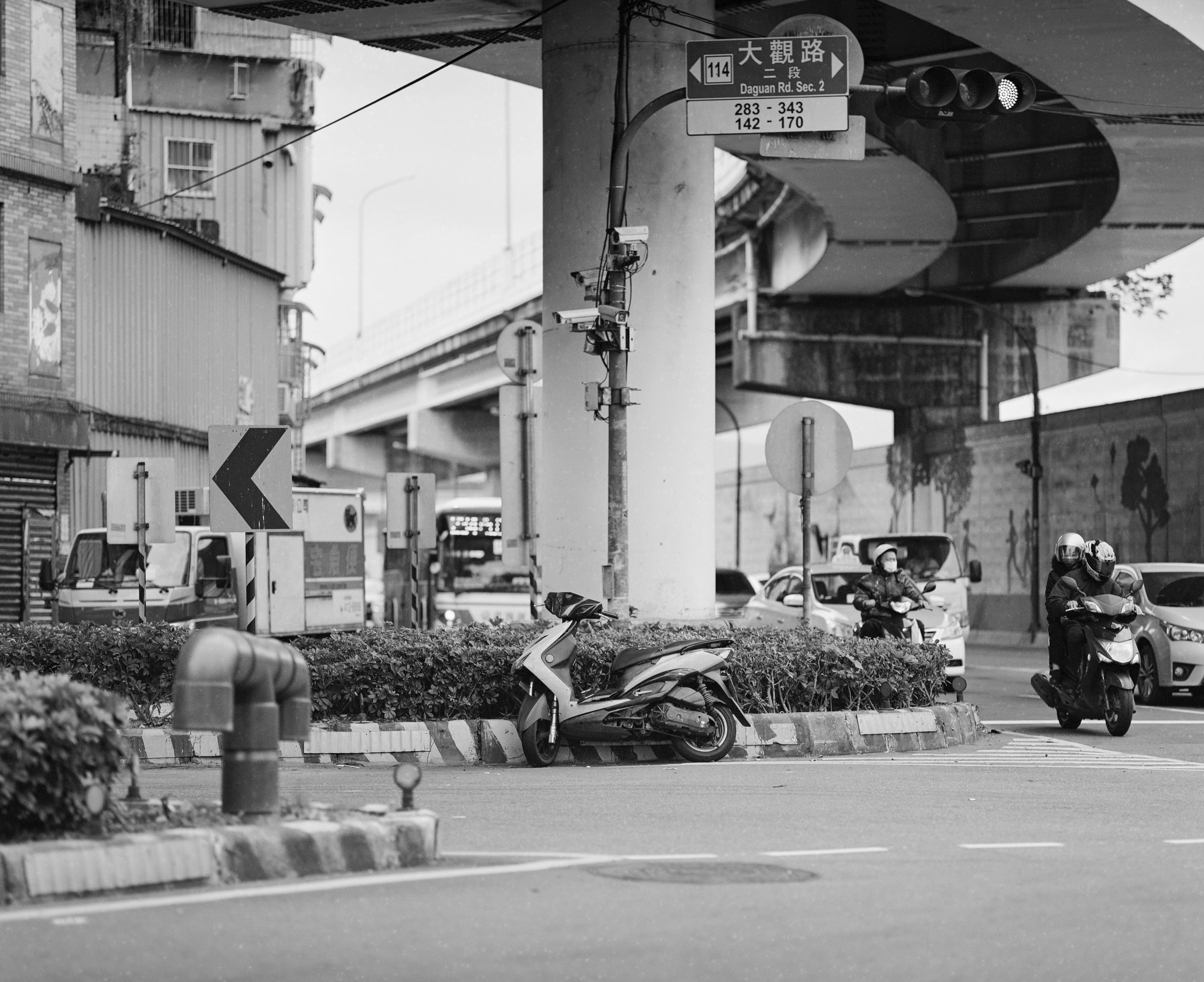 某天早晨我沒有瘋,但我竟然手持 Pentax 6x7 去晨跑,這是路上看到的一個景象,我想記錄一下那個機車車禍車頭凹陷的情況給兒子機會教育,但我拍下這張照片後就忘記要給他看這張照片了。