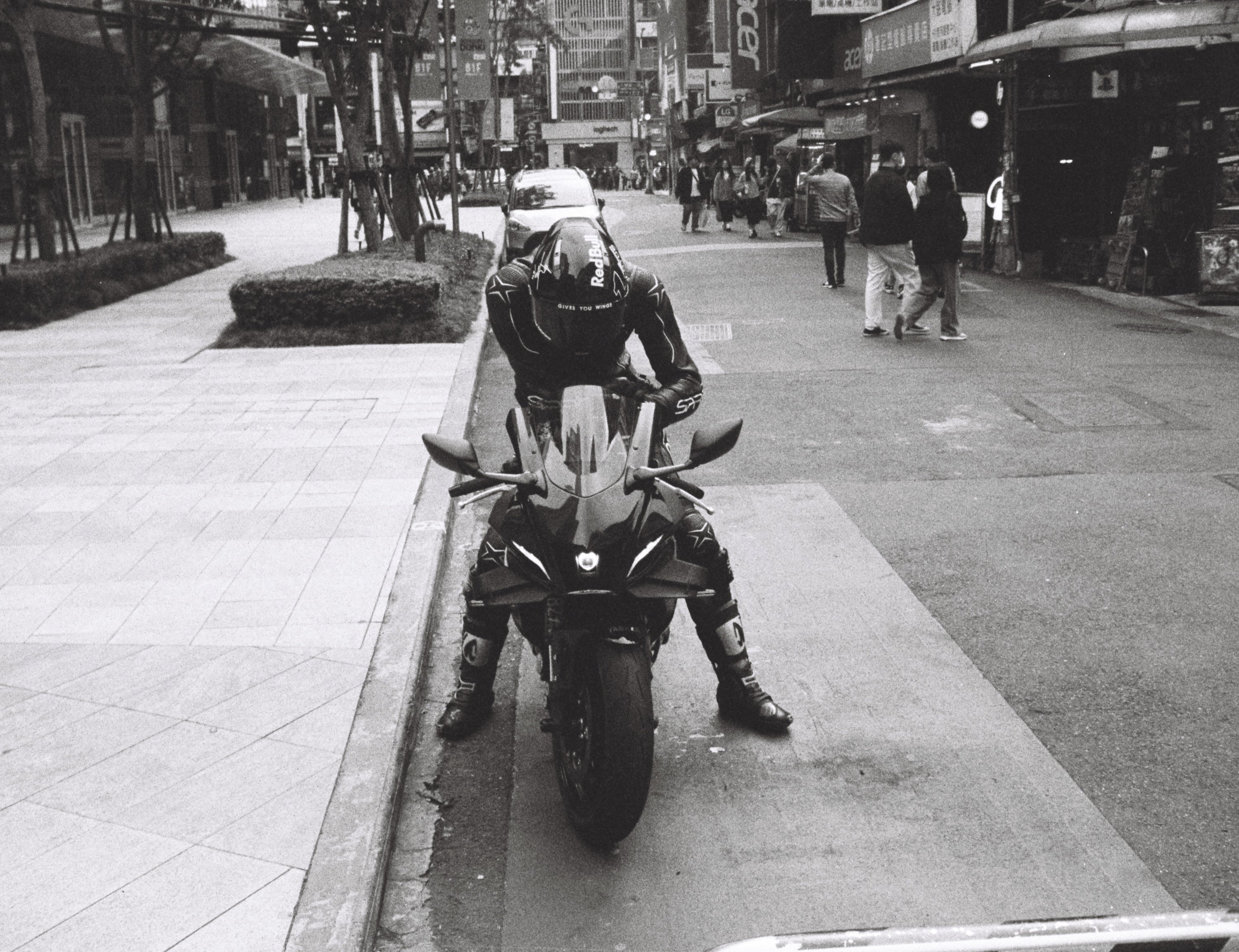 有個週末我連續參加兩場 Pentax Taiwan 的活動,第一天我帶 Pentax 6x7 以示尊重,第二天也就是這一台,我帶了 Pentax Auto 110,一個極端的概念。這張是那天步入會場時,在路上拍的,很帥的機車騎士。起初對於 18mm f2.8 泛焦版有點擔心,不過看到照片之後整個安心,真的是一顆很好用的鏡頭,完全把 Pentax Auto 110 提高到另外一個層次。