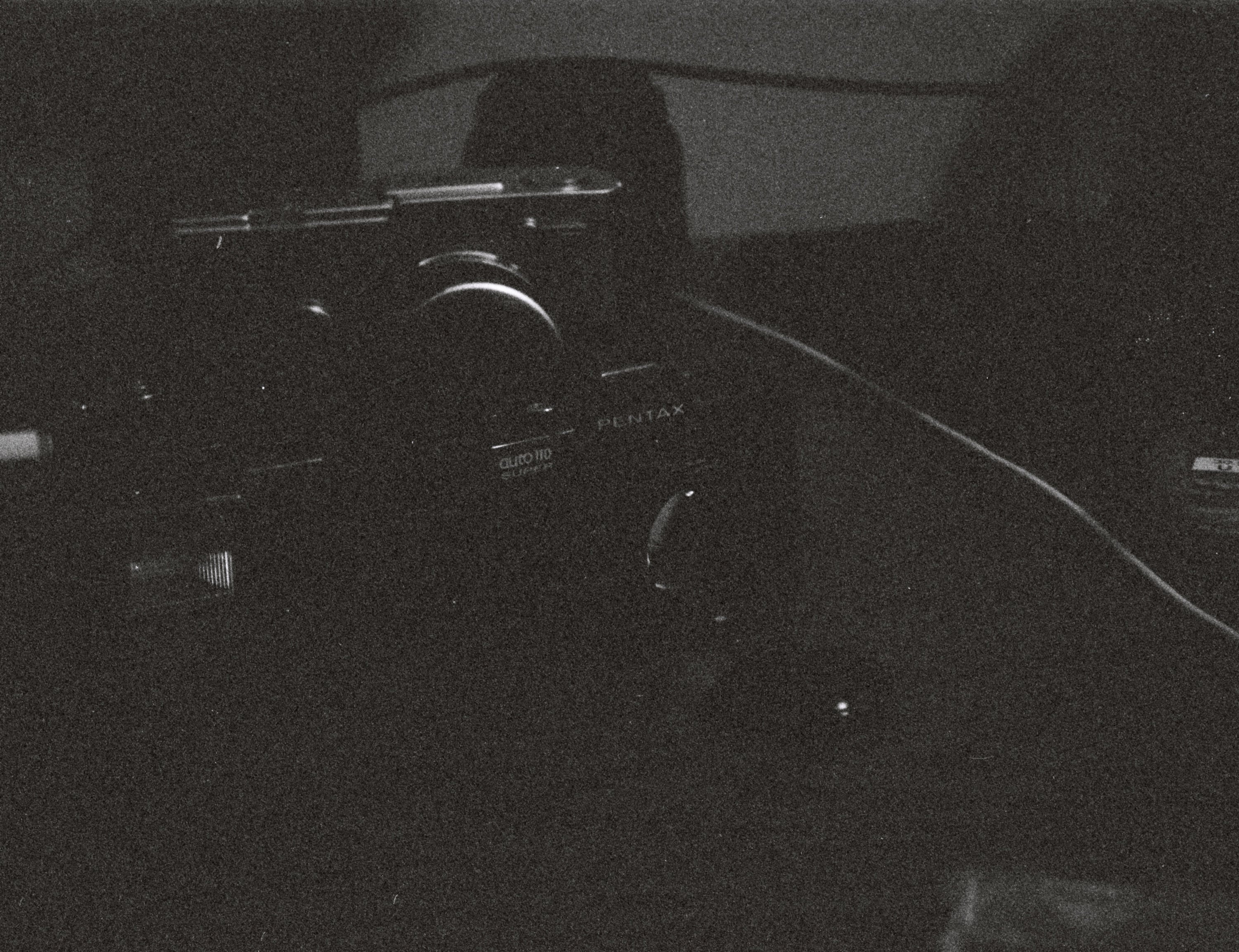 Pentax Auto 110 在接上閃燈後,機頂有個按鈕會被壓下,如果在沒有接閃燈的情況下按住那個按鈕再按下快門,就會進入「偽閃燈模式」,強迫相機用較高速的快門進行拍照,當然,你的影像非常有可能會曝光不足,就像這張照片這樣。