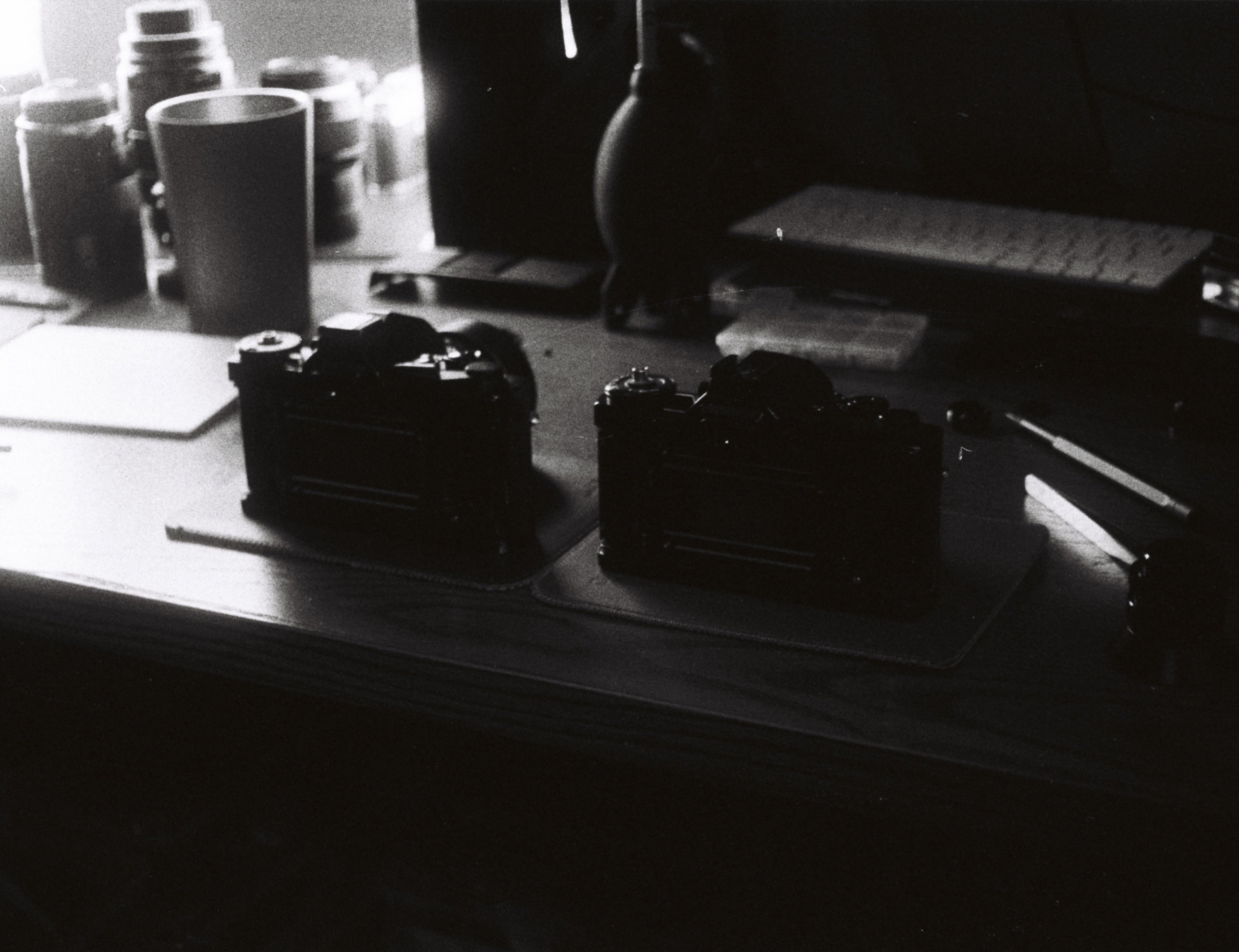 某天正在桌上研究的 Olympus OM-4 Ti 們。