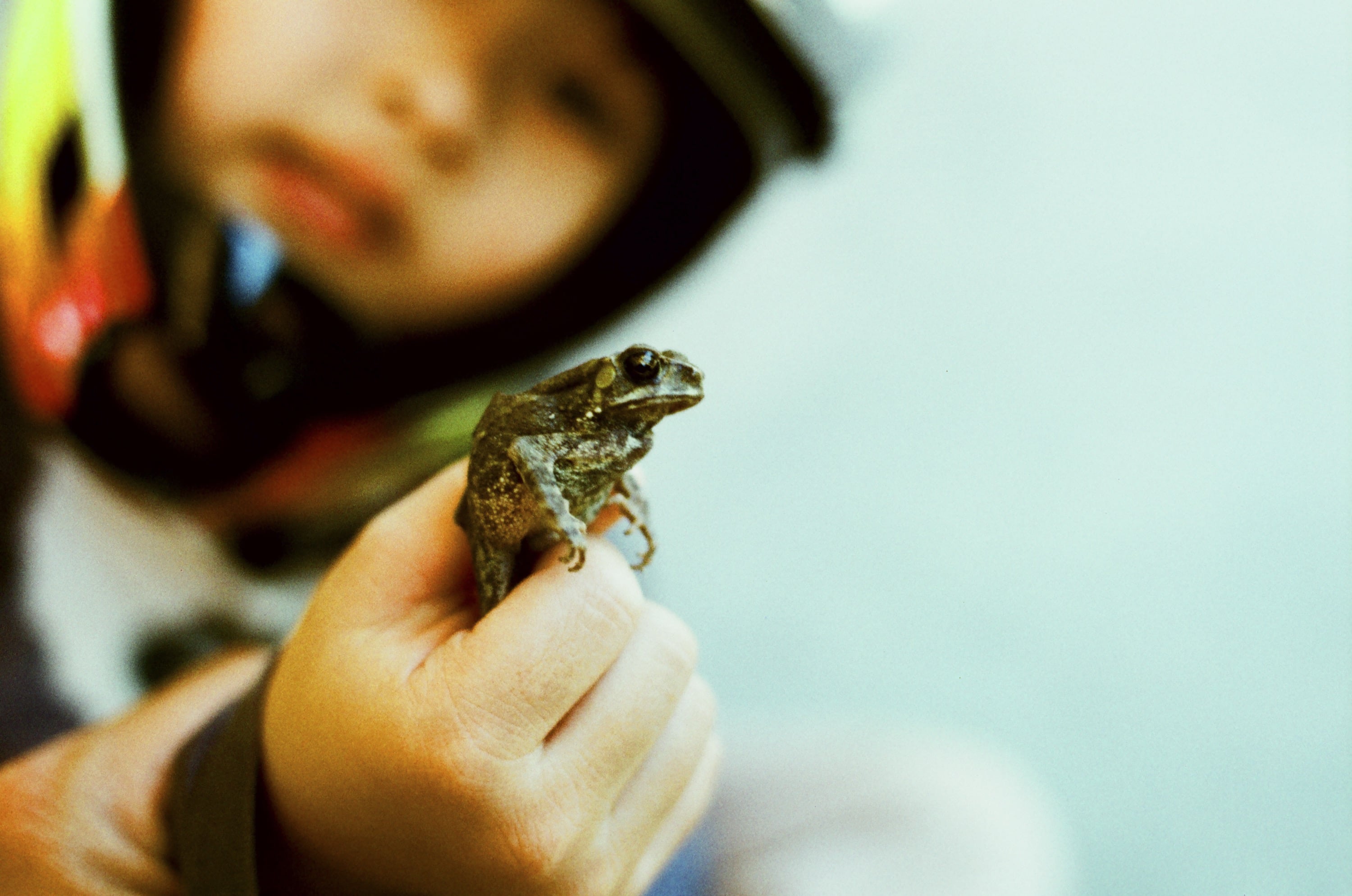 和兒子從公園離開時,在半路發現的黑眶蟾蜍。之前上生態課聽老師說,要抓青蛙或蟾蜍時,可以捏住牠們的後腳,可以避免人體手部的溫度直接接觸到牠們的身體,以減少牠們的不適。